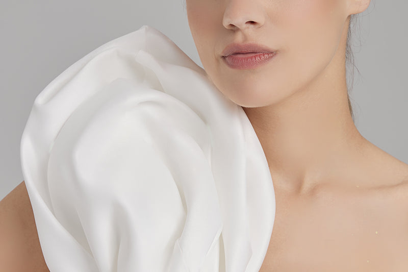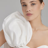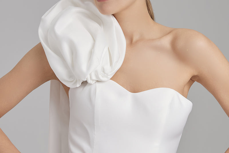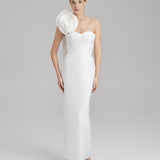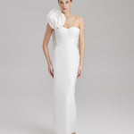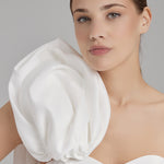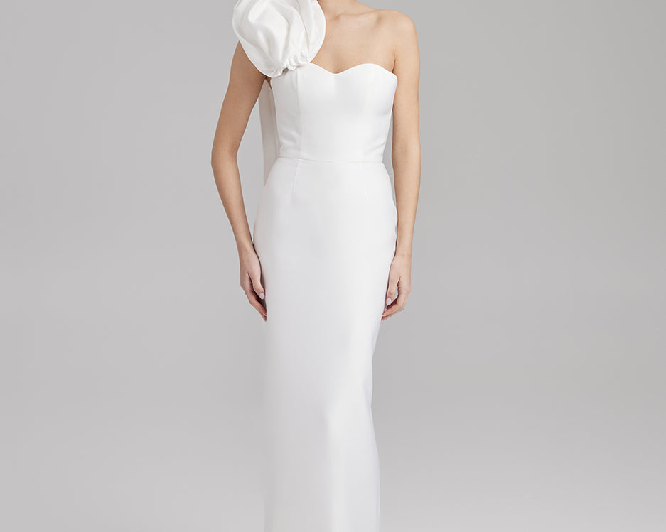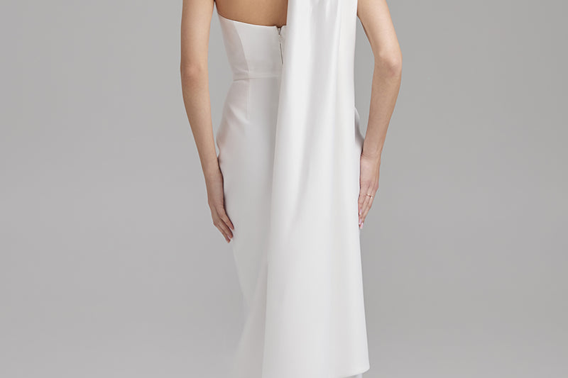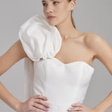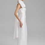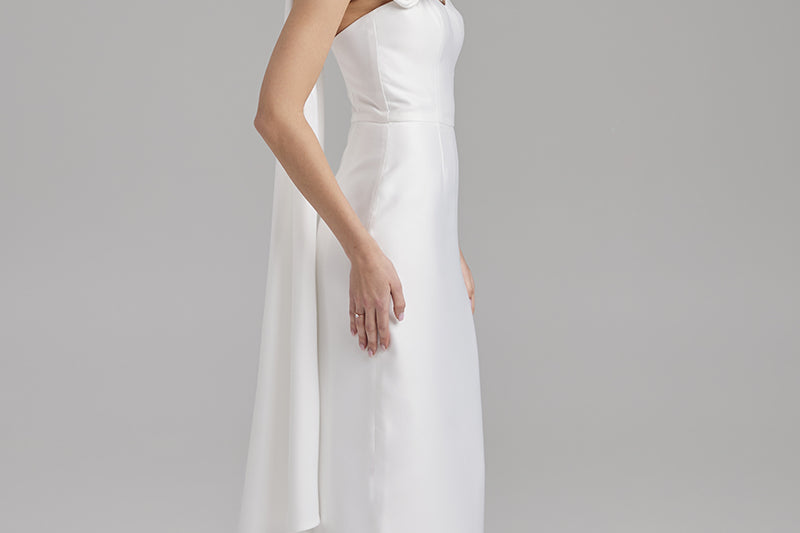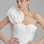 CALLA DRESS + ROSE CAPE BOW | strapless cone maxi in white