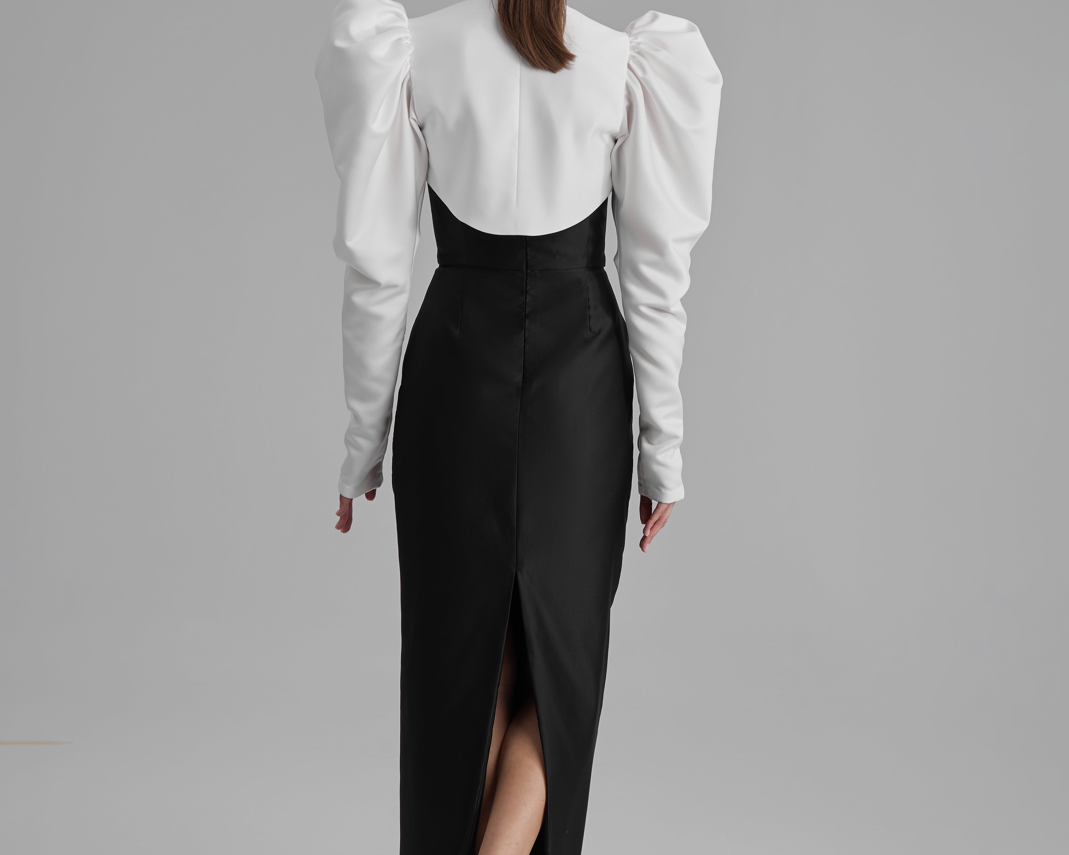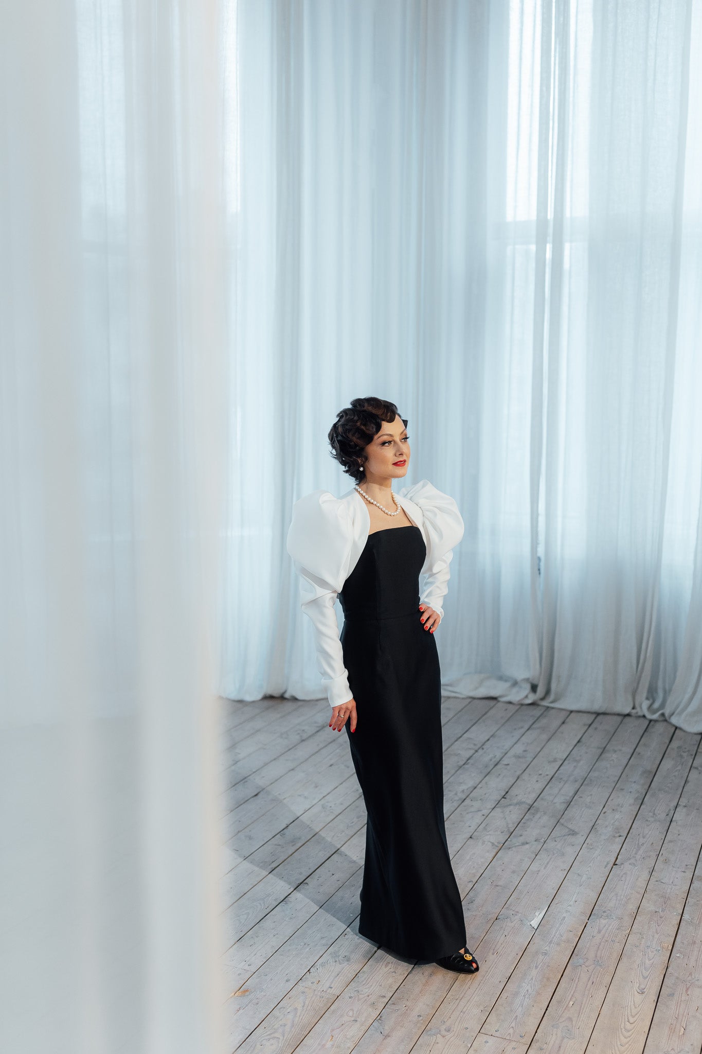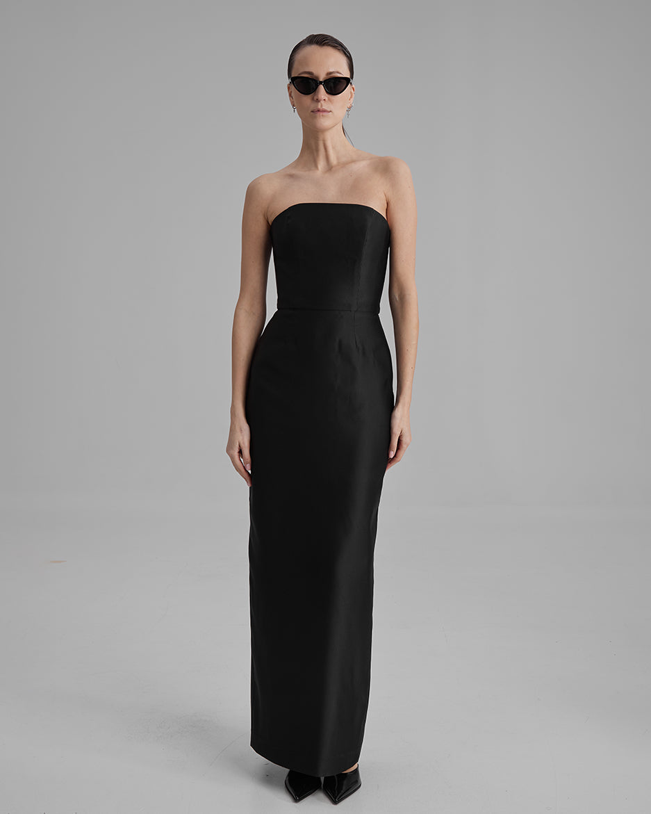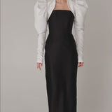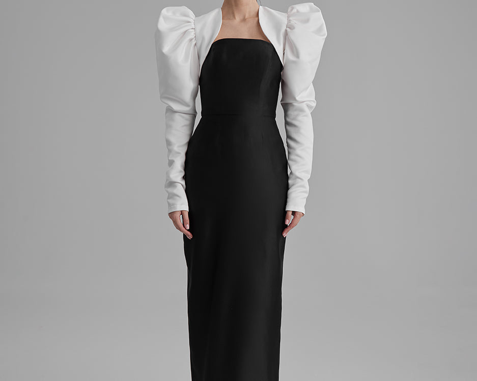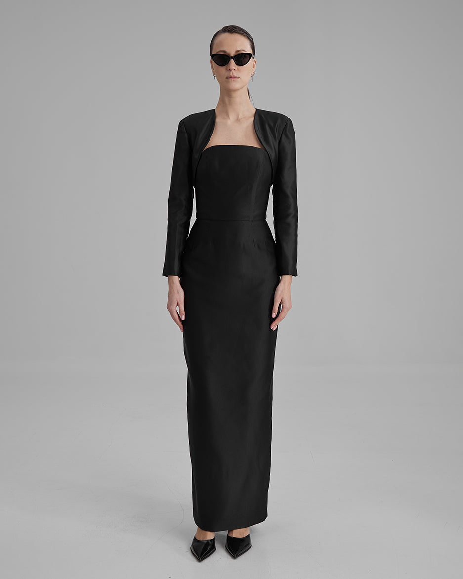 GIGI DRESS + PUFFED SLEEVE BOLERO | strapless cone maxi in black