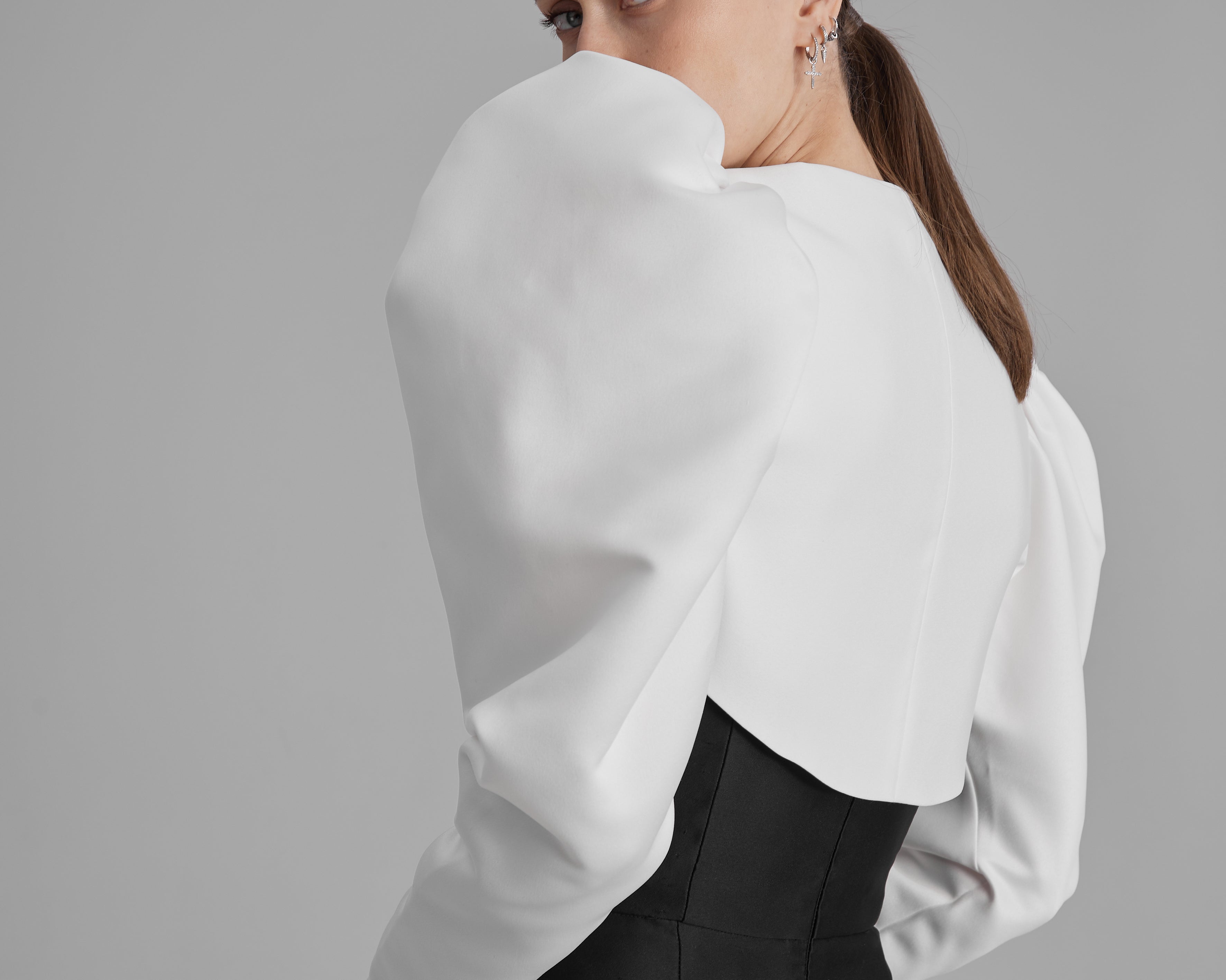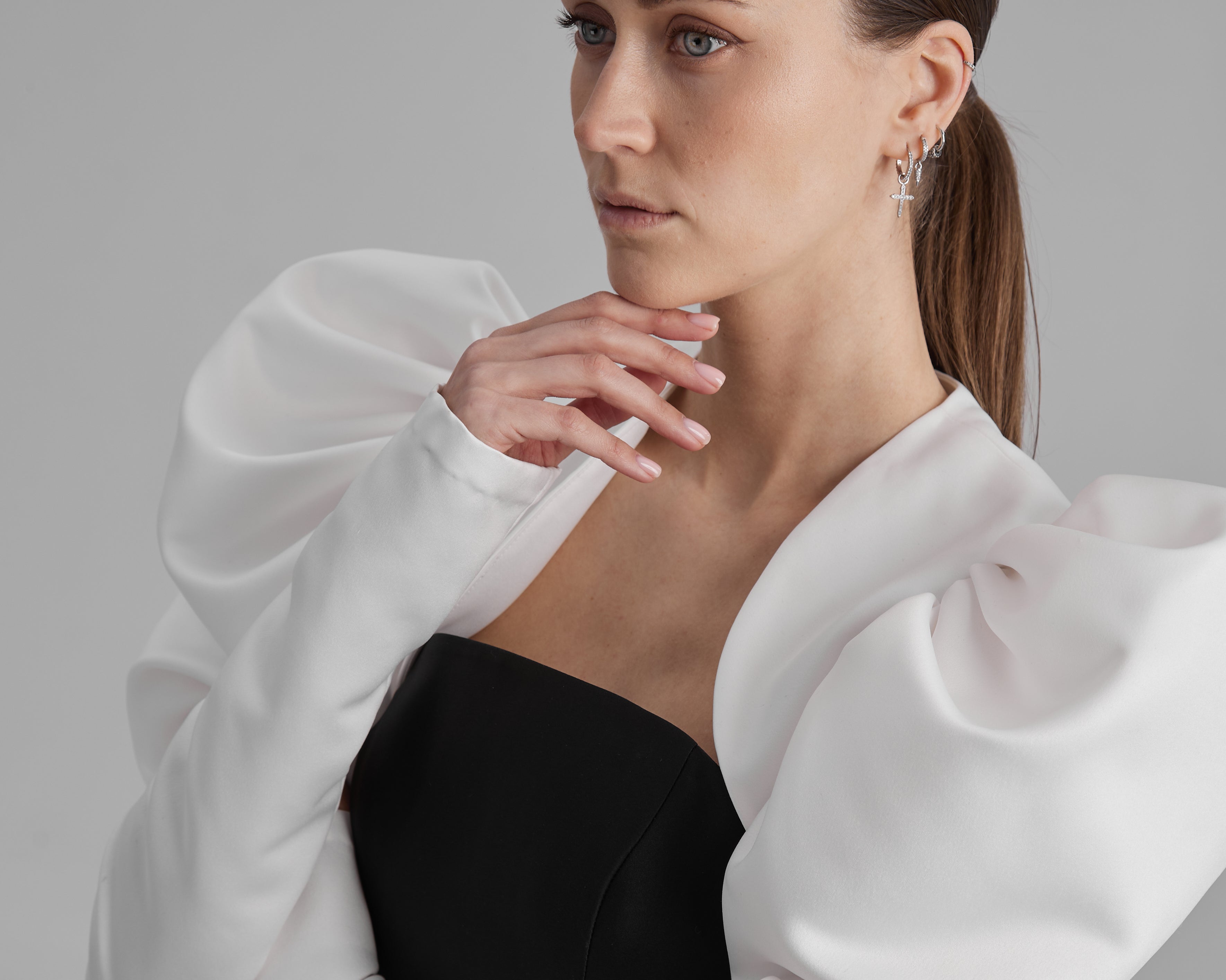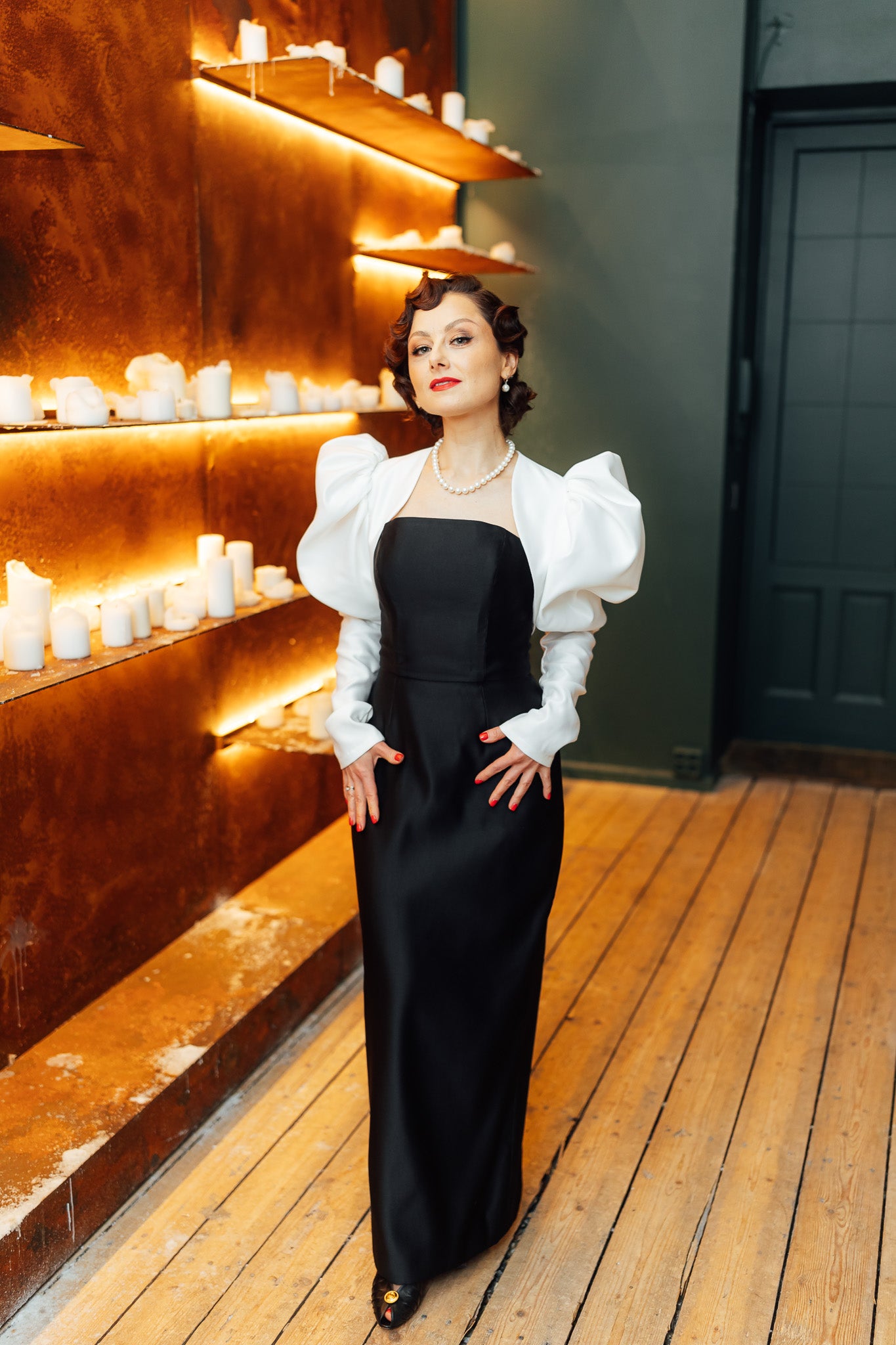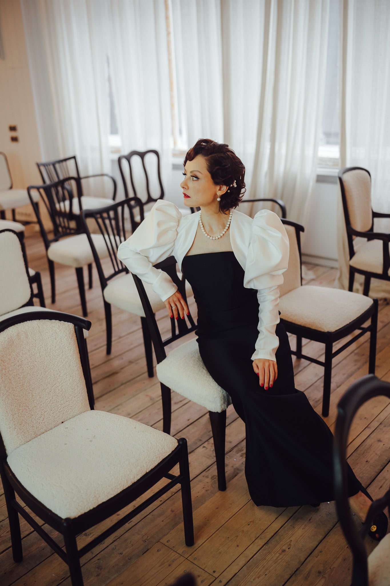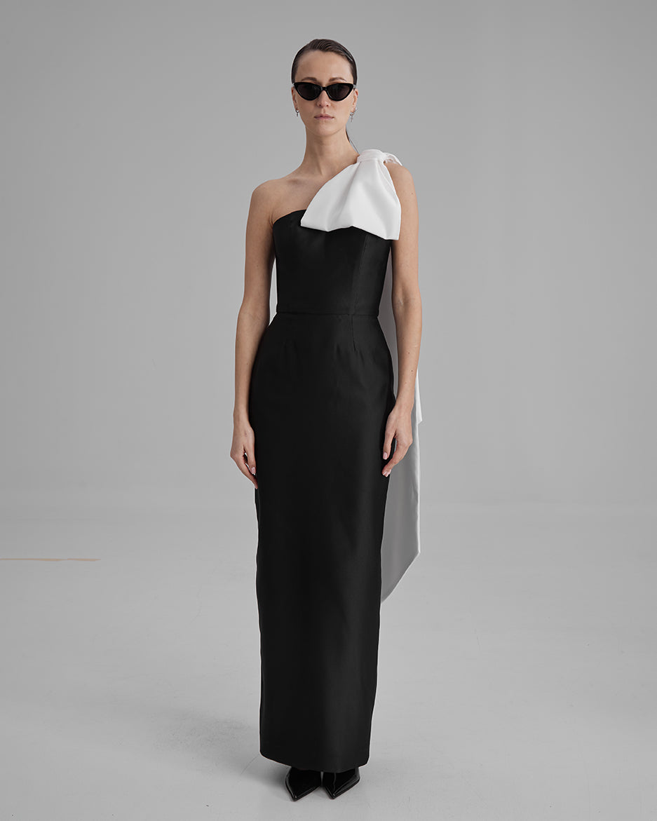 GIGI DRESS + PUFFED SLEEVE BOLERO | strapless cone maxi in black