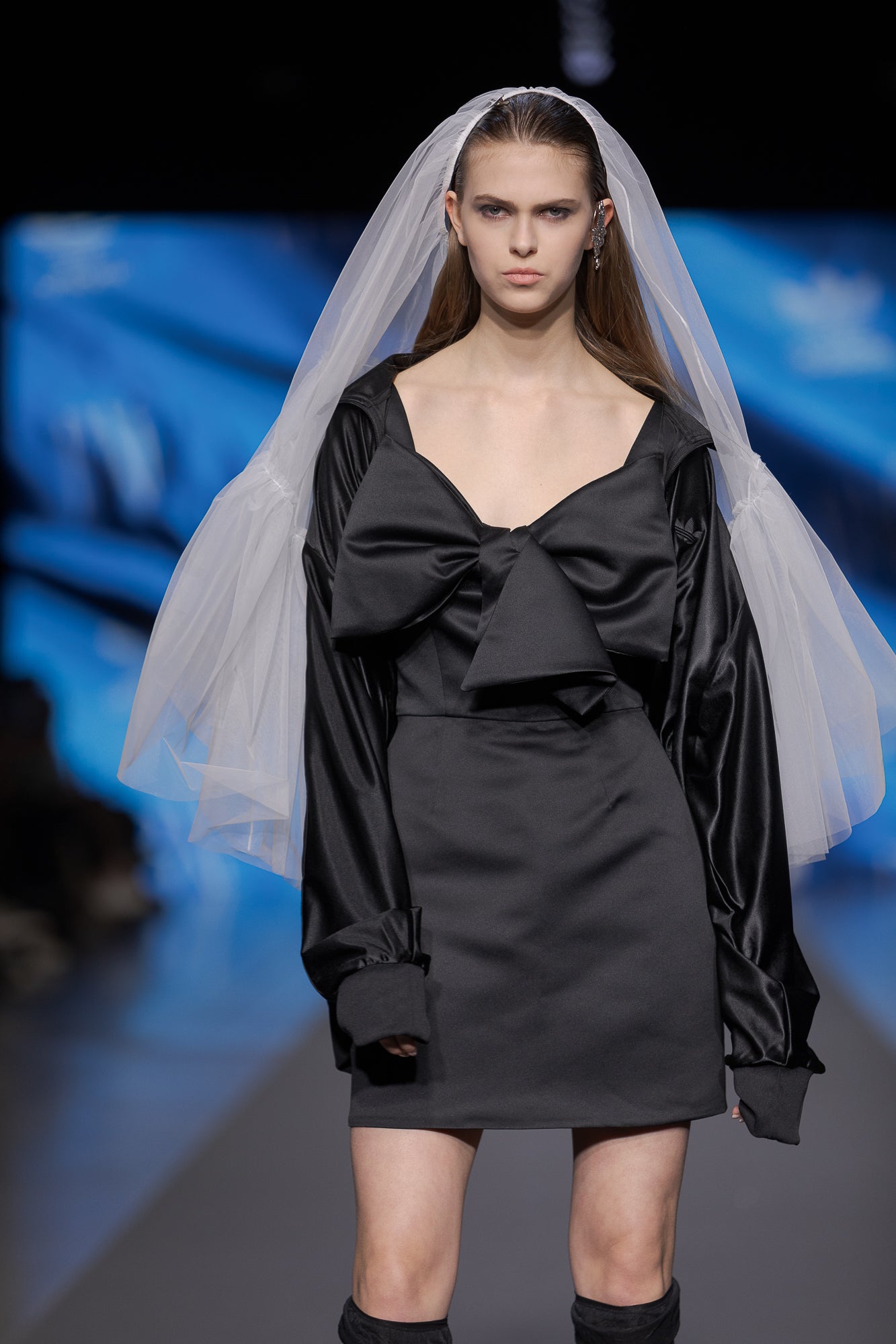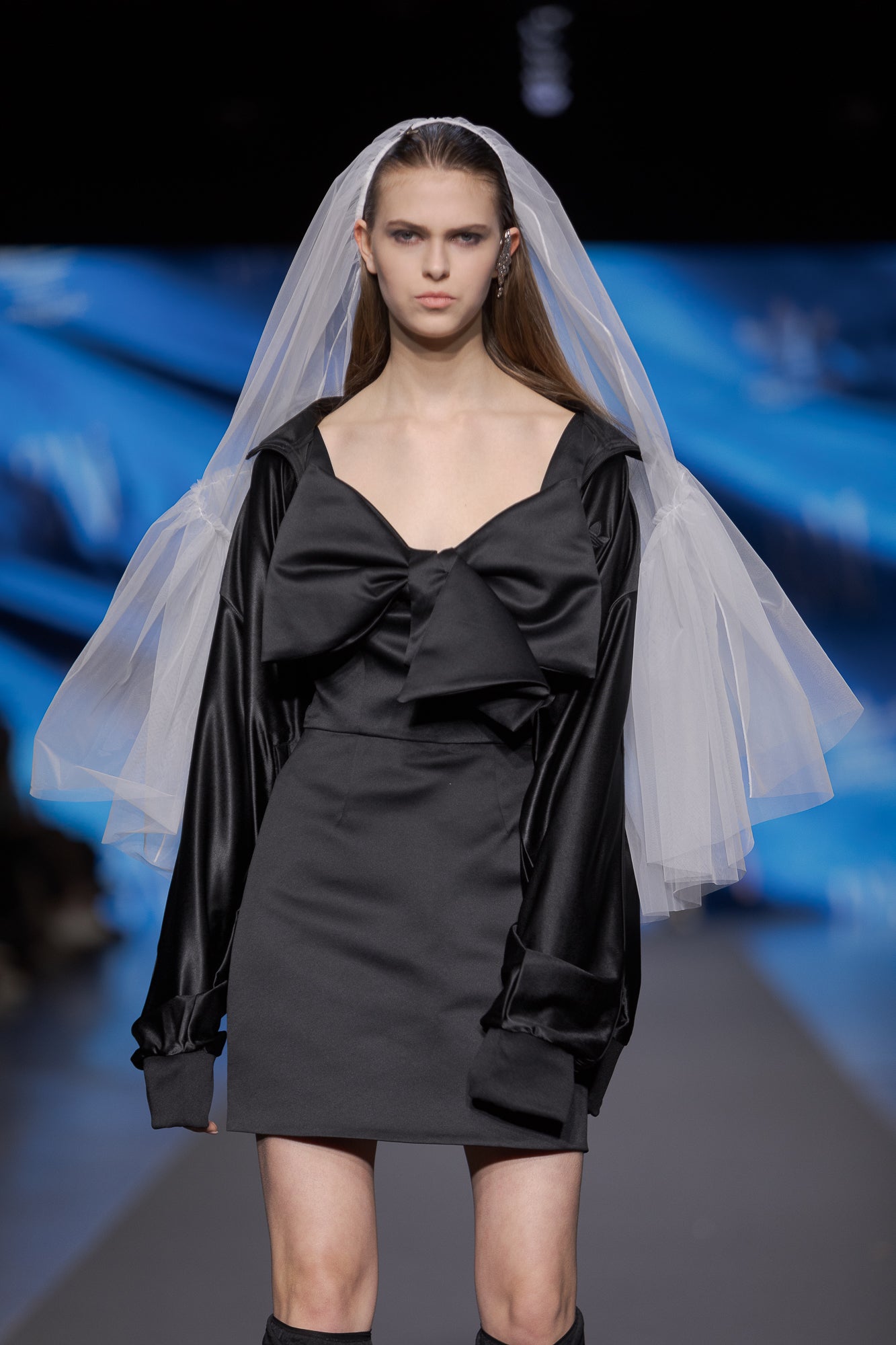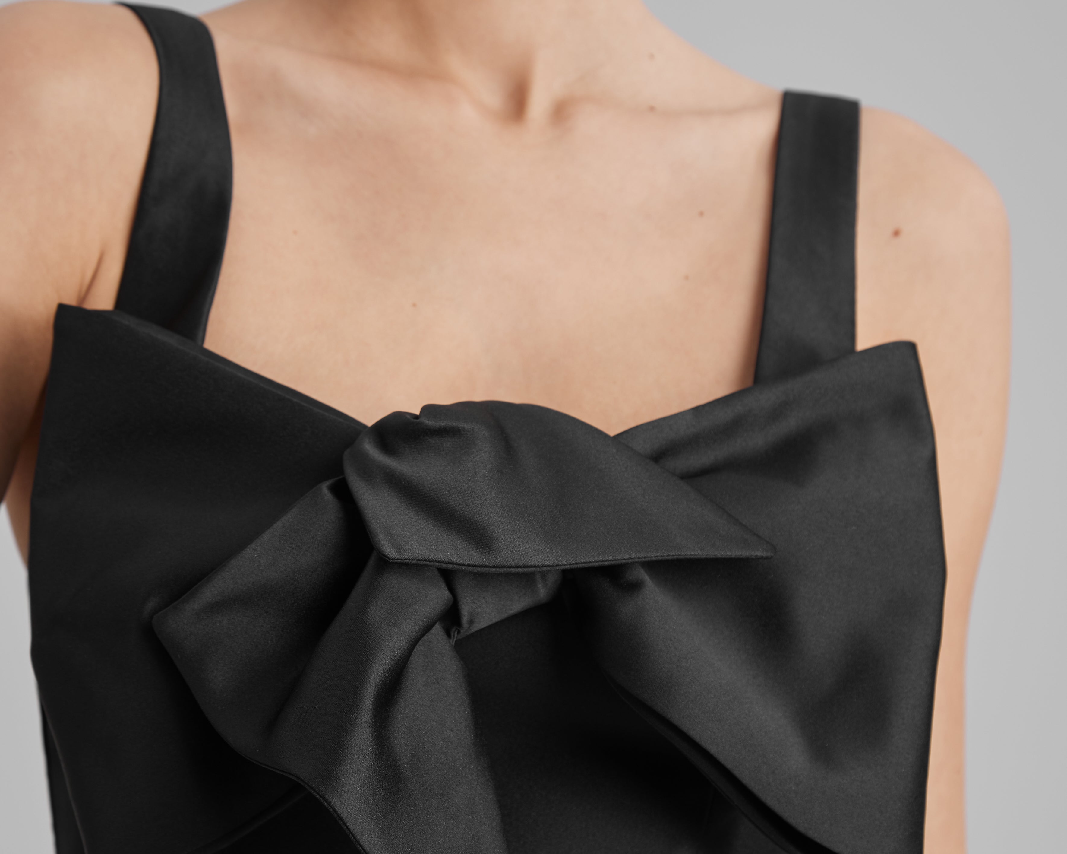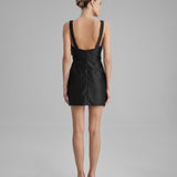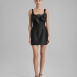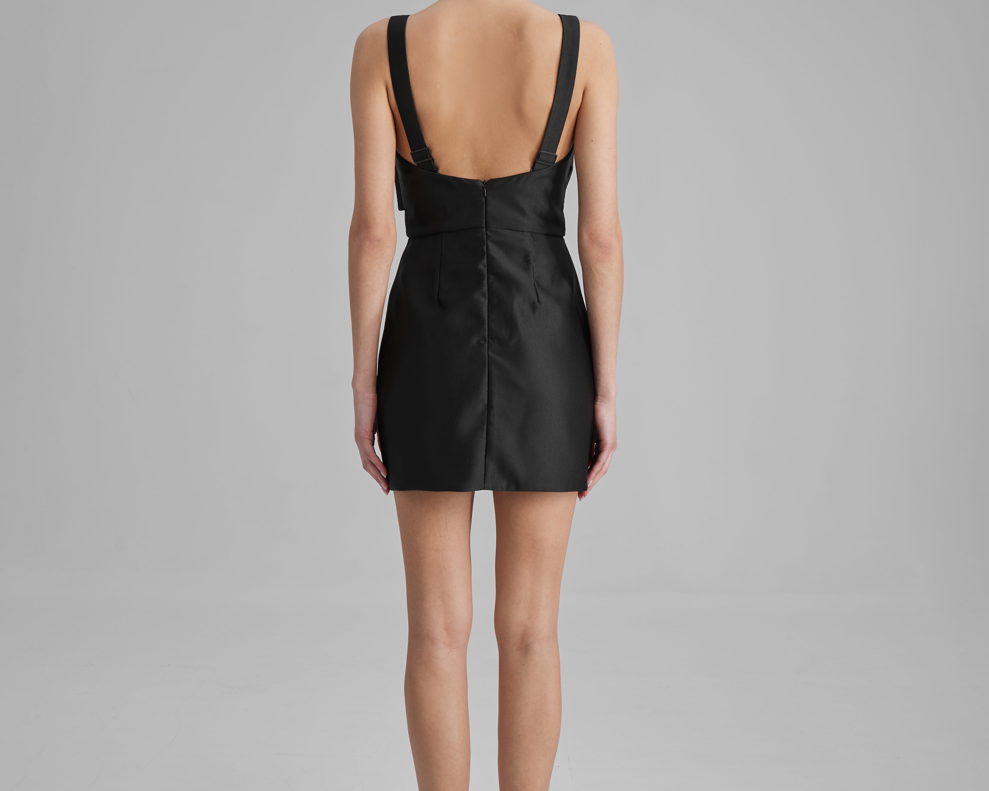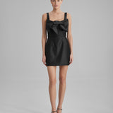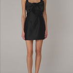 LUNA DRESS + SMALL BOW | square neckline mini in black
