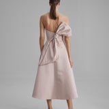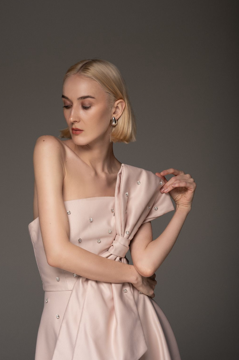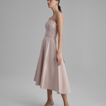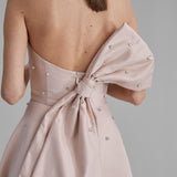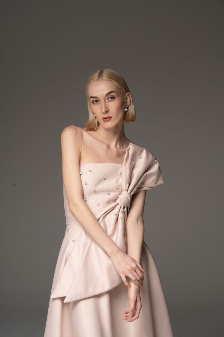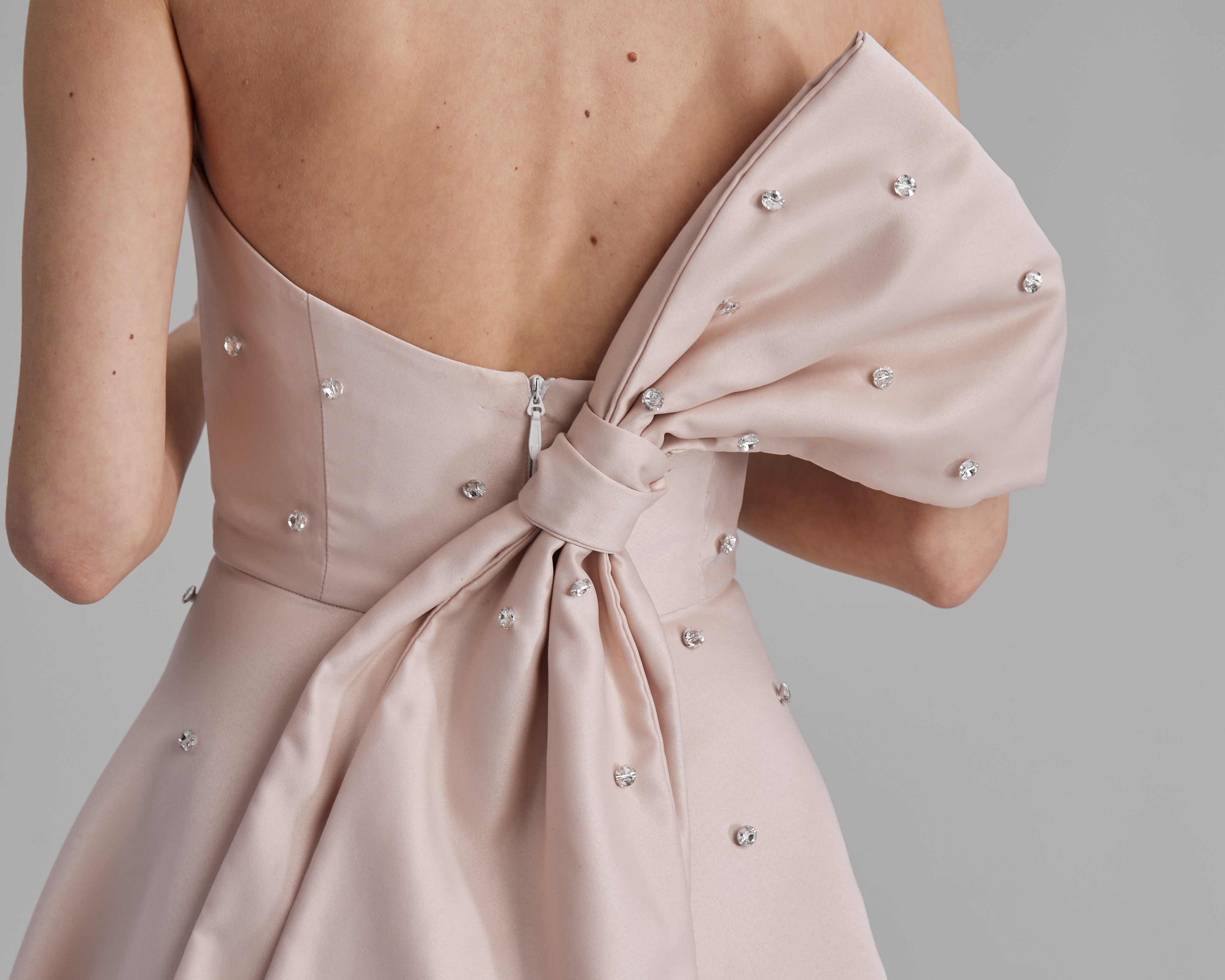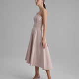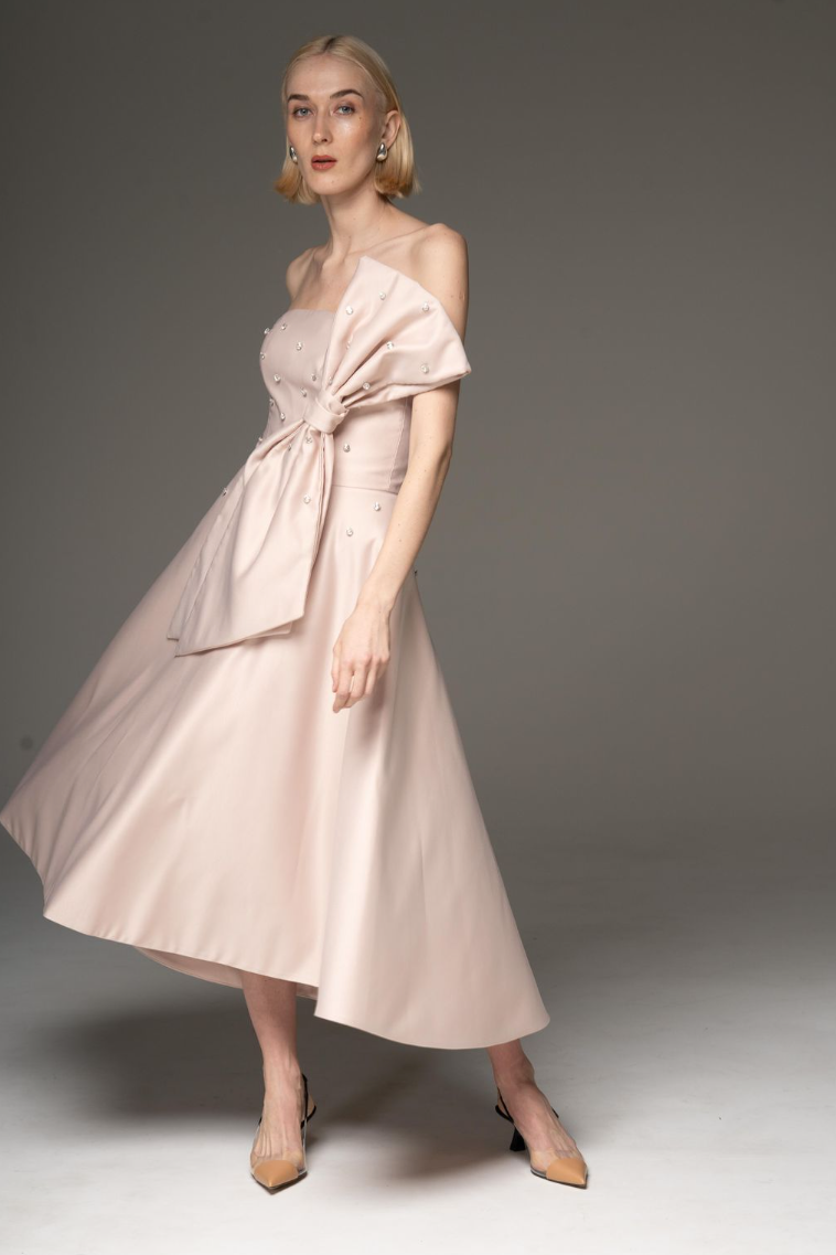 MIA DRESS WITH DIAMONDS + SIDE BOW | strapless midi in nude