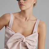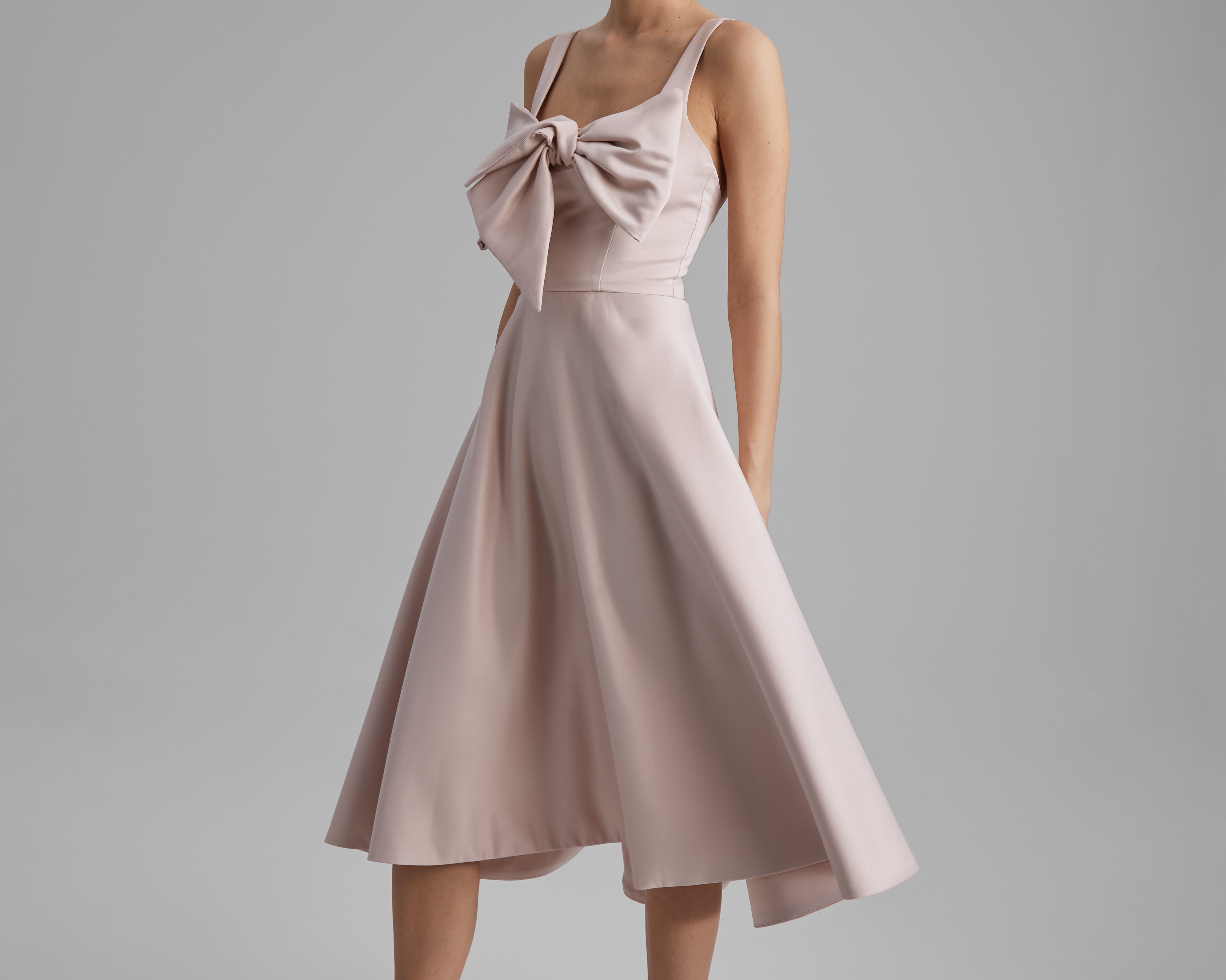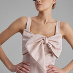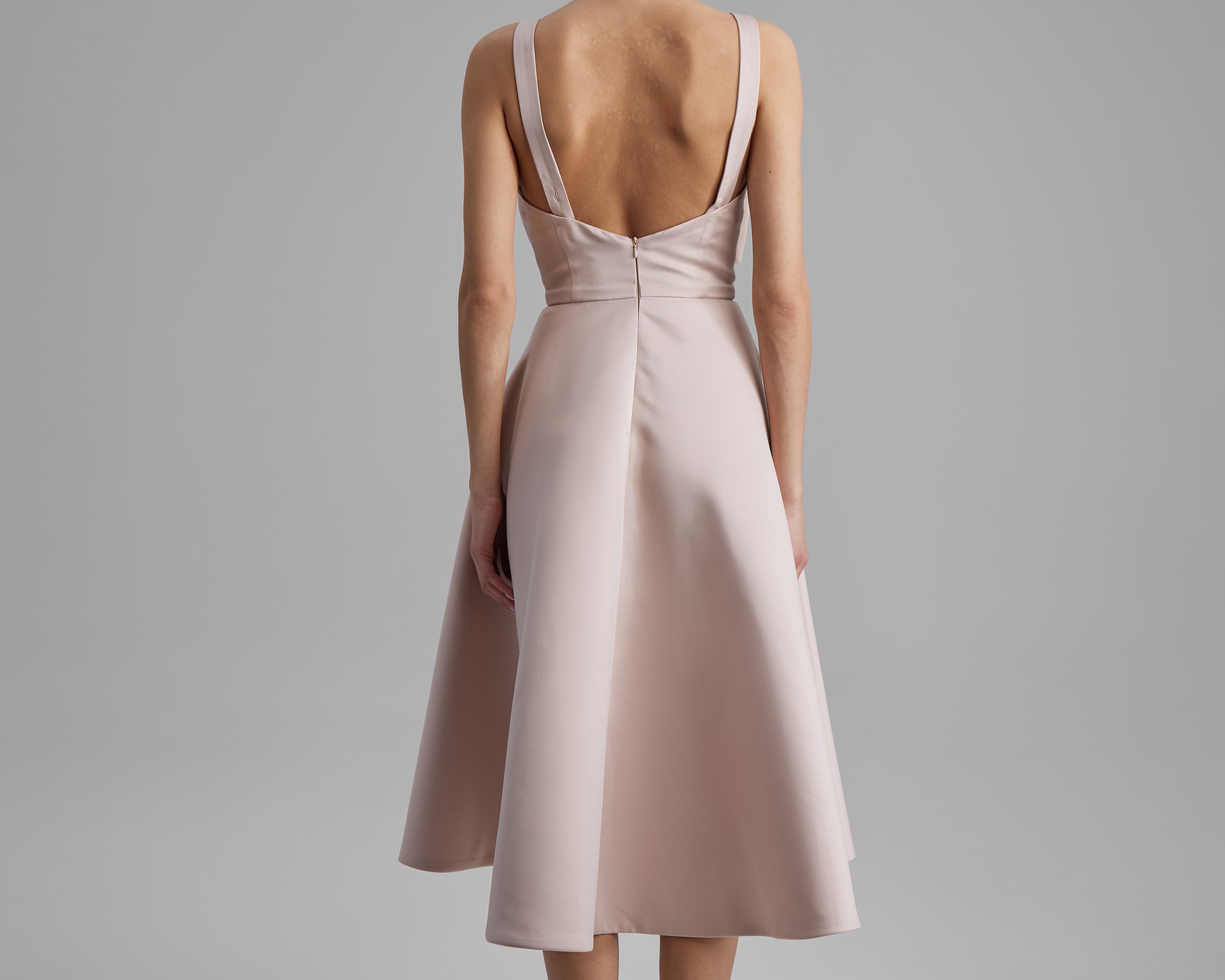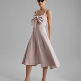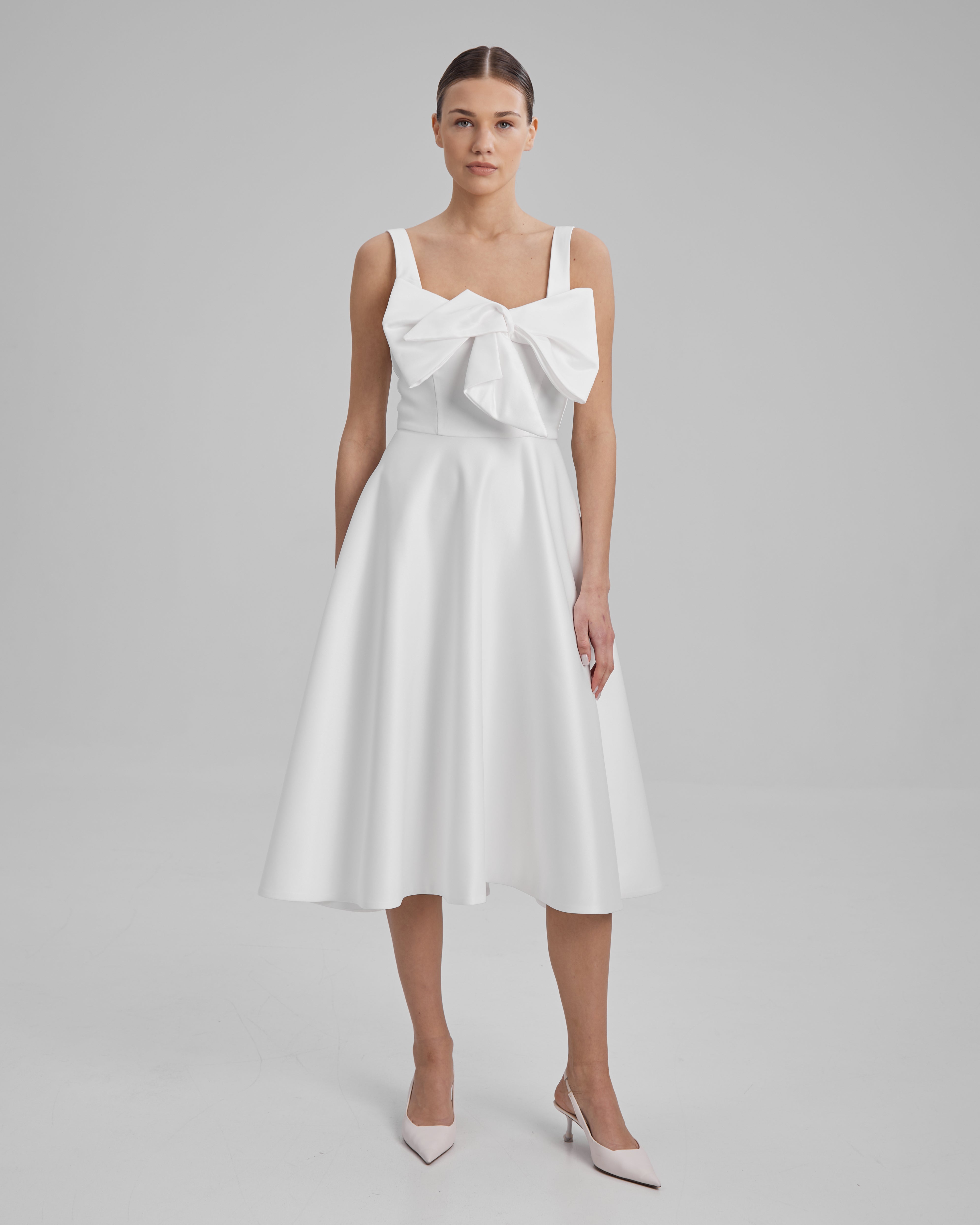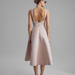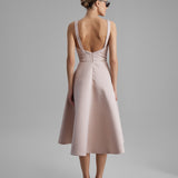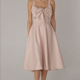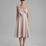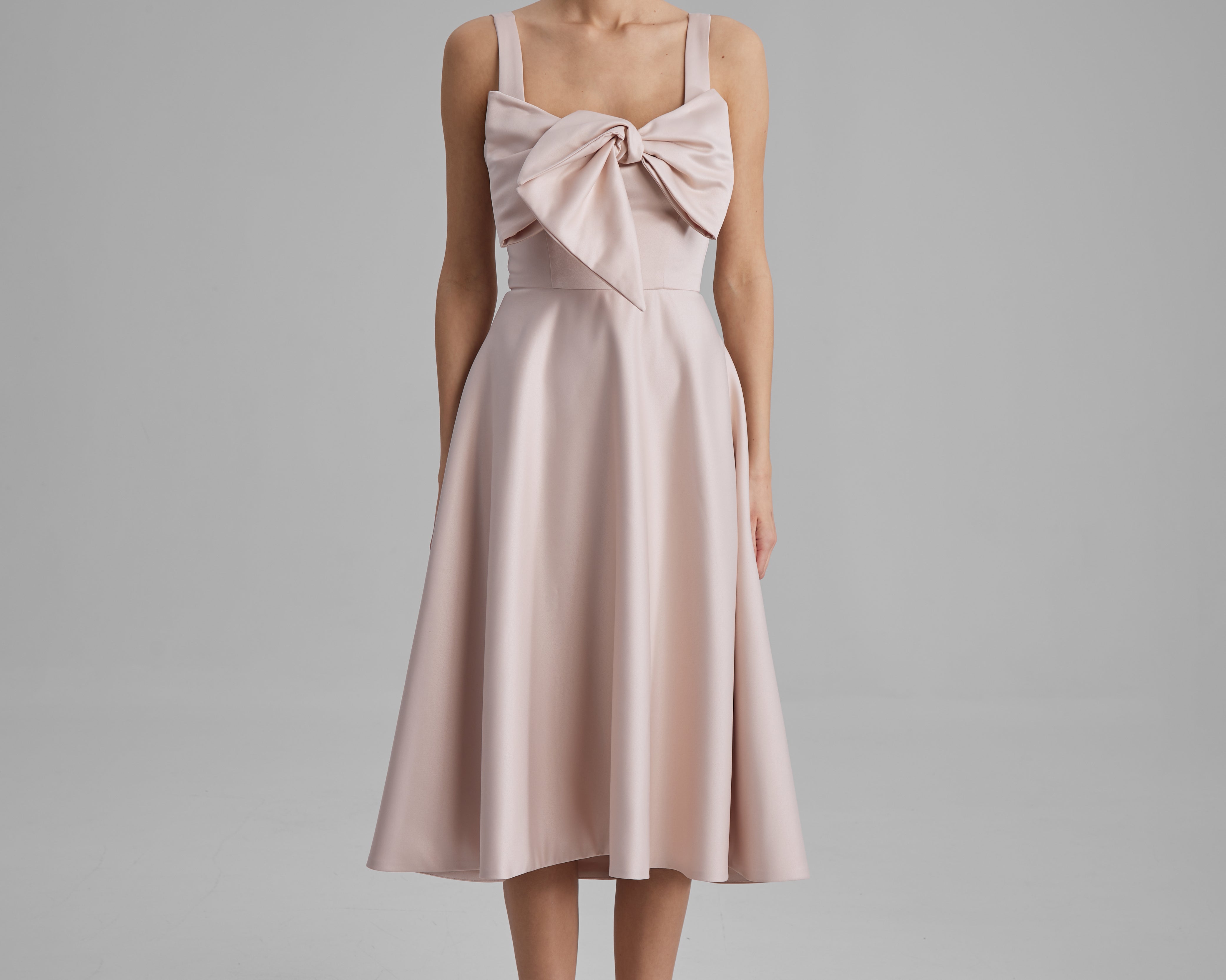 RUBY DRESS + SMALL BOW | square neckline A line midi in nude