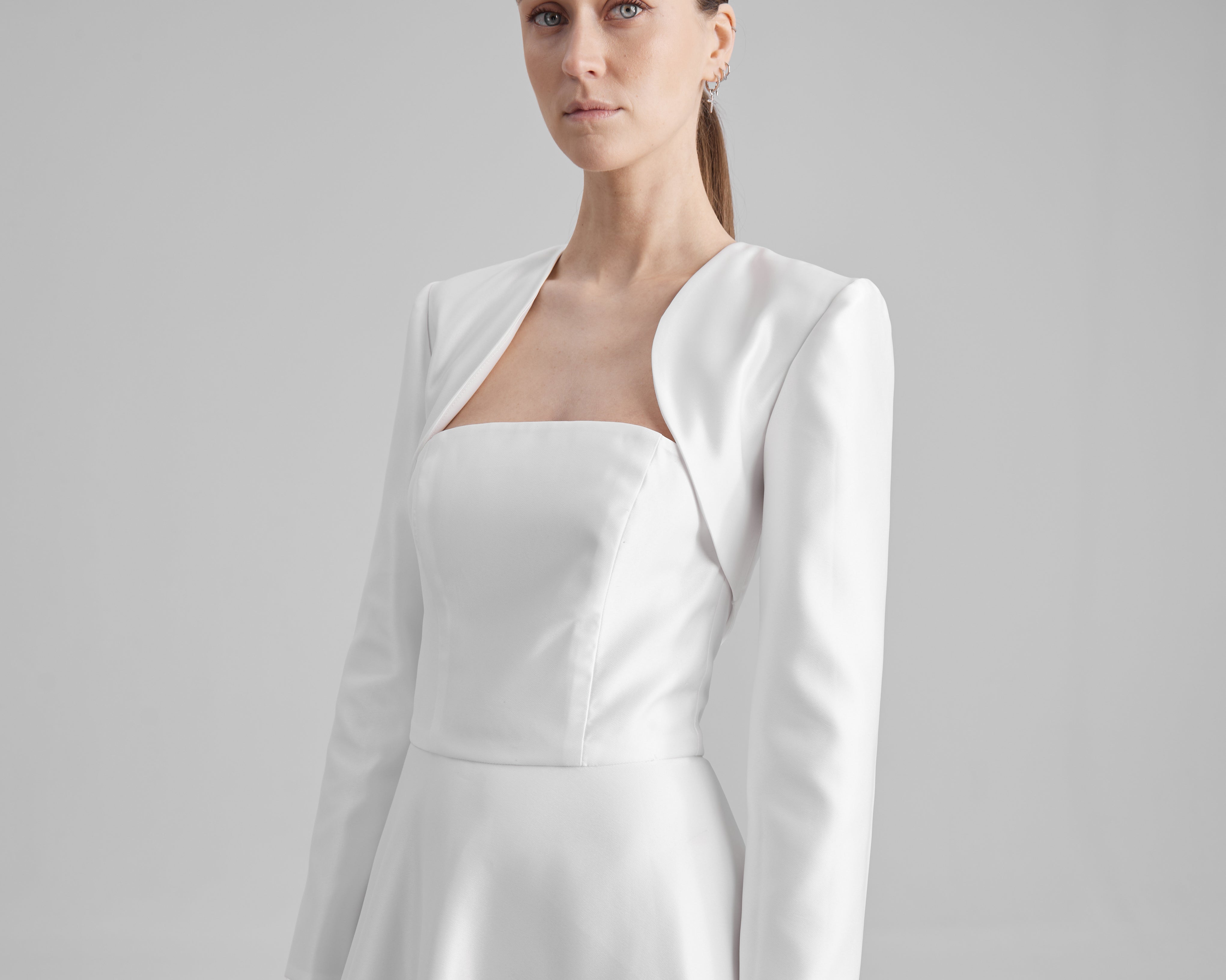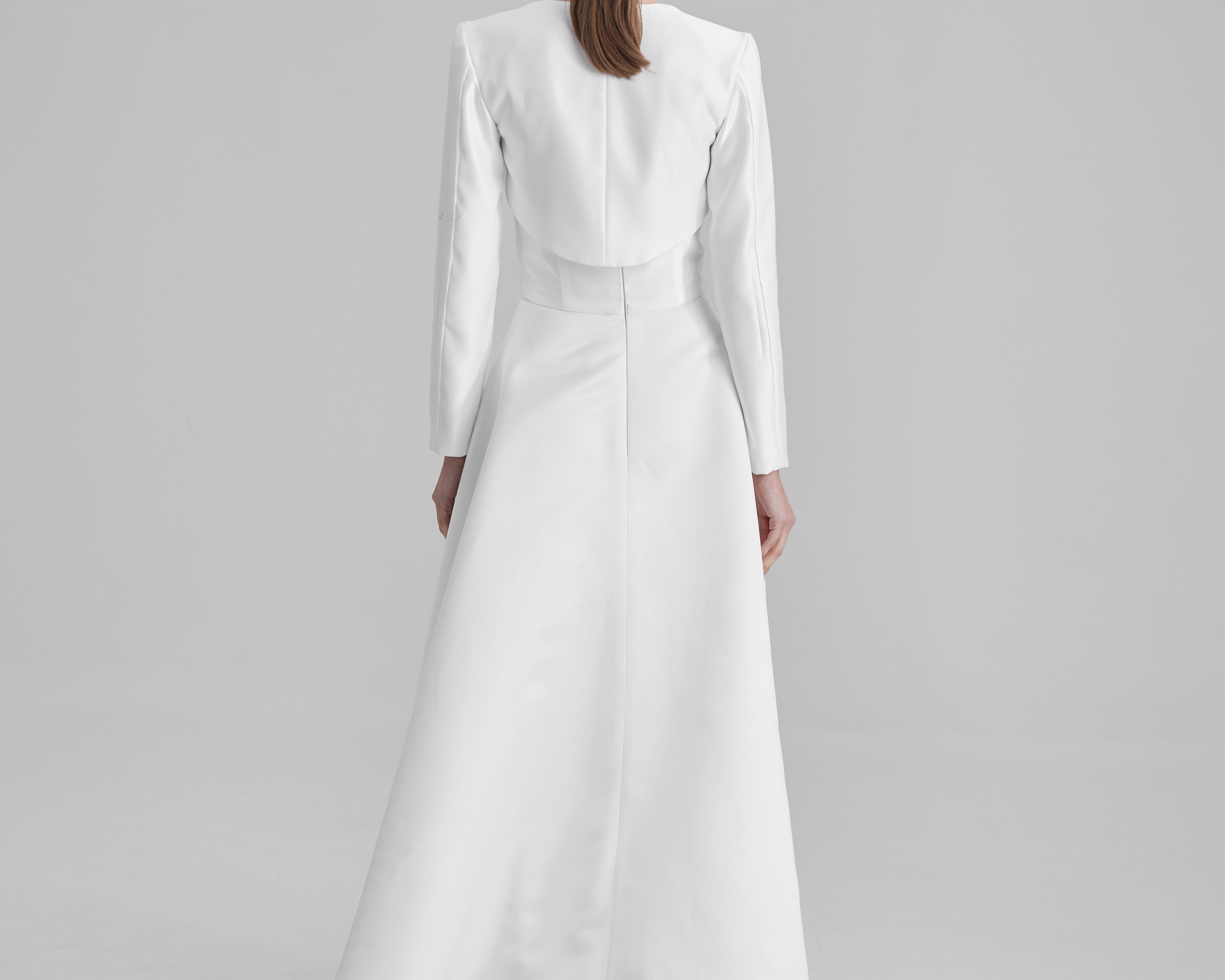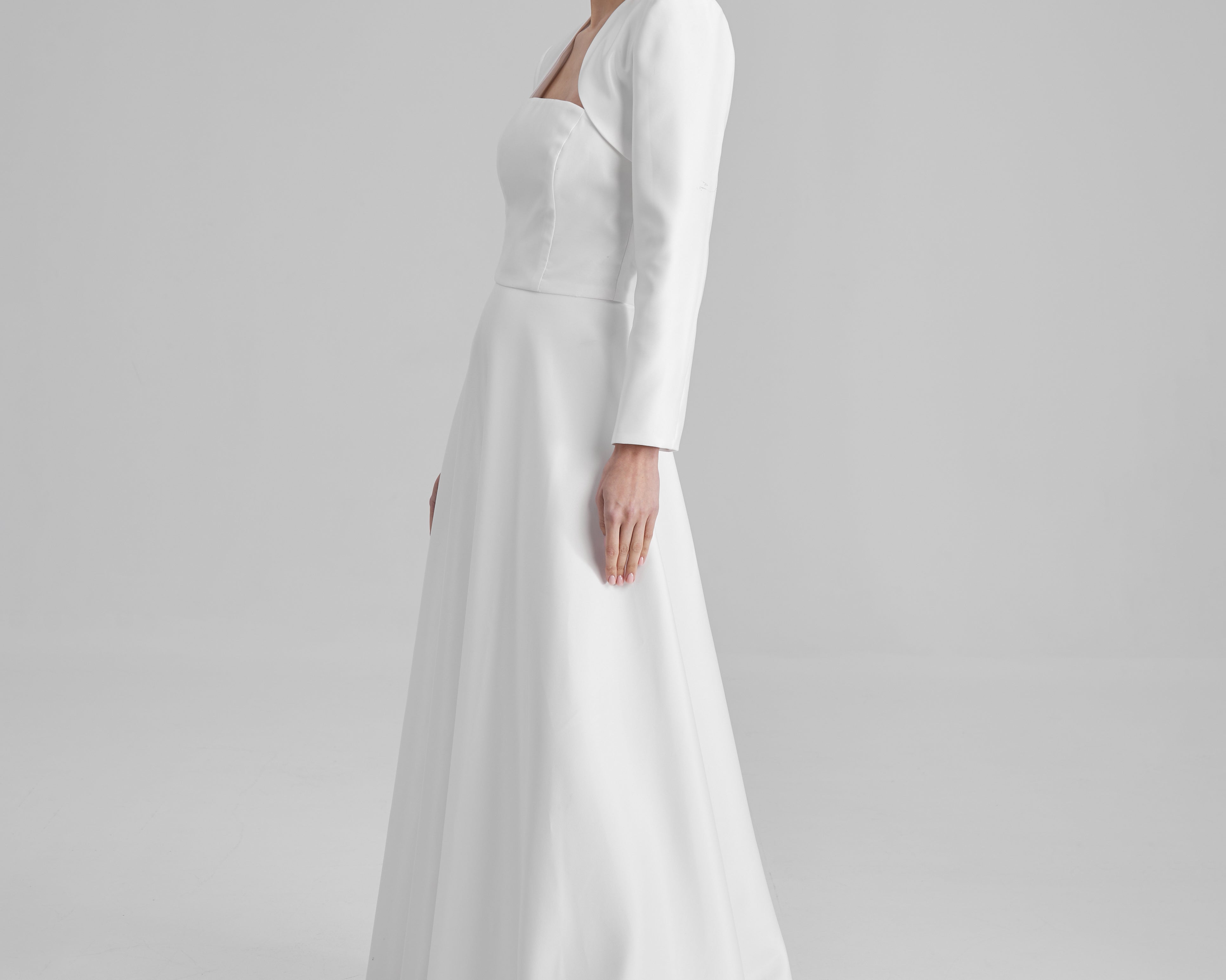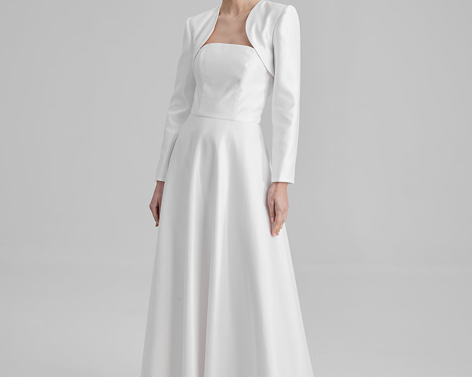 EVE DRESS + BOLERO | Strapless A line maxi dress in white