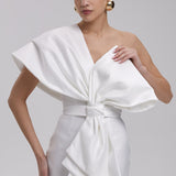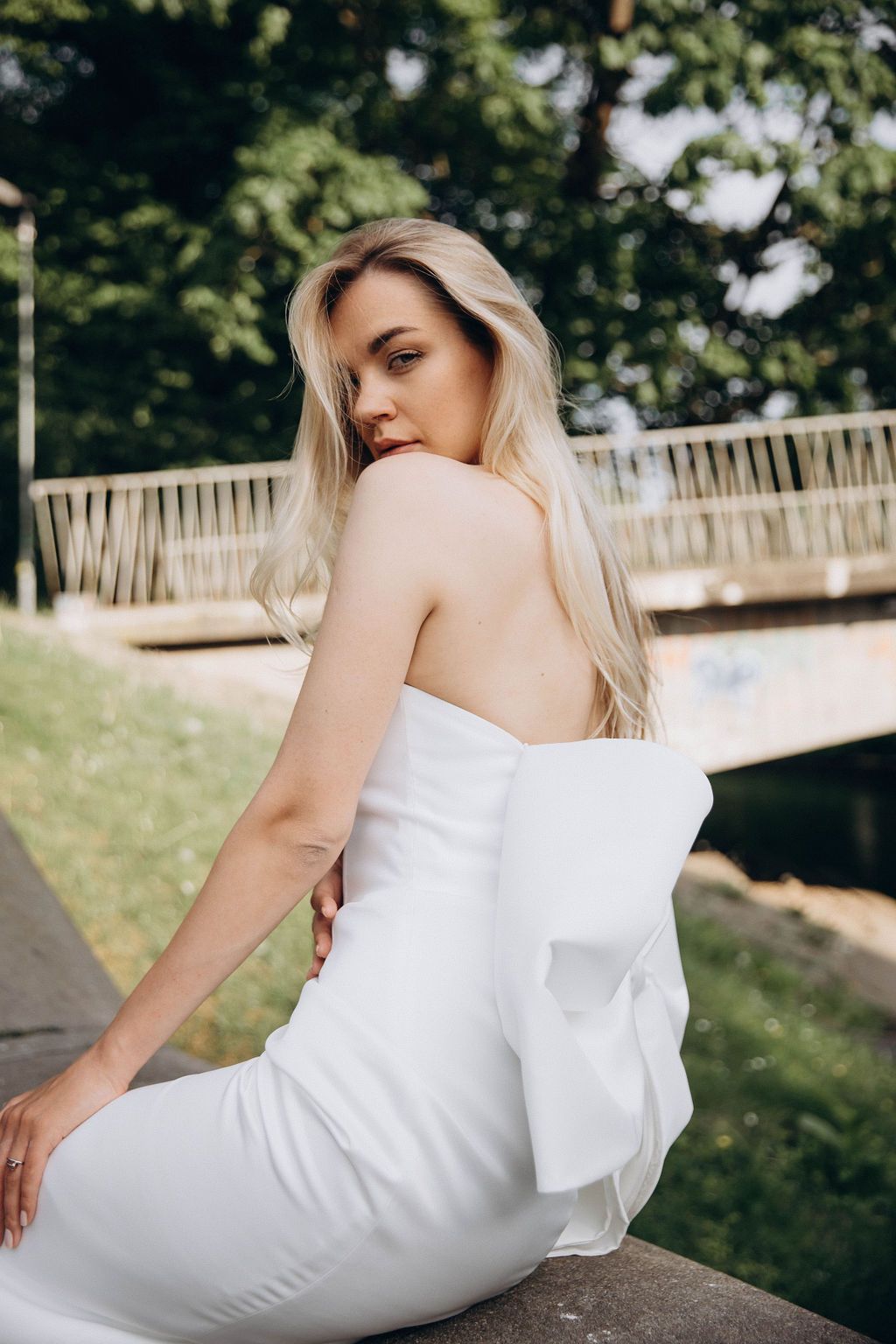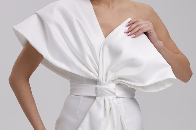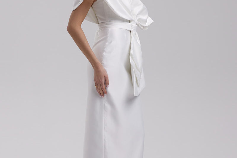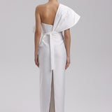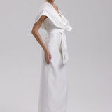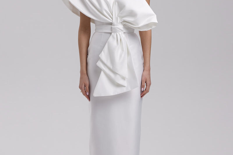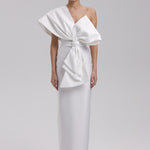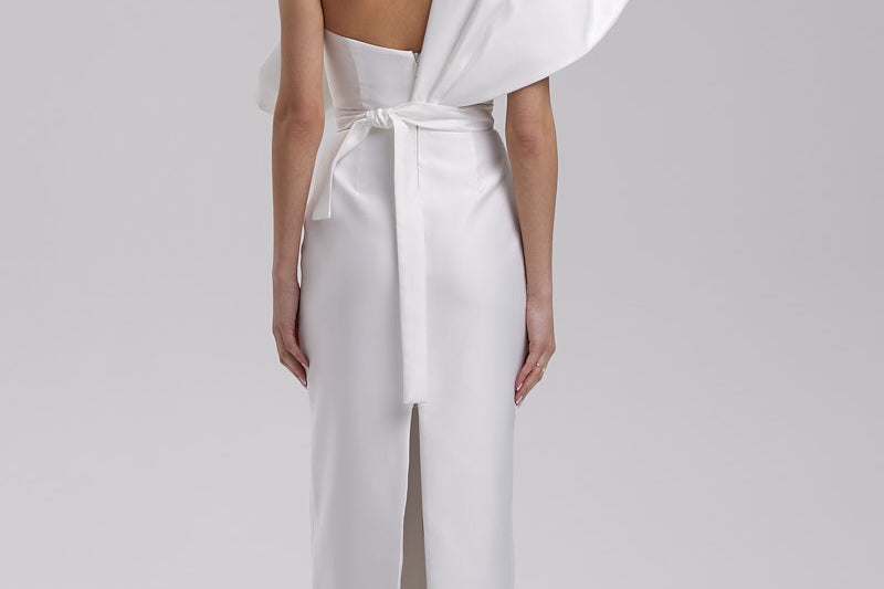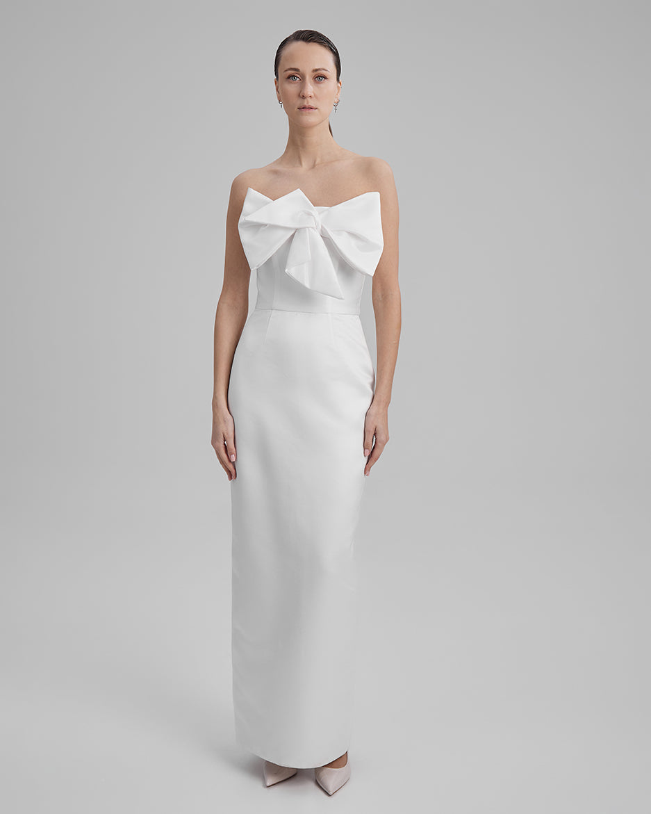 GIGI DRESS + KIMONO BOW | strapless cone maxi in white