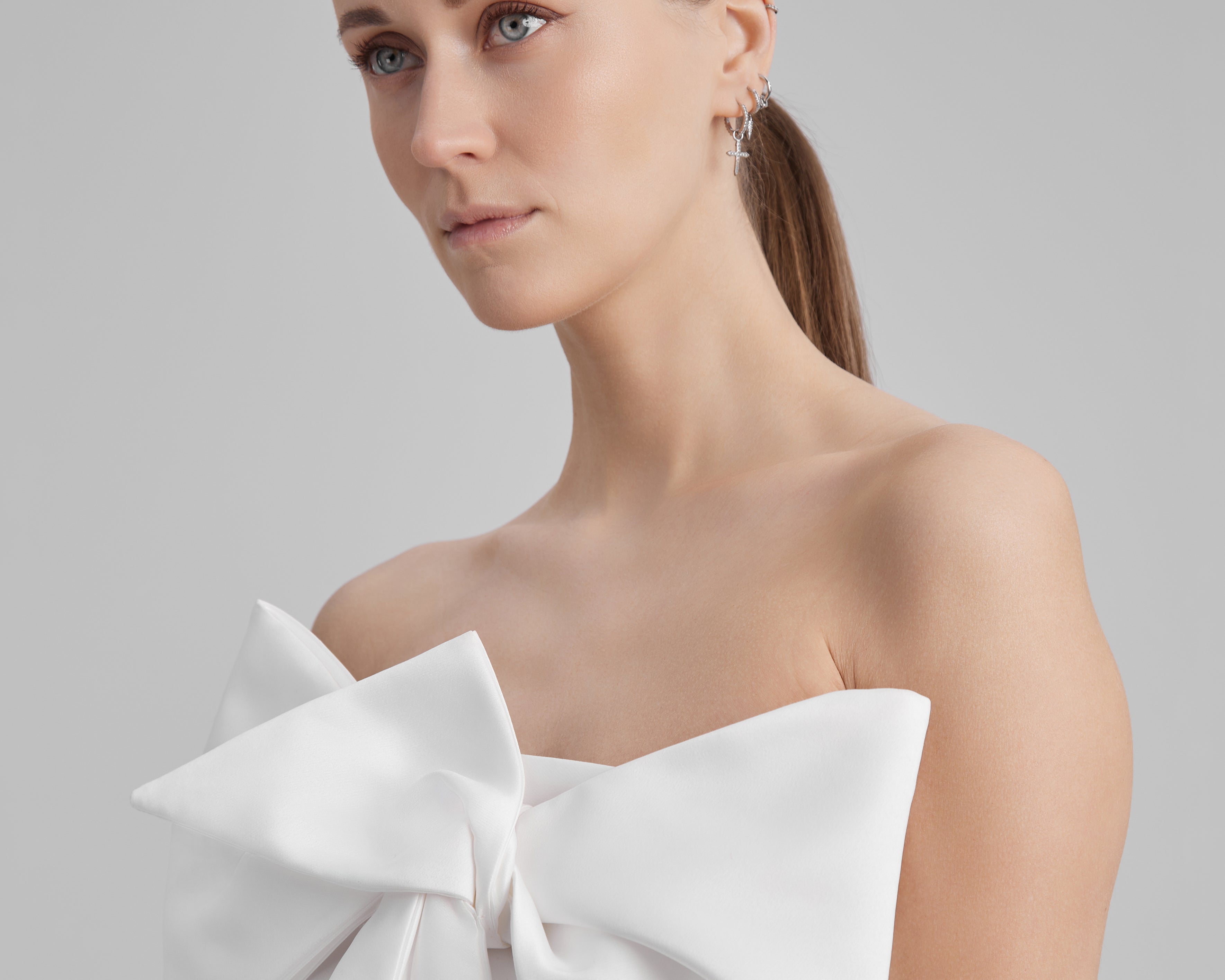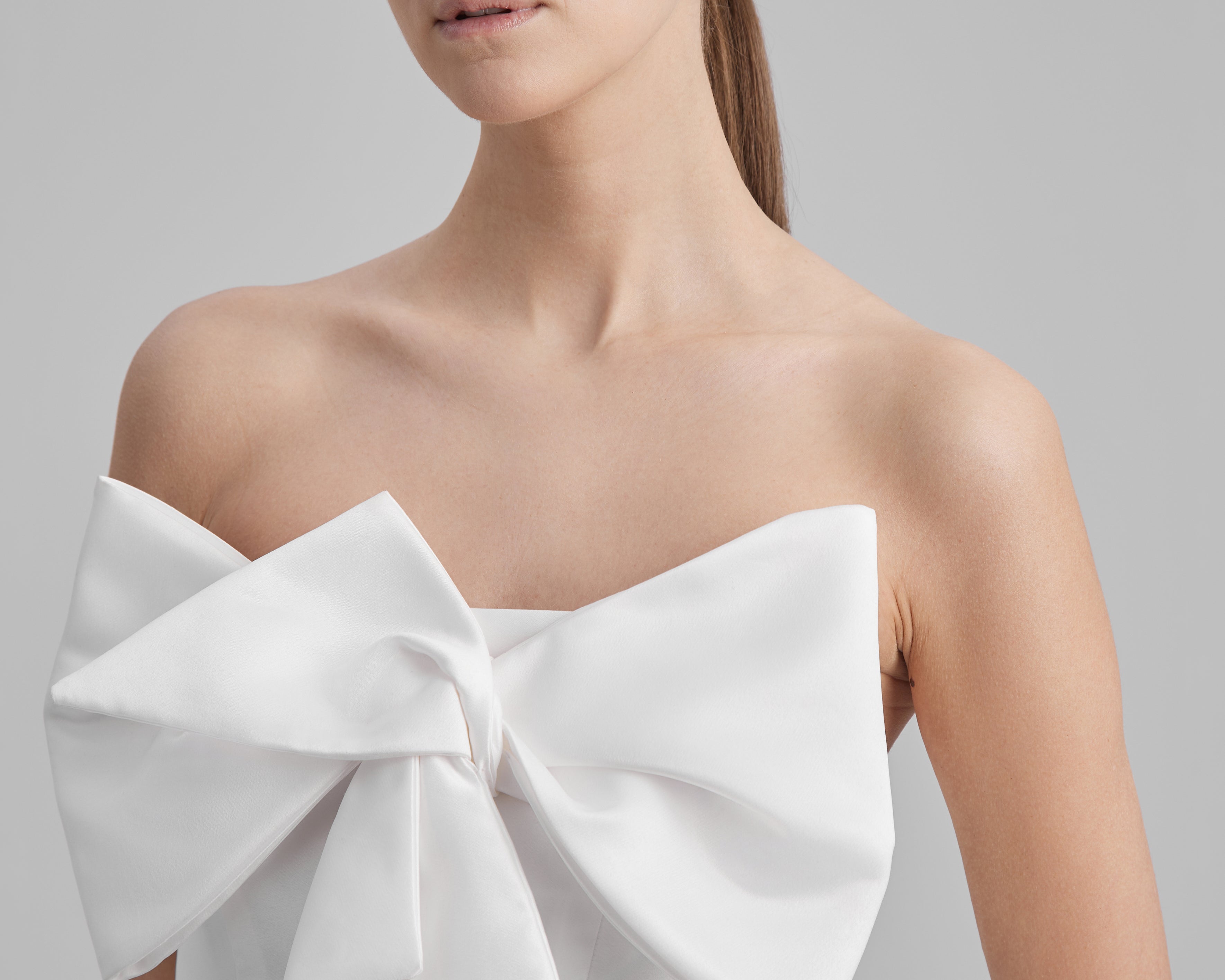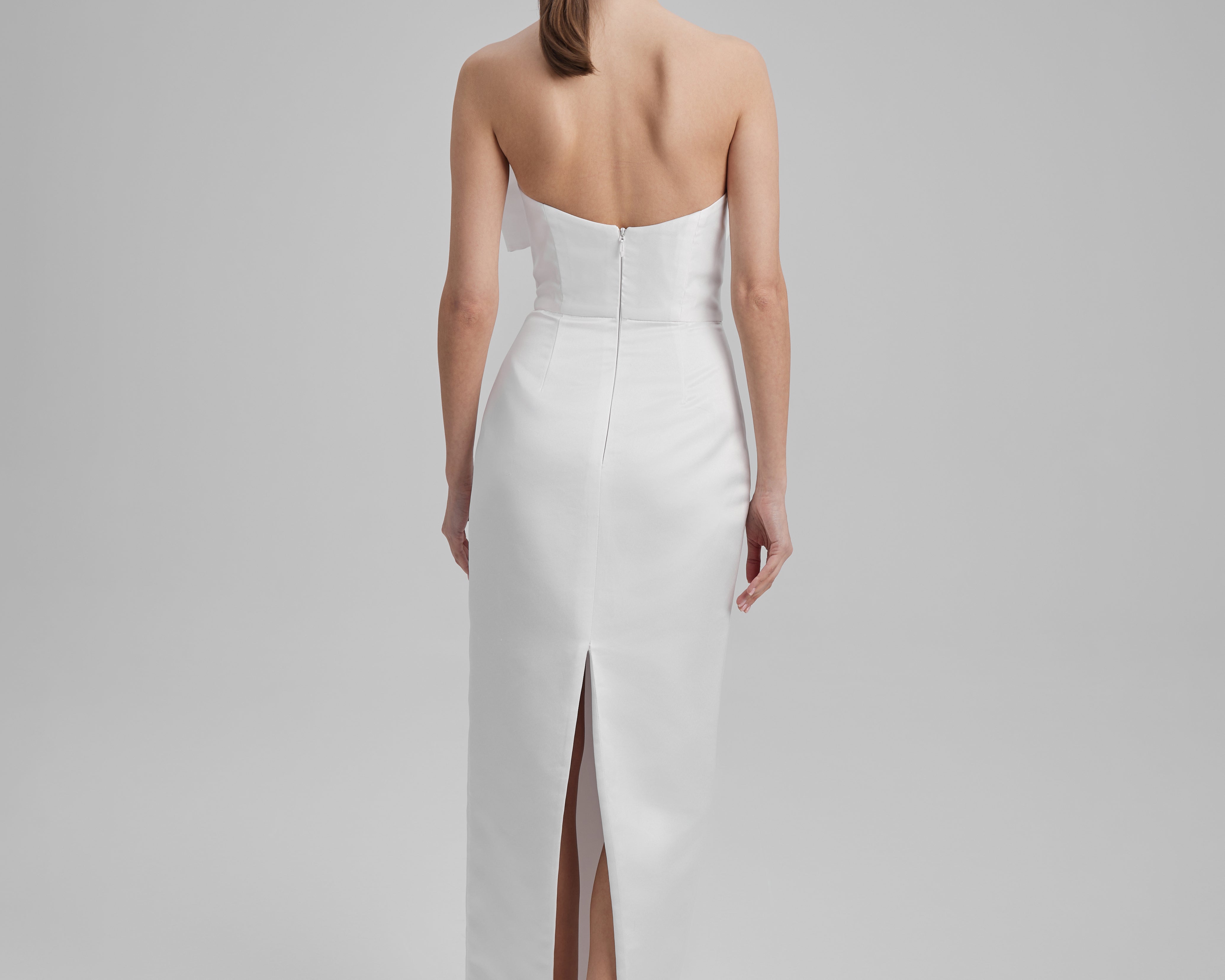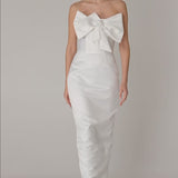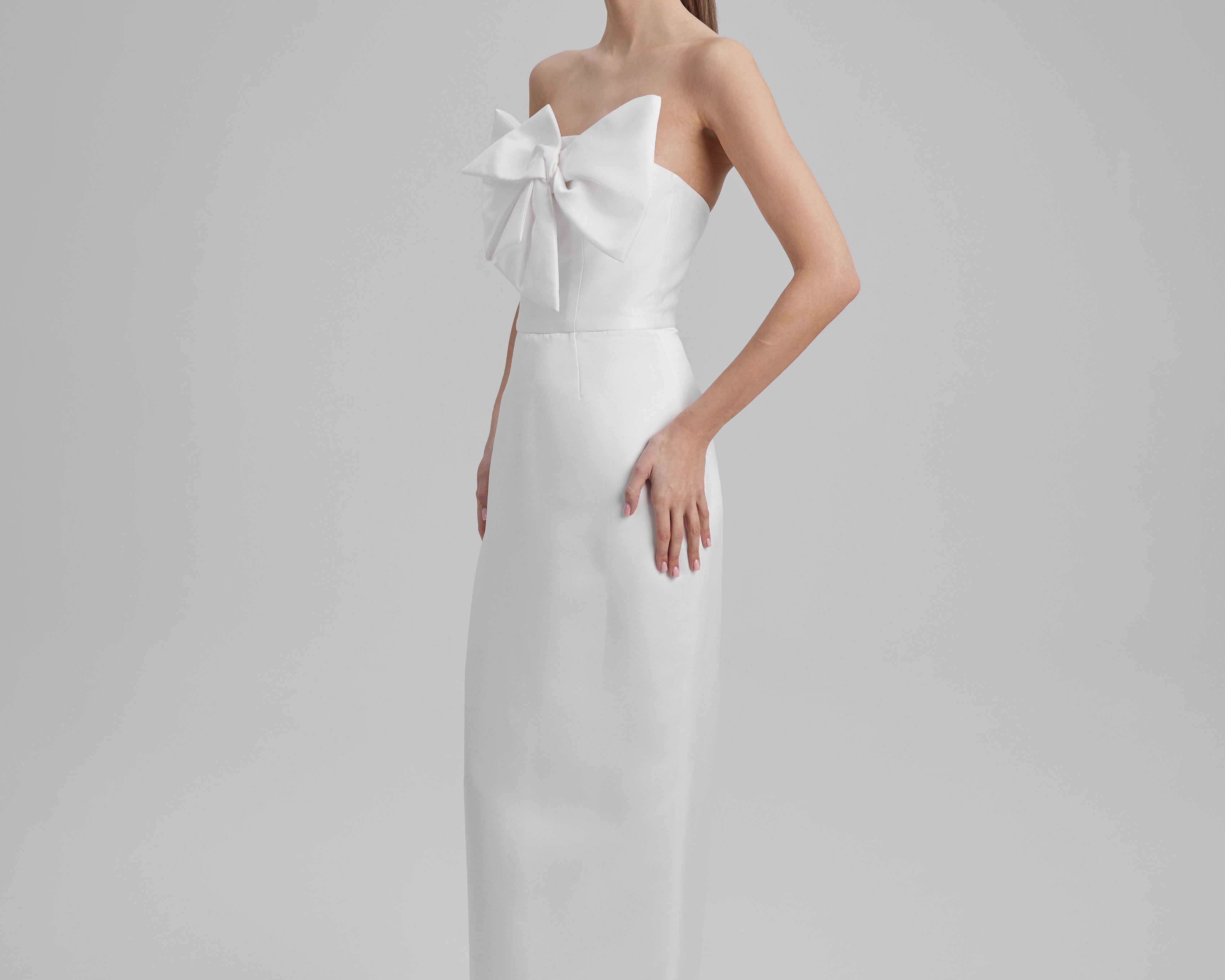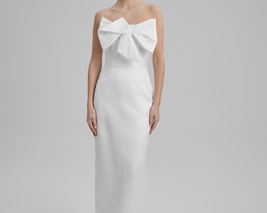GIGI DRESS + SMALL BOW | strapless pencil maxi in white