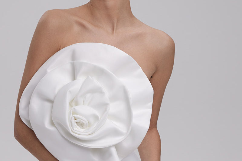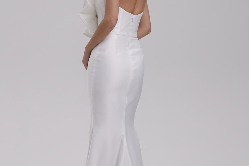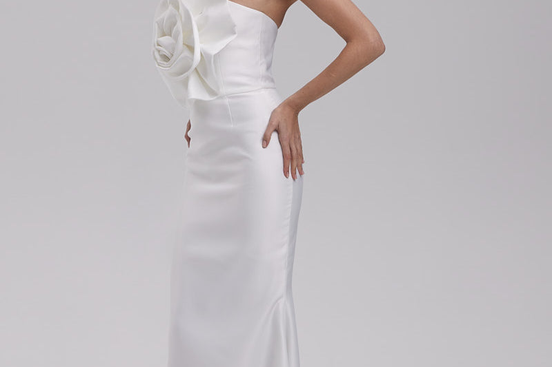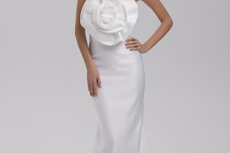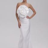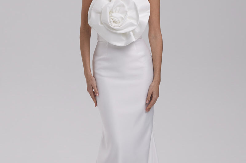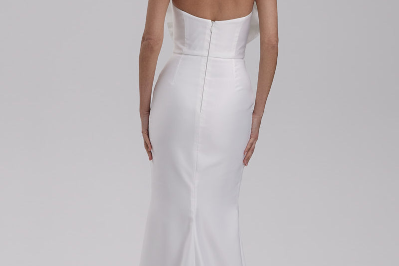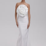 GRACE DRESS + CAMELIA BROCH | strapless cone maxi in white