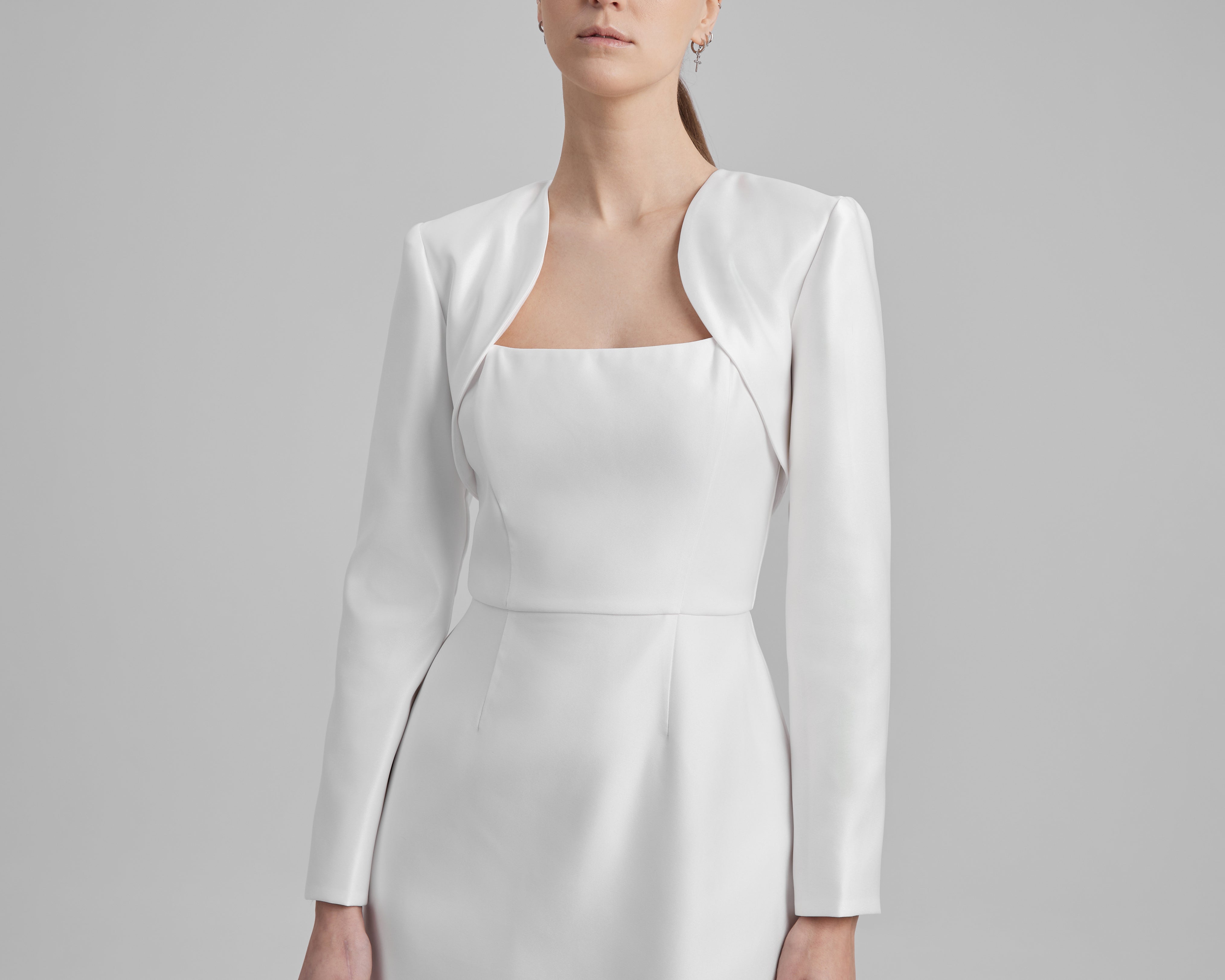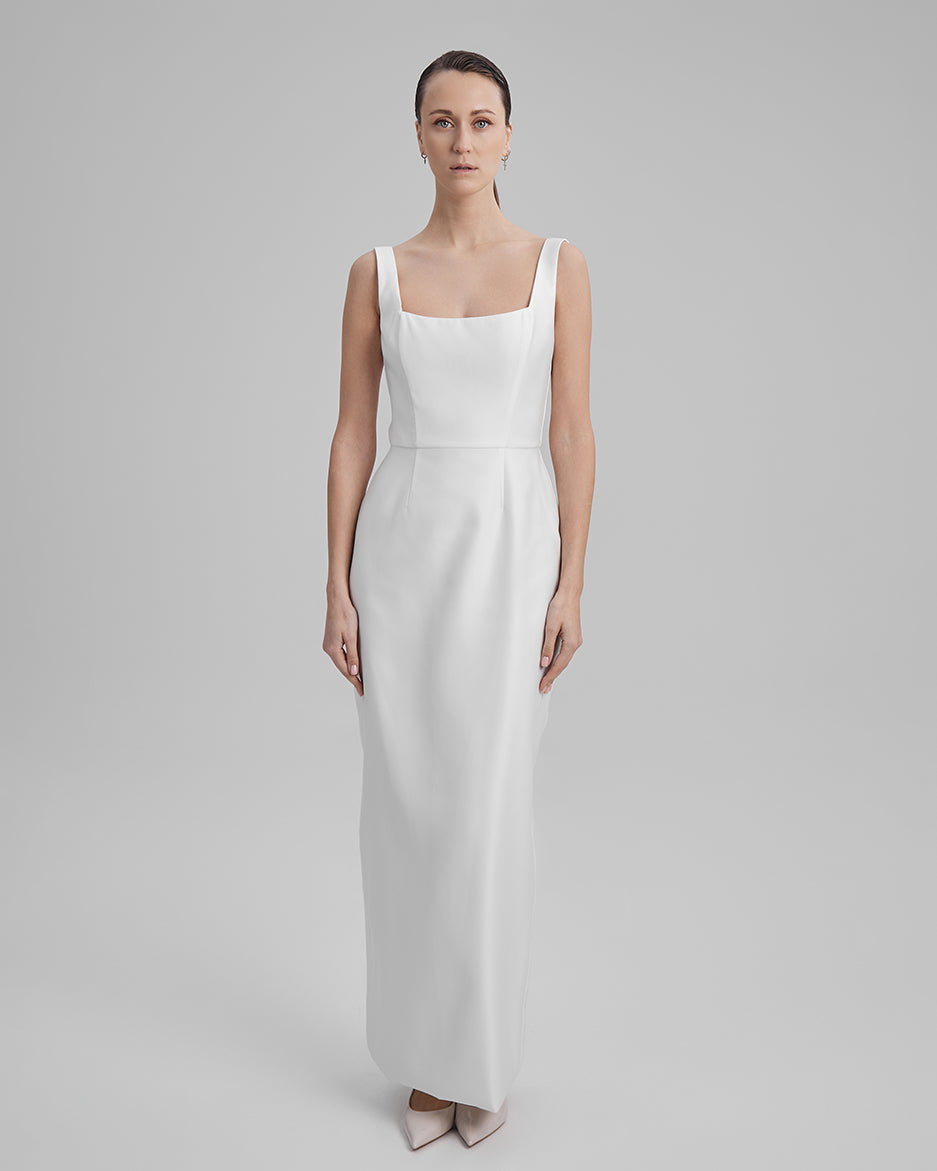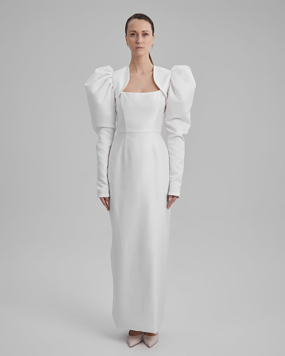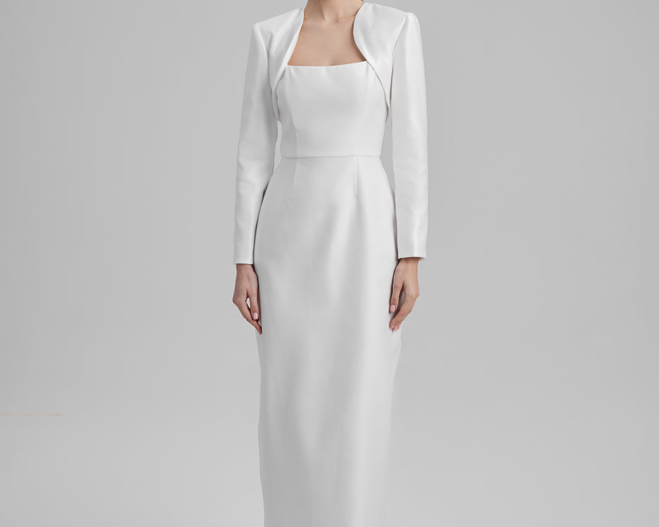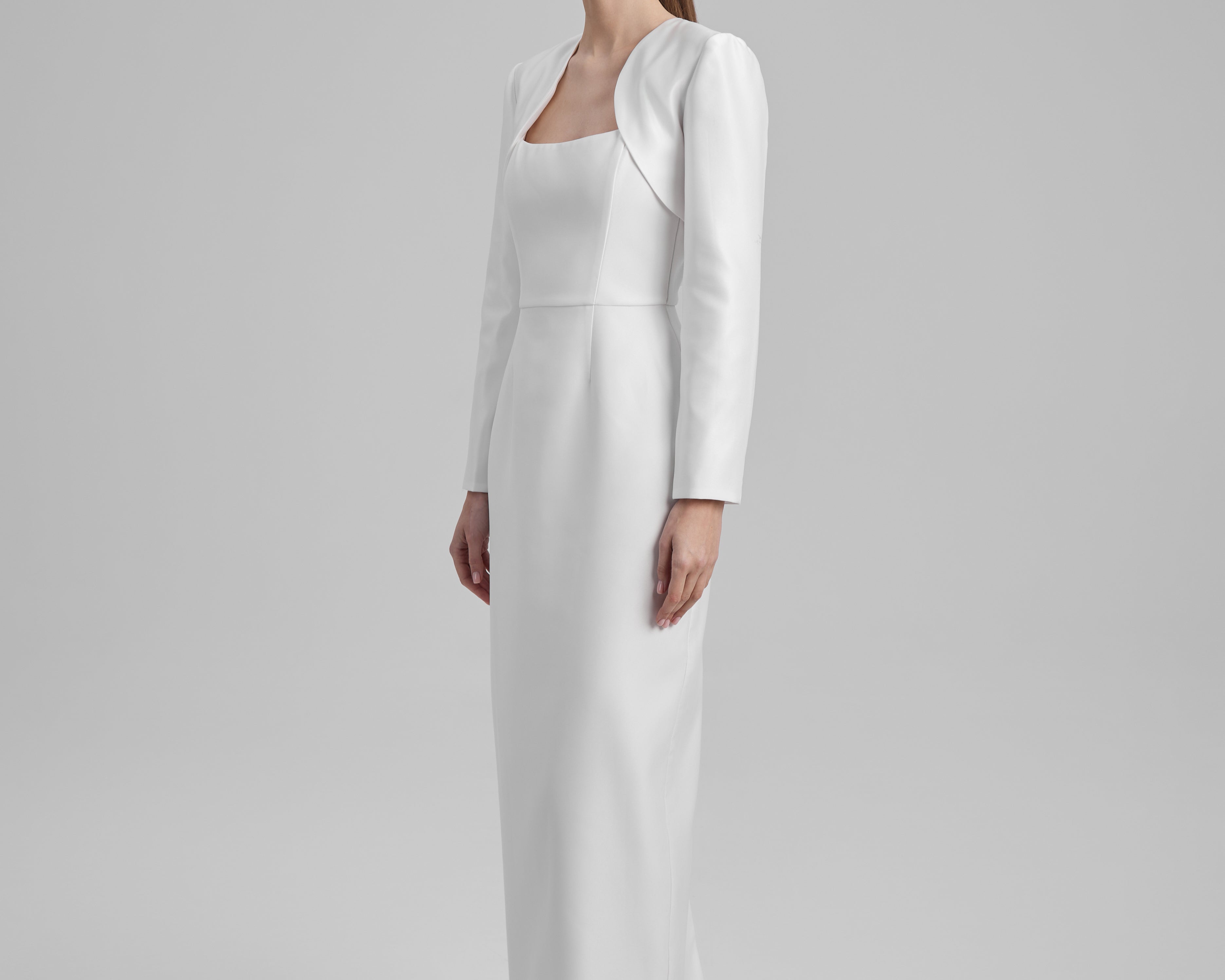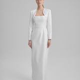 IDA DRESS + BOLERO | square neckline pencil maxi in white