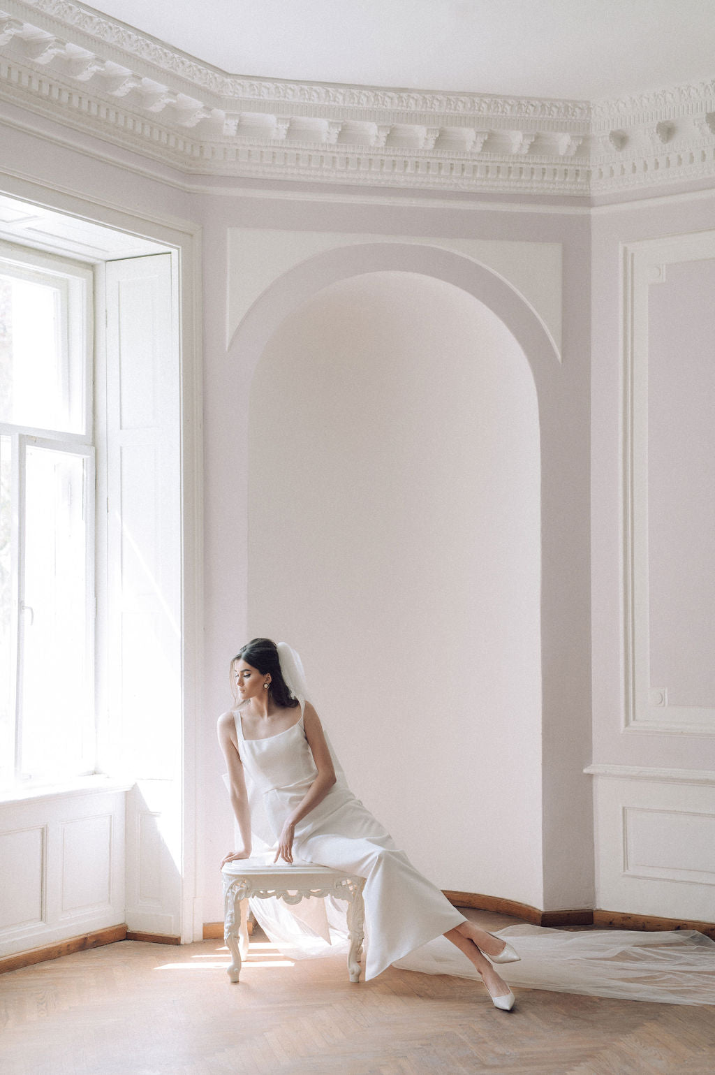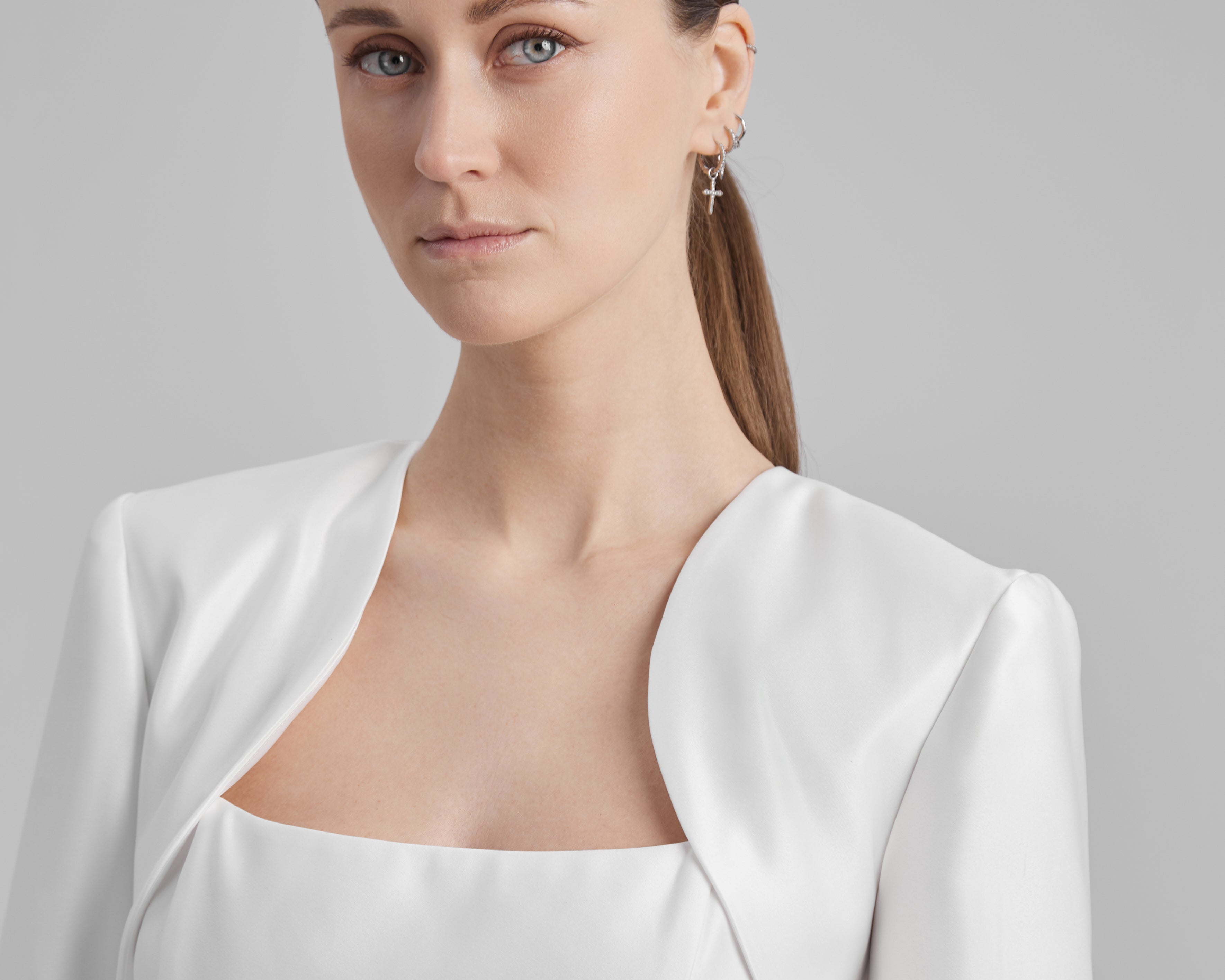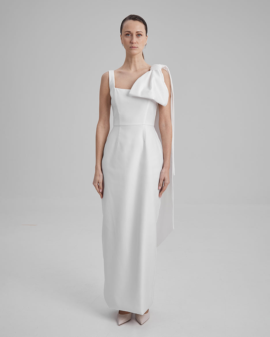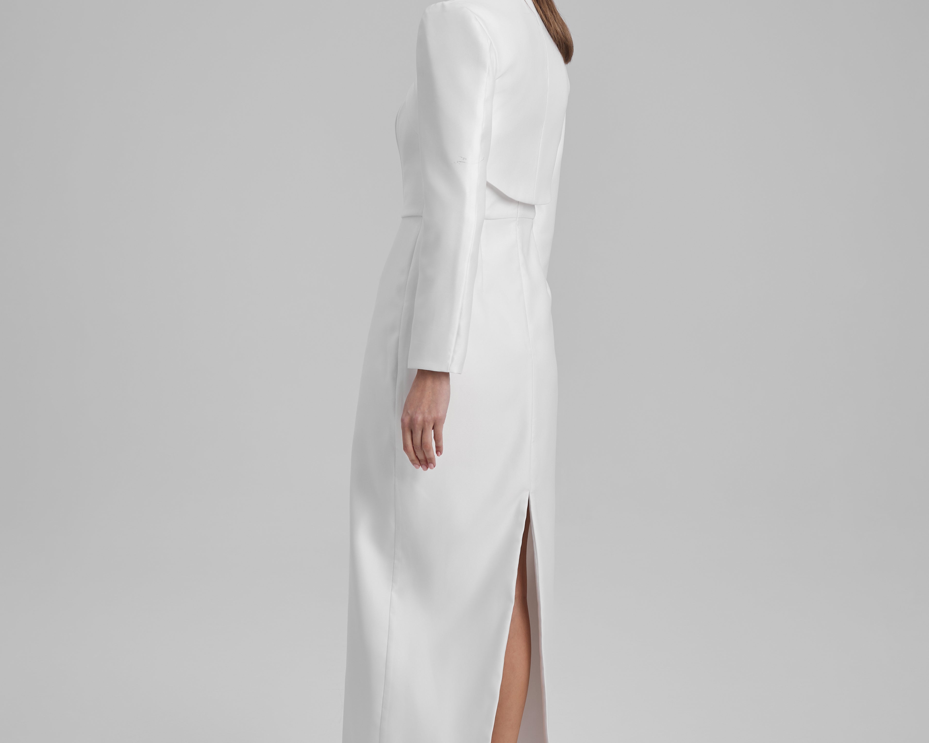 IDA DRESS + BOLERO | square neckline pencil maxi in white