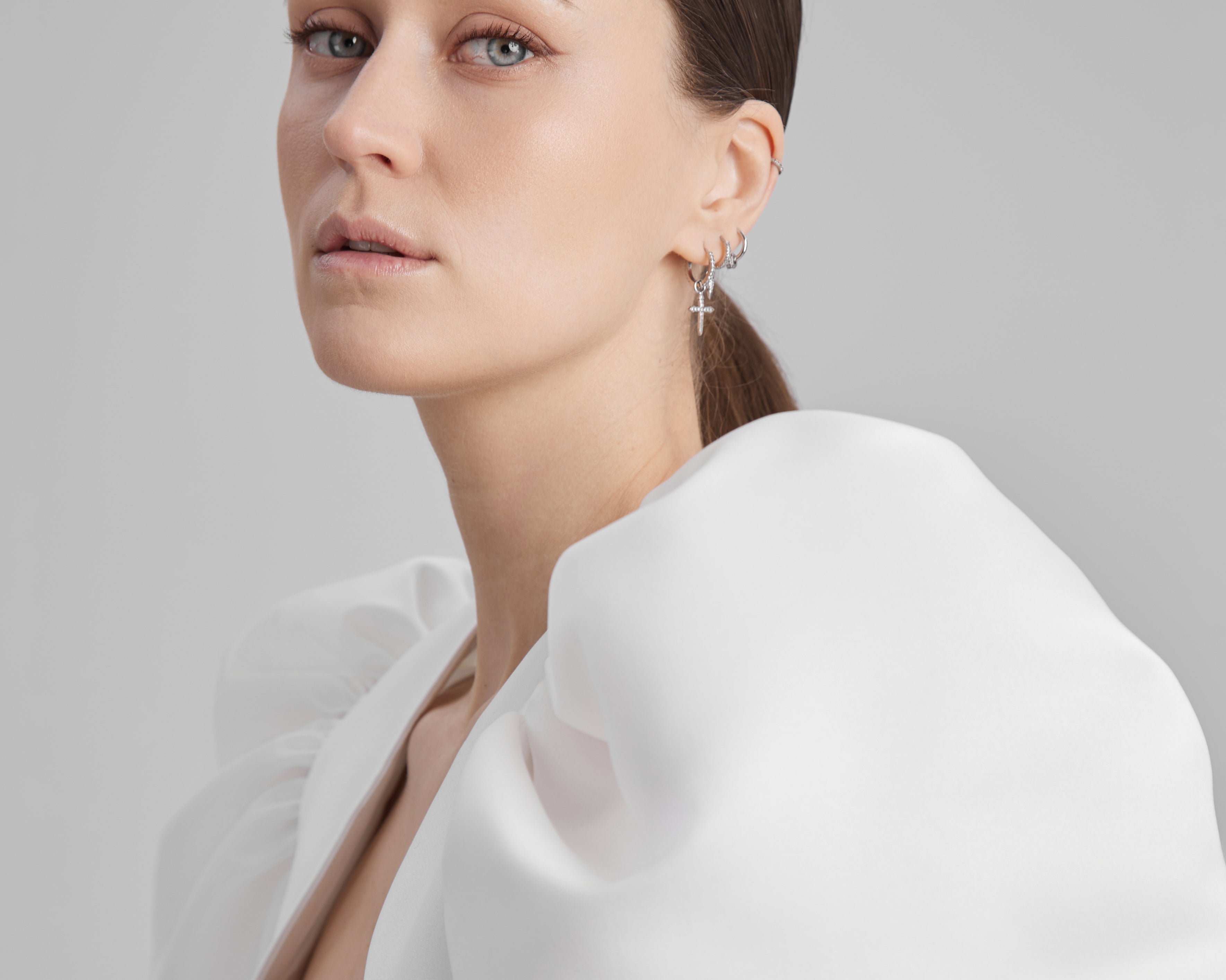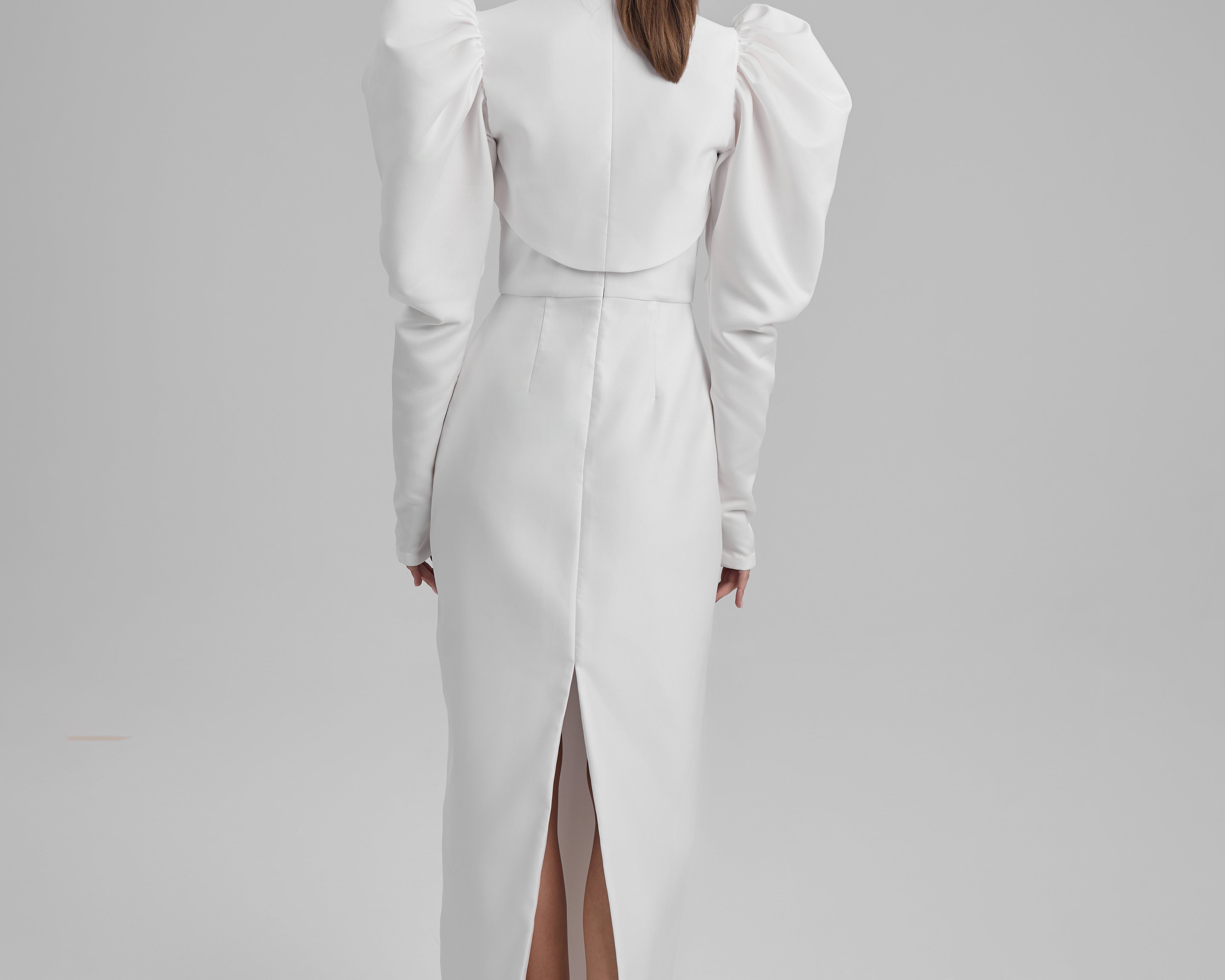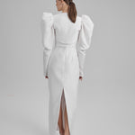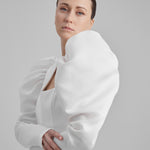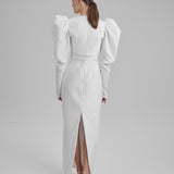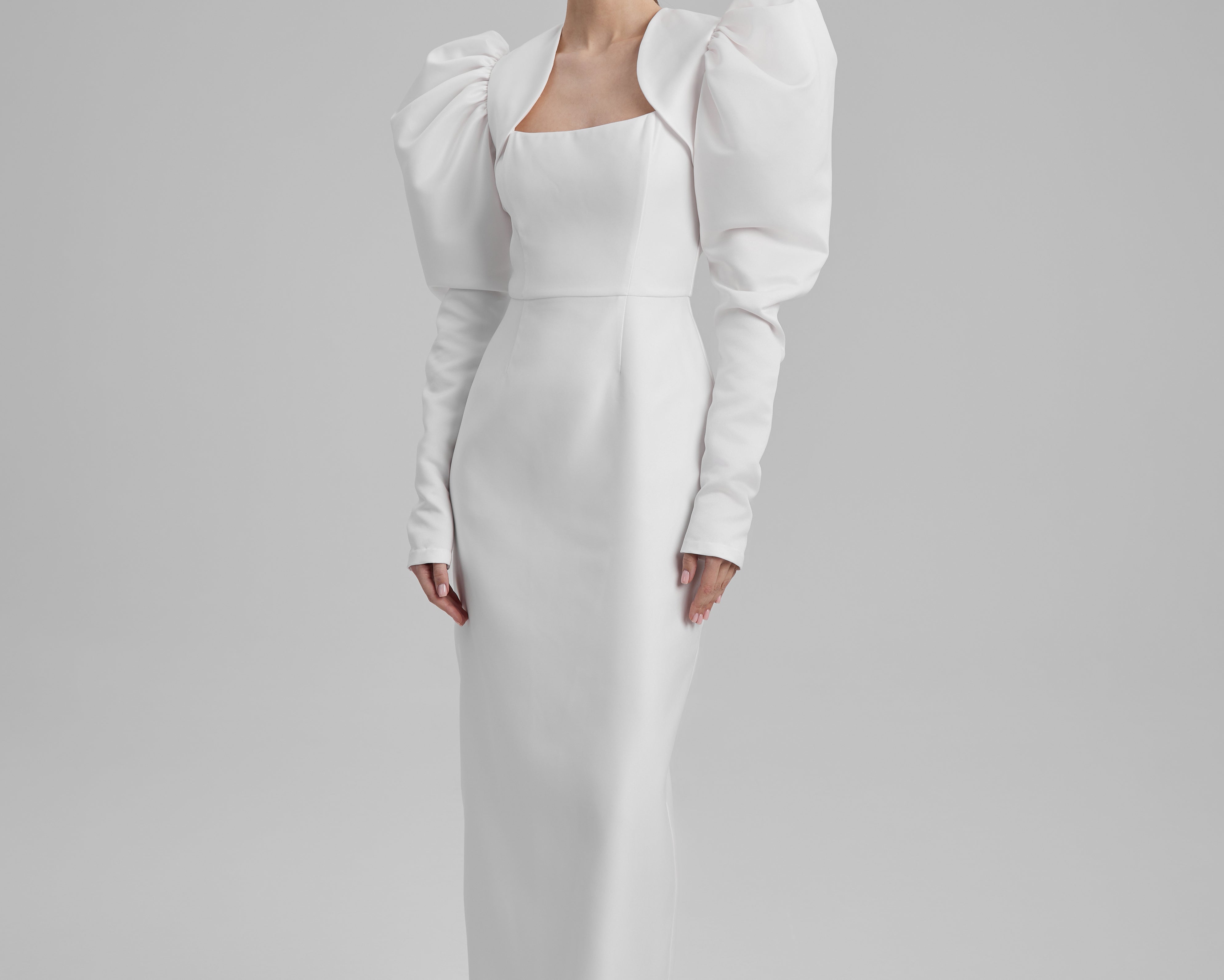 IDA DRESS + PUFFED SLEEVE BOLERO | square neckline pencil maxi in white