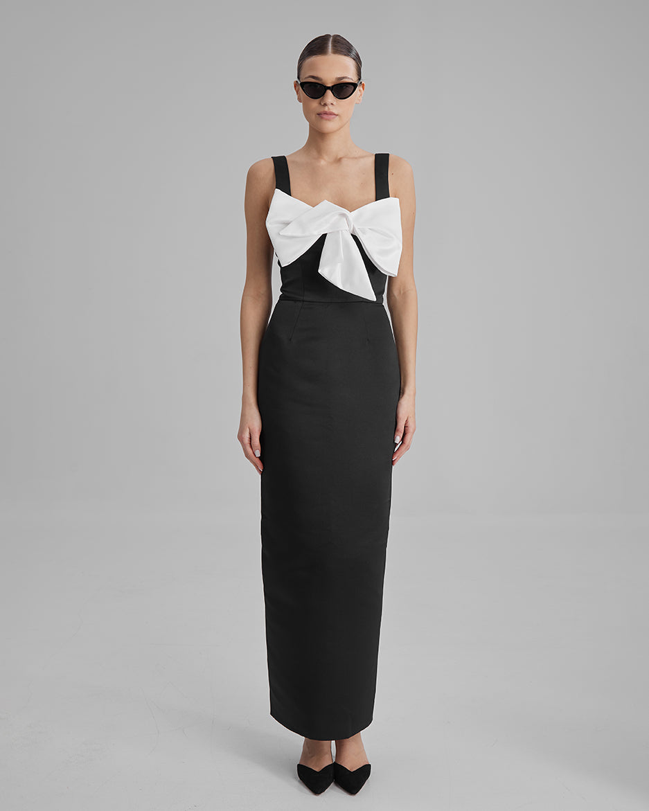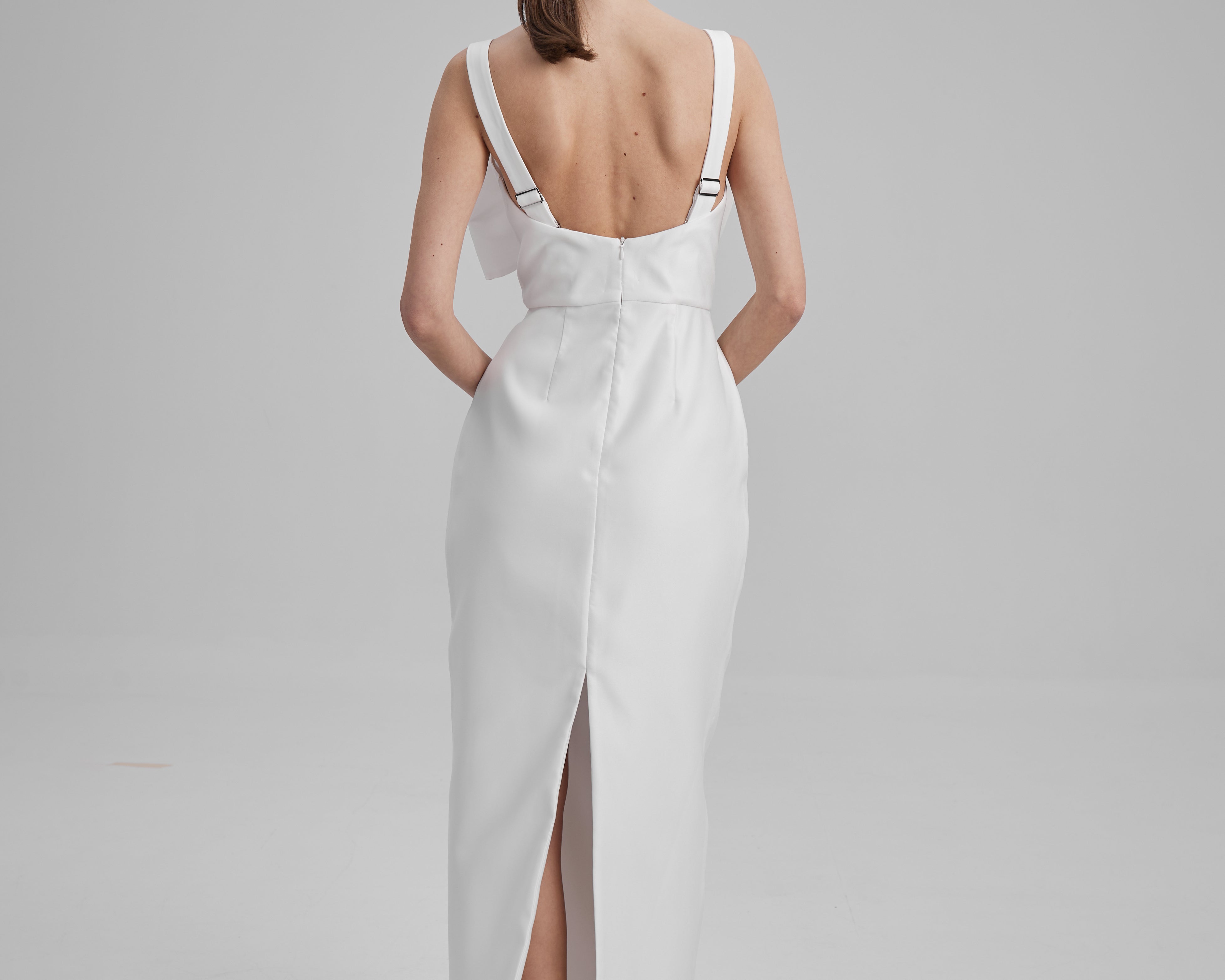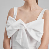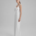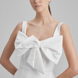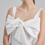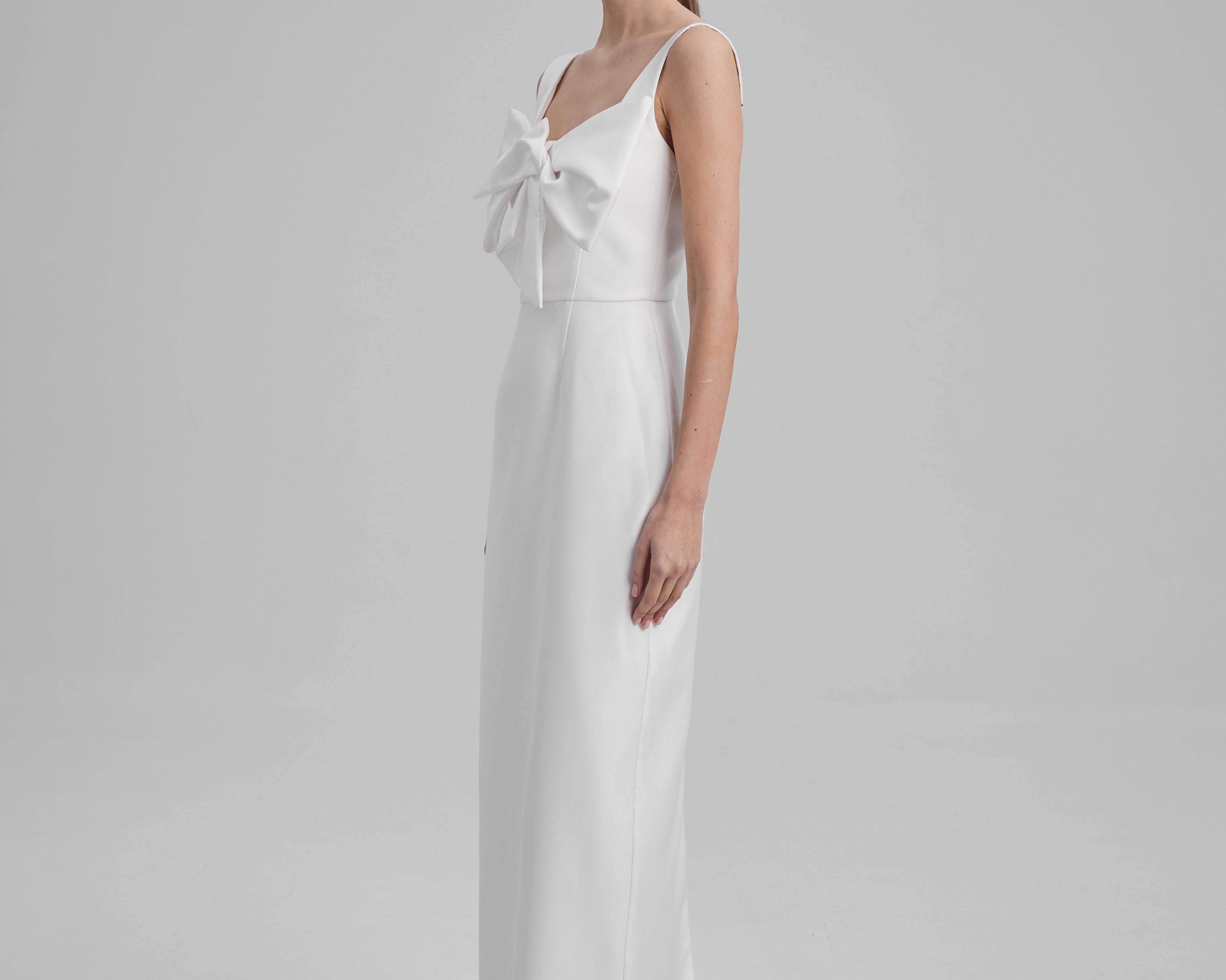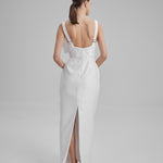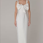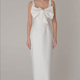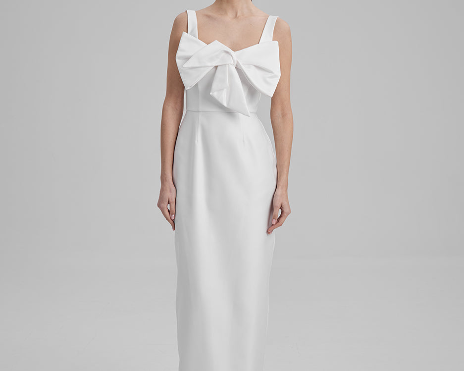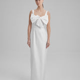 IDA DRESS + SMALL BOW | square neckline pencil maxi in white