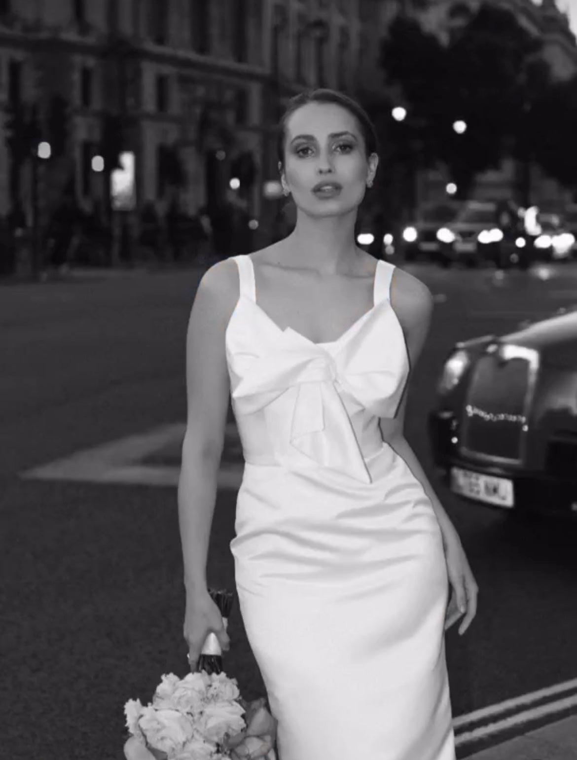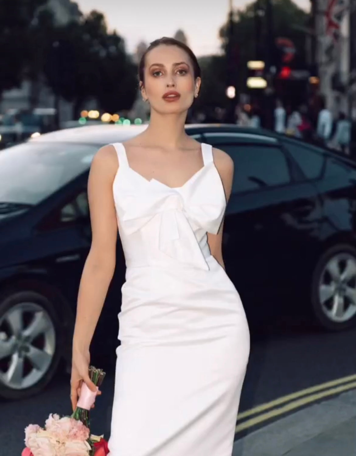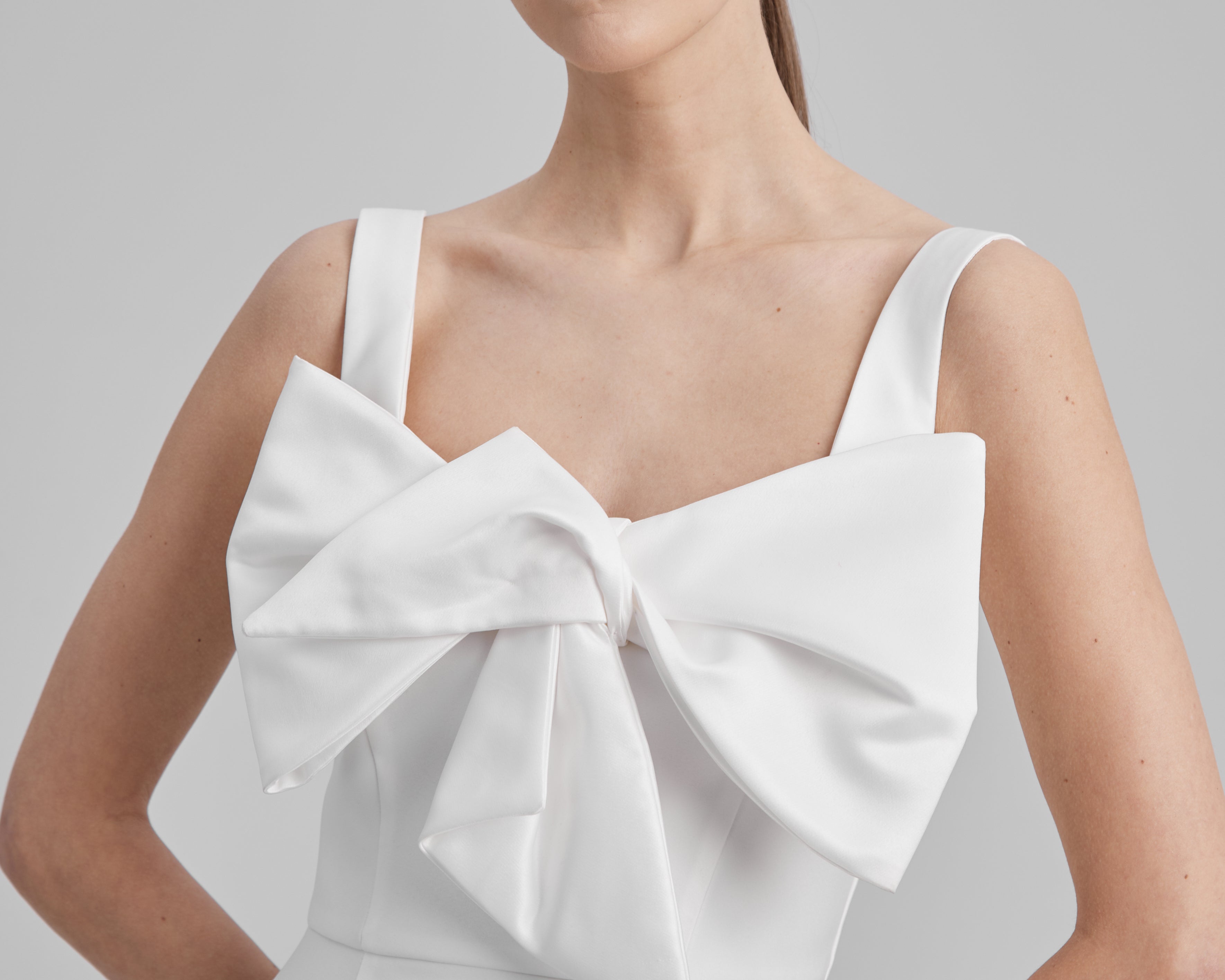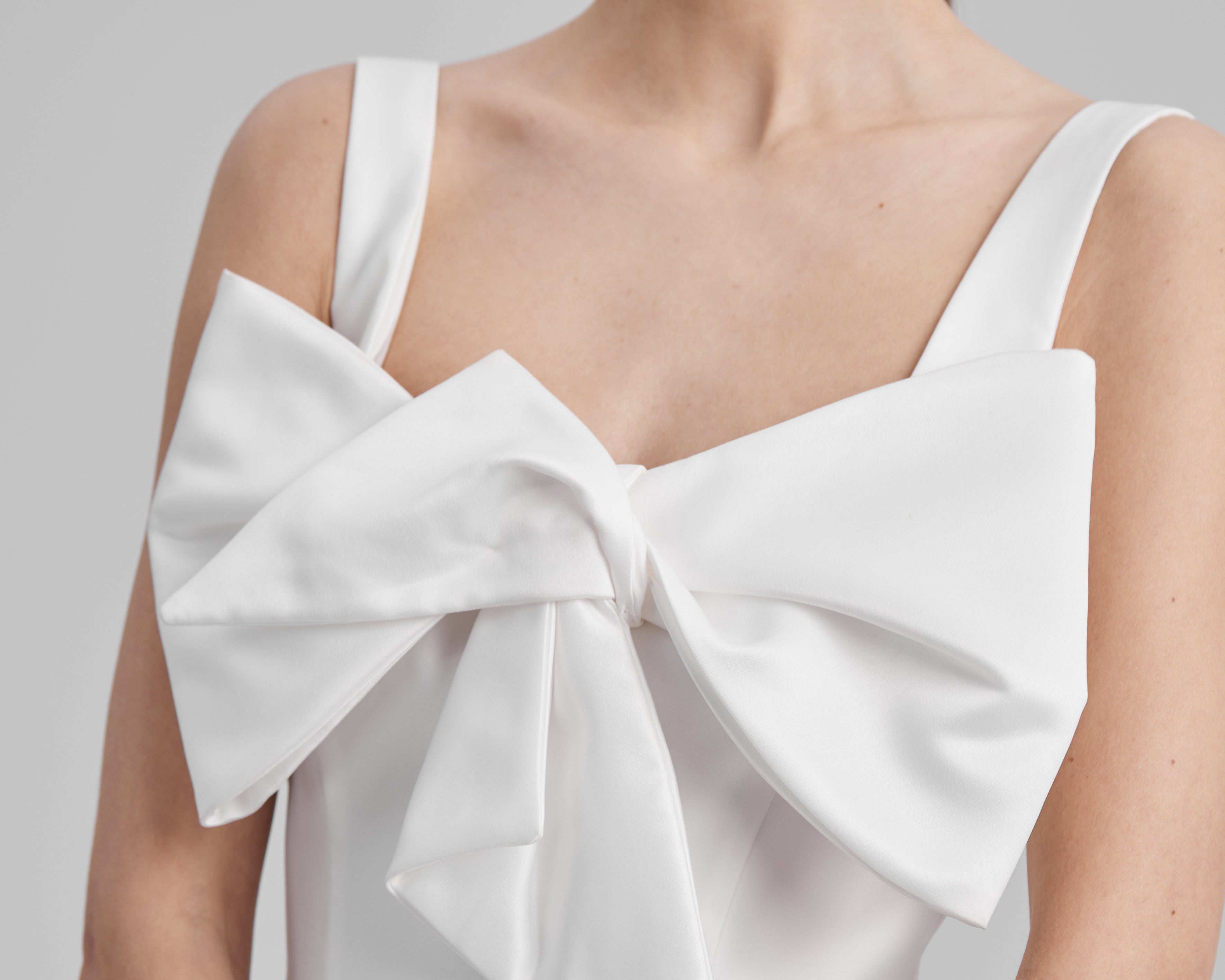 IDA DRESS + SMALL BOW | square neckline pencil maxi in white