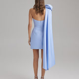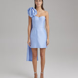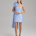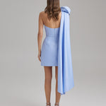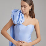 JUNO DRESS + ROSE CAPE BOW | strapless mini in frozen blue
