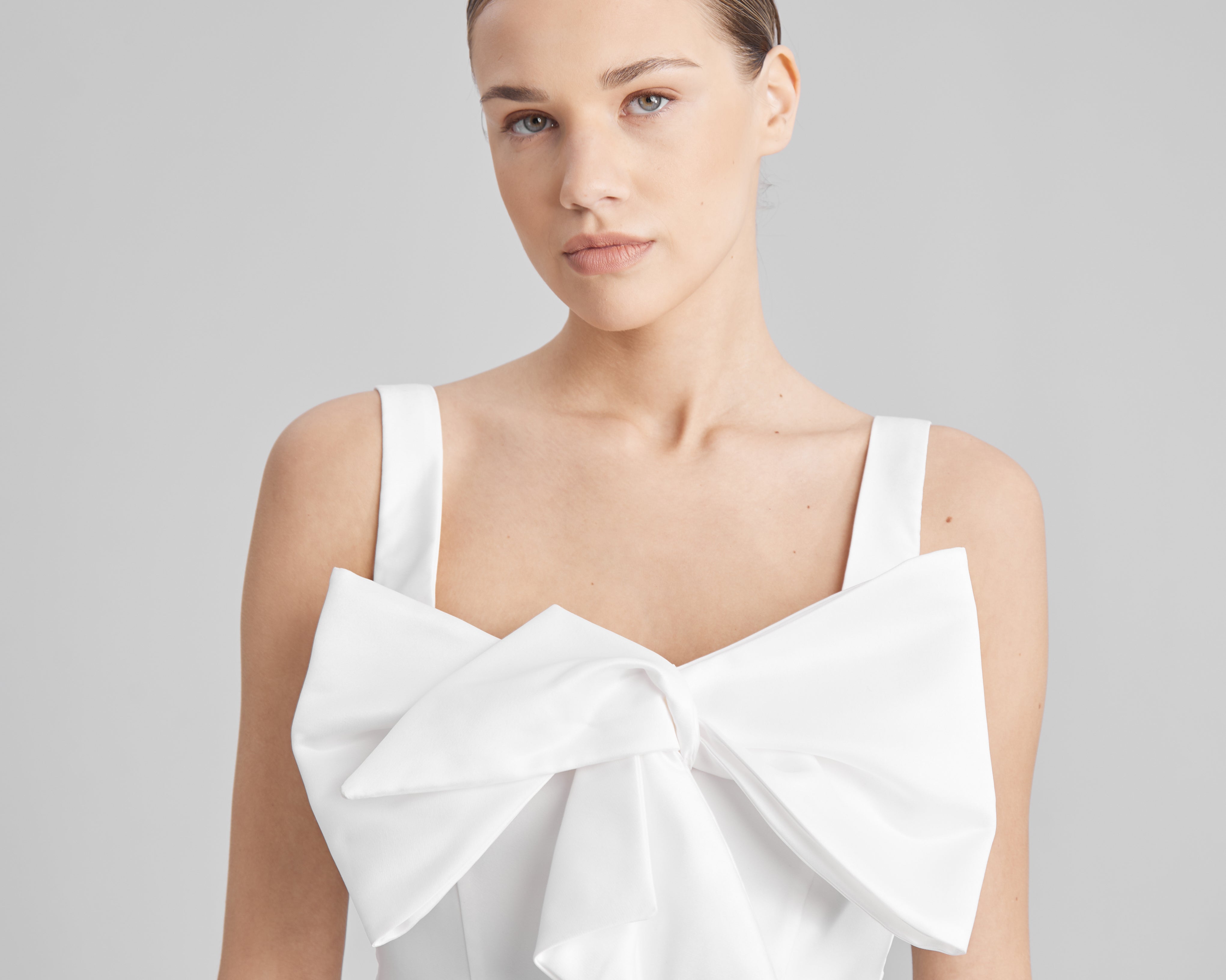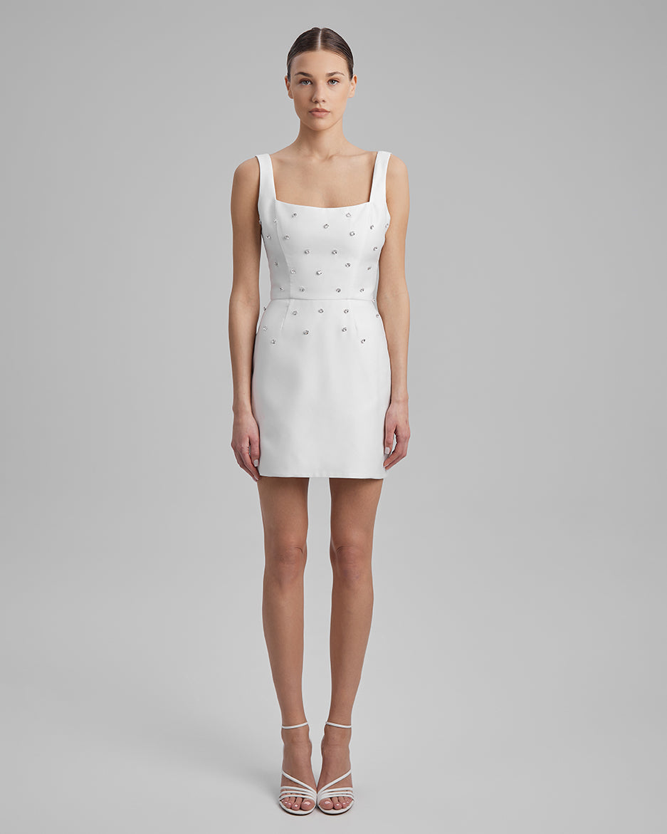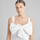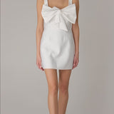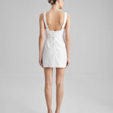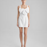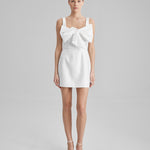 LUNA DRESS + SMALL BOW | square neckline mini in white
