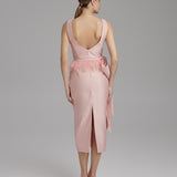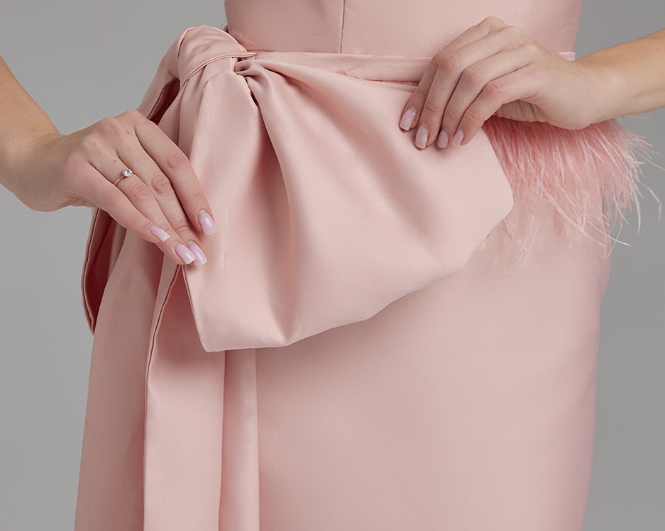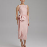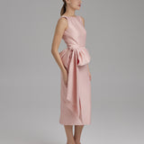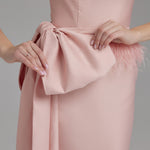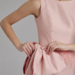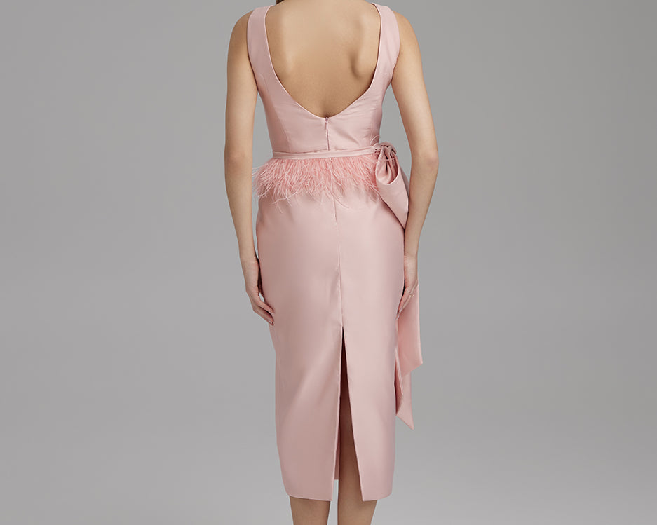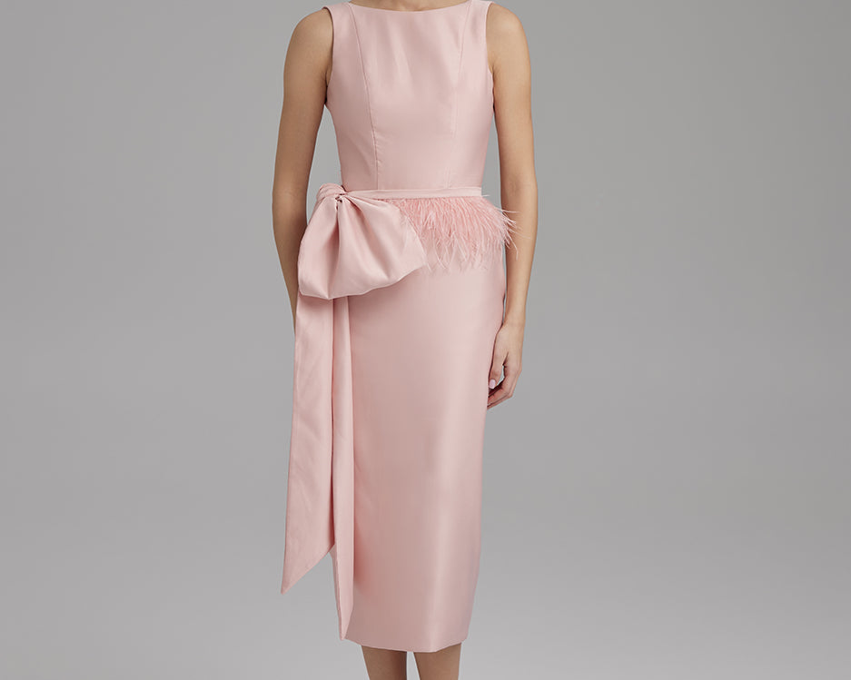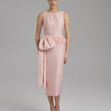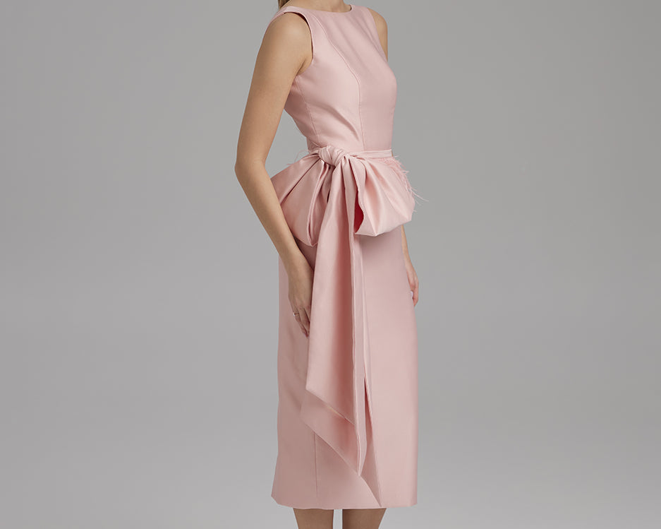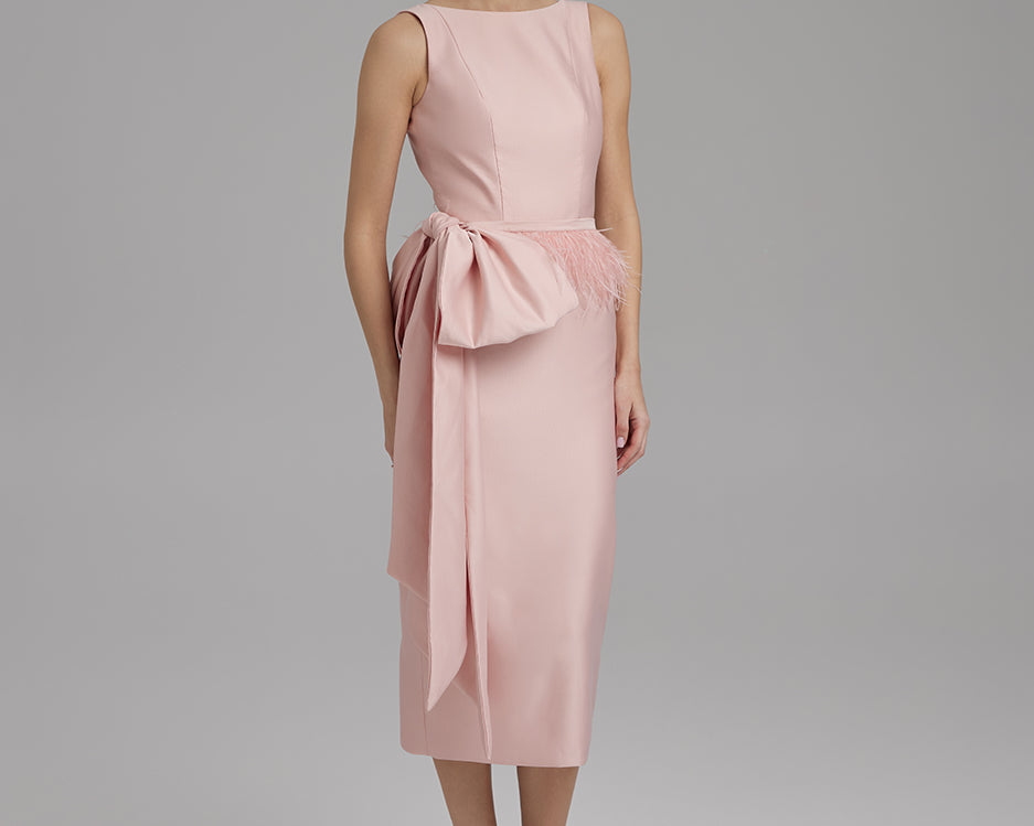 NYLA DRESS + BELT BOW WITH FEATHERS | boat neck midi in powder pink