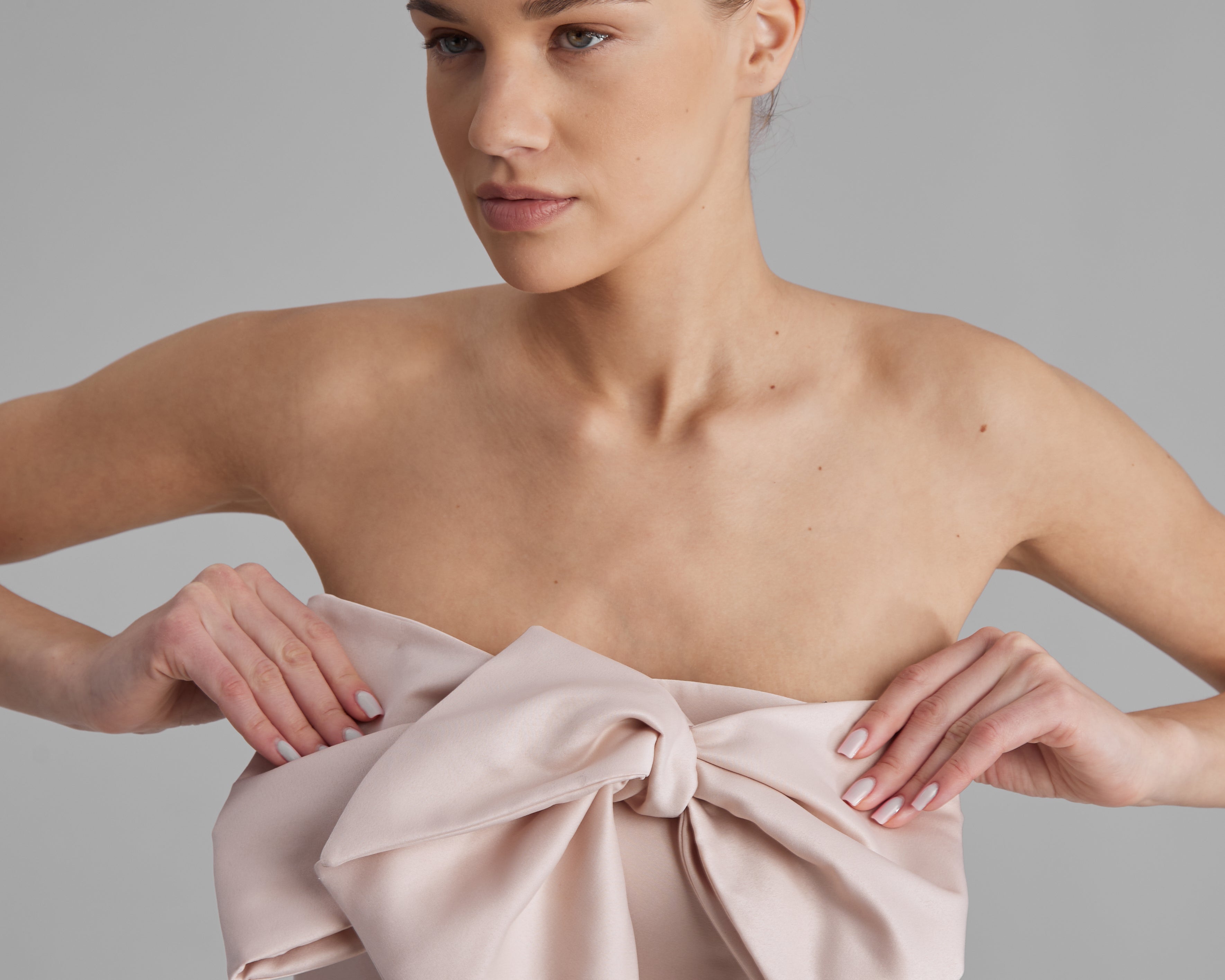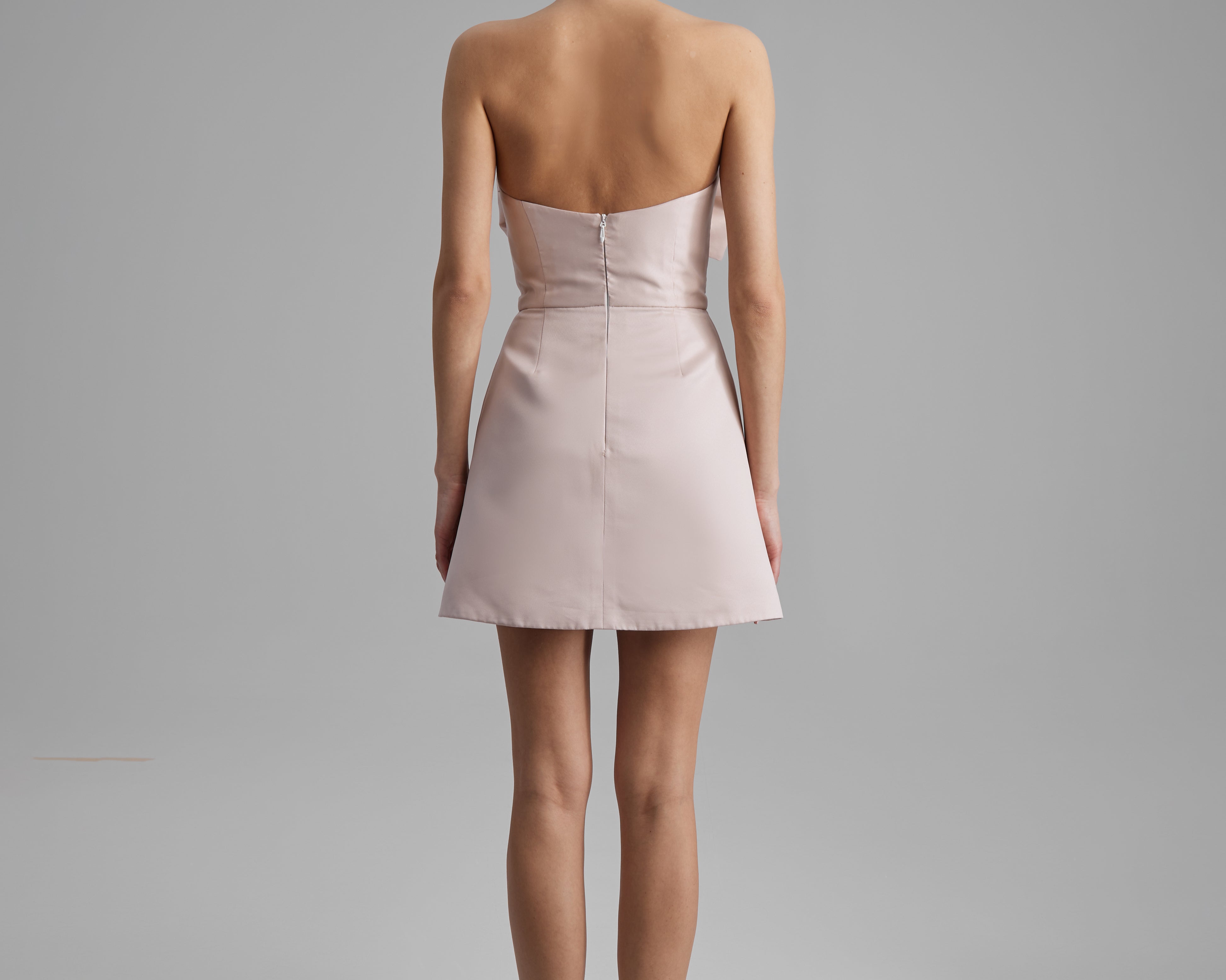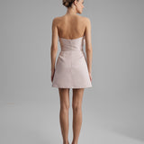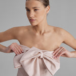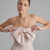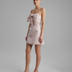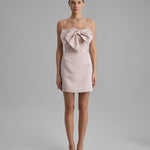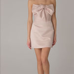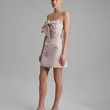 REY DRESS + SMALL BOW | strapless mini in apricot pink