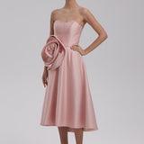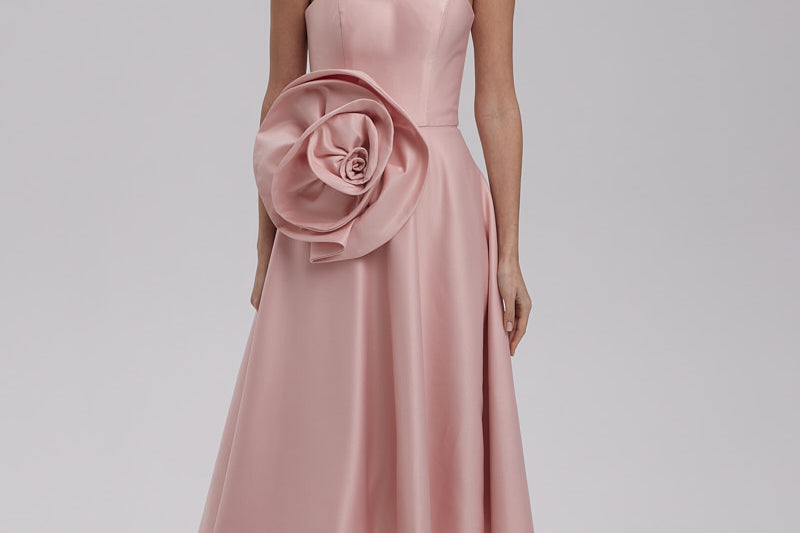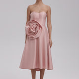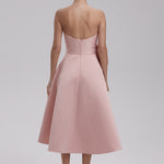 SABINE DRESS + CAMELIA BROCH | heart neckline midi in powder pink