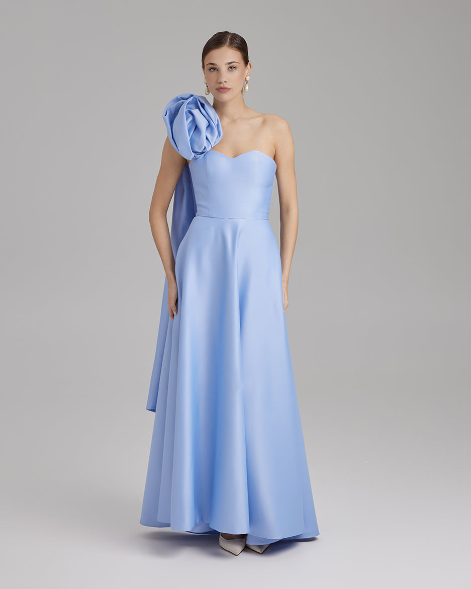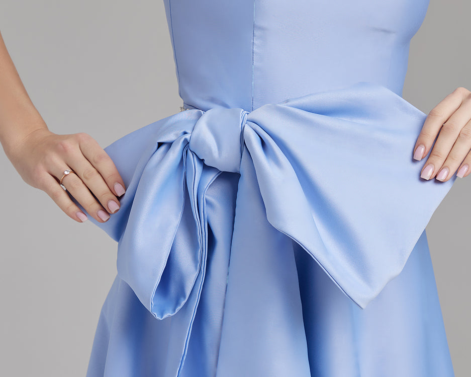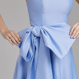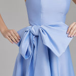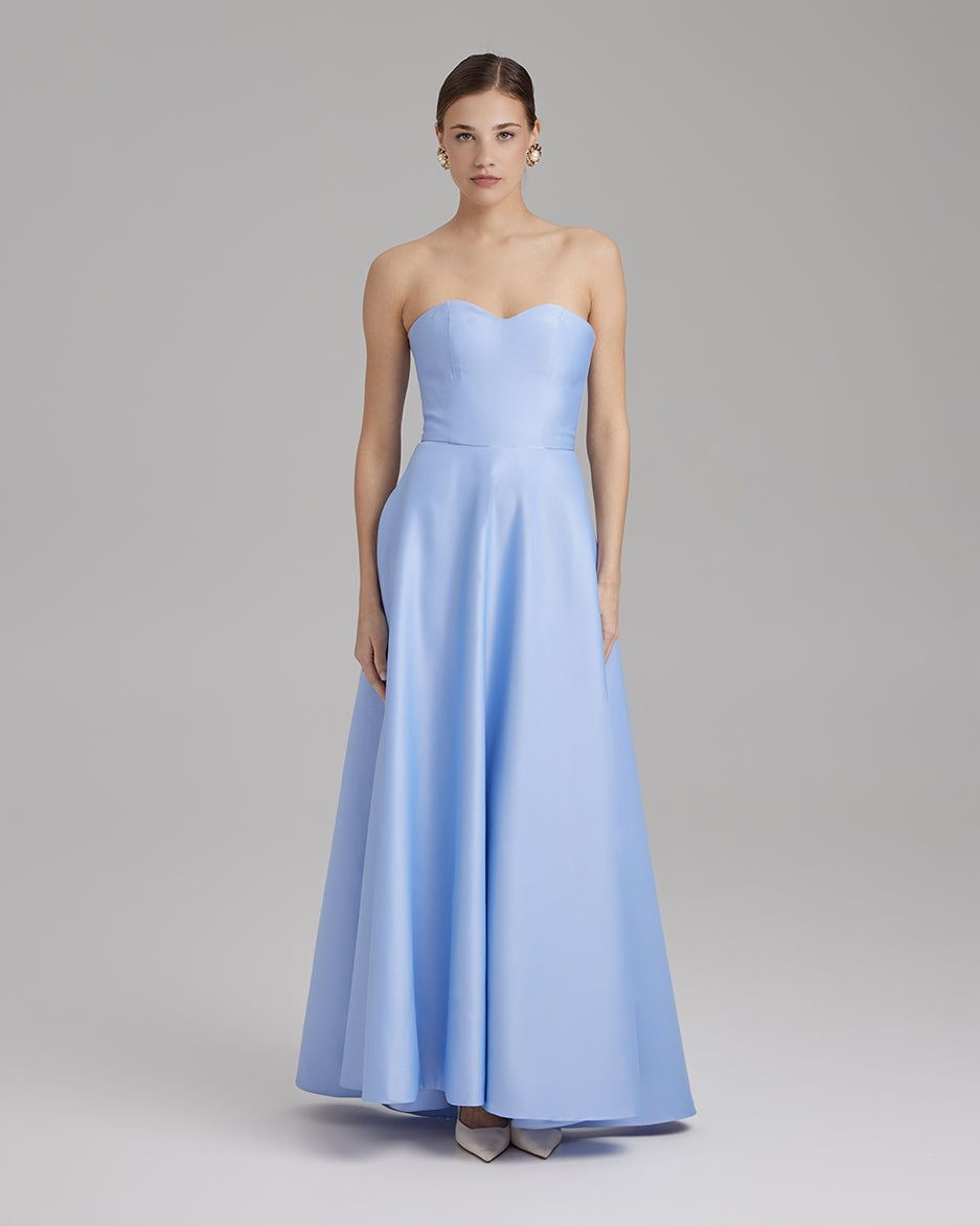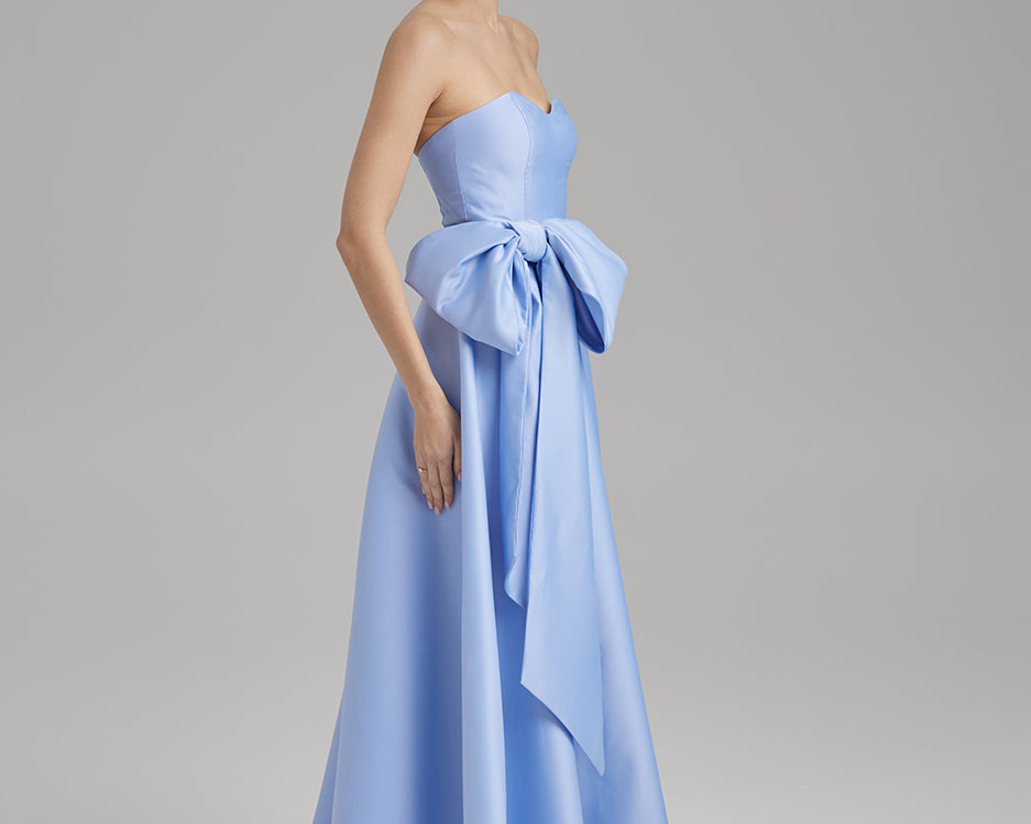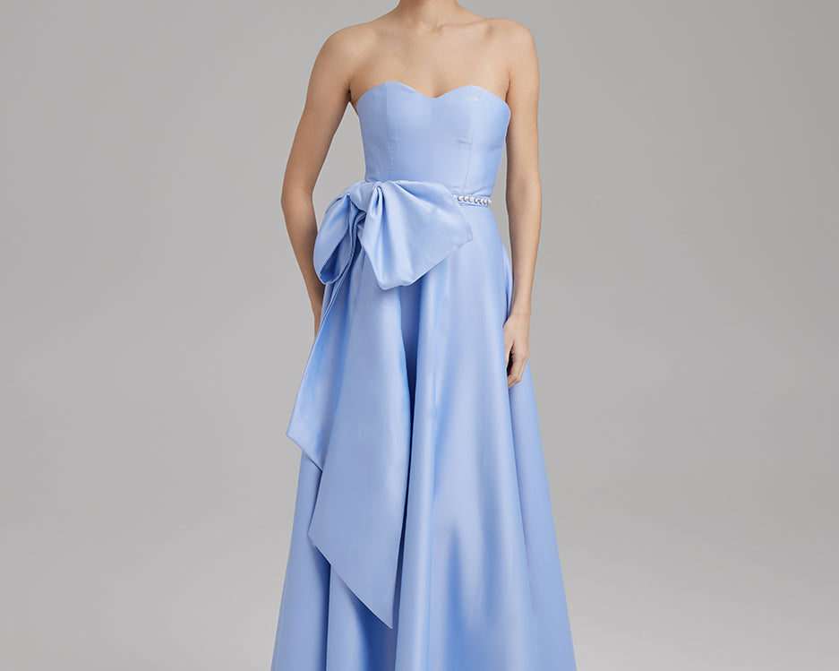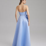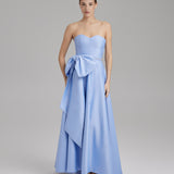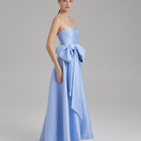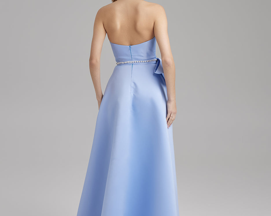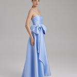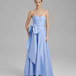 SALVIA DRESS + BELT BOW WITH DIAMONDS | strapless A line maxi dress in frozen blue