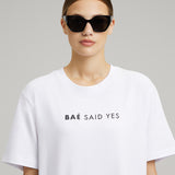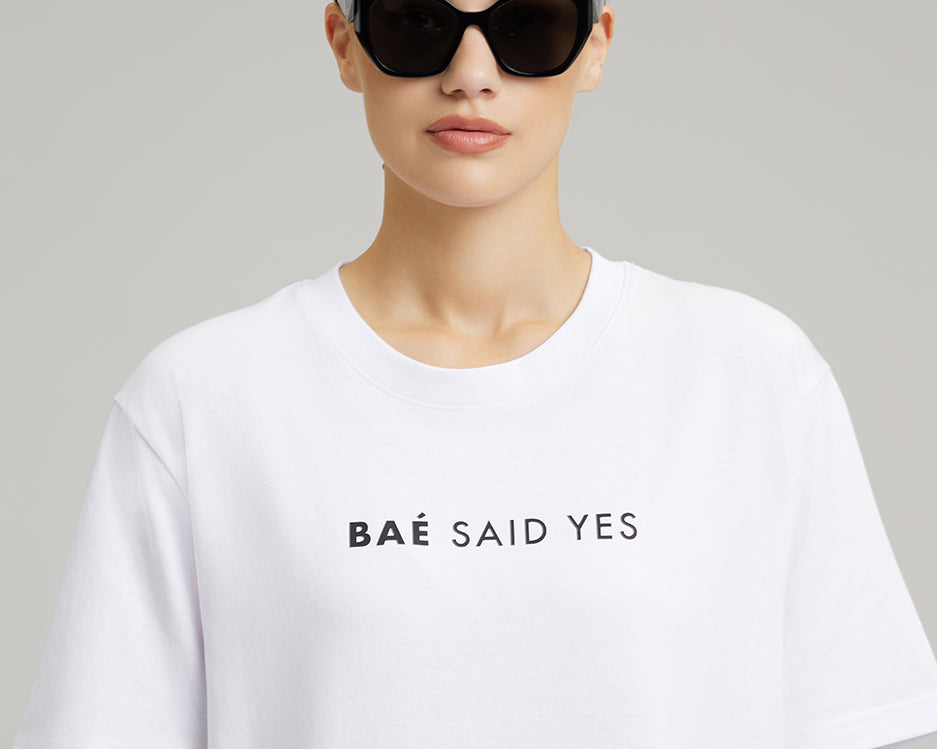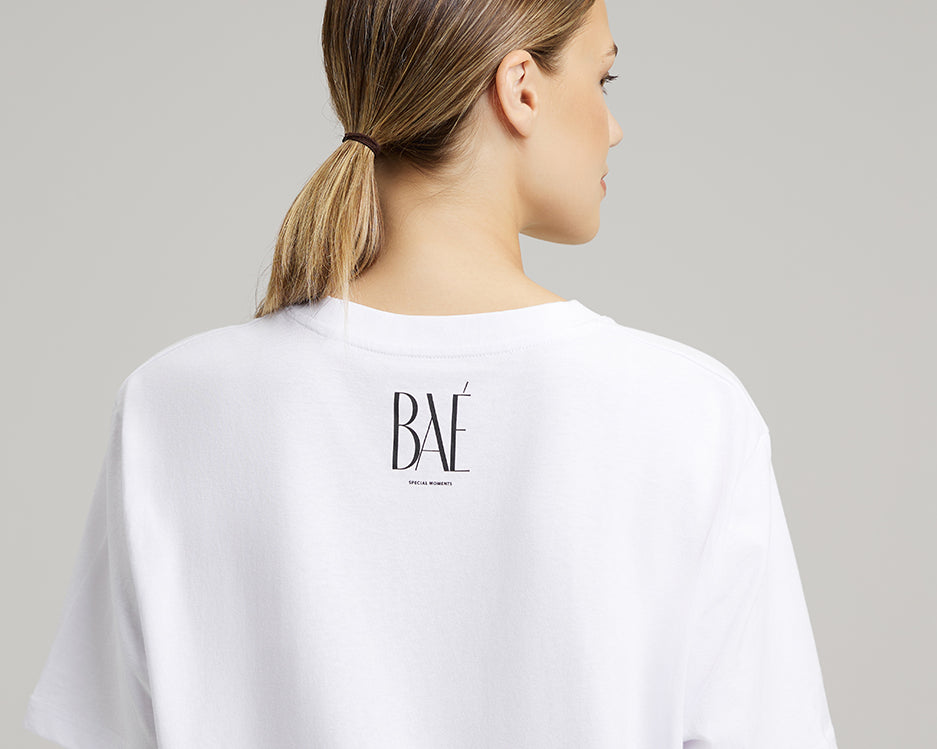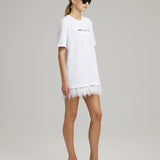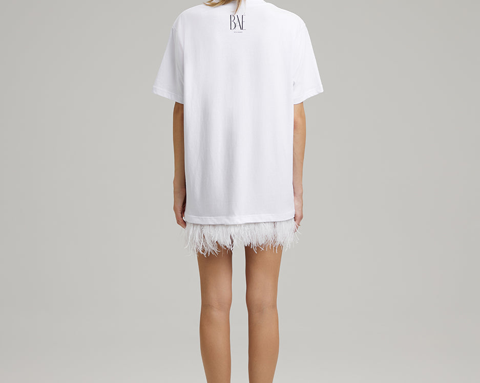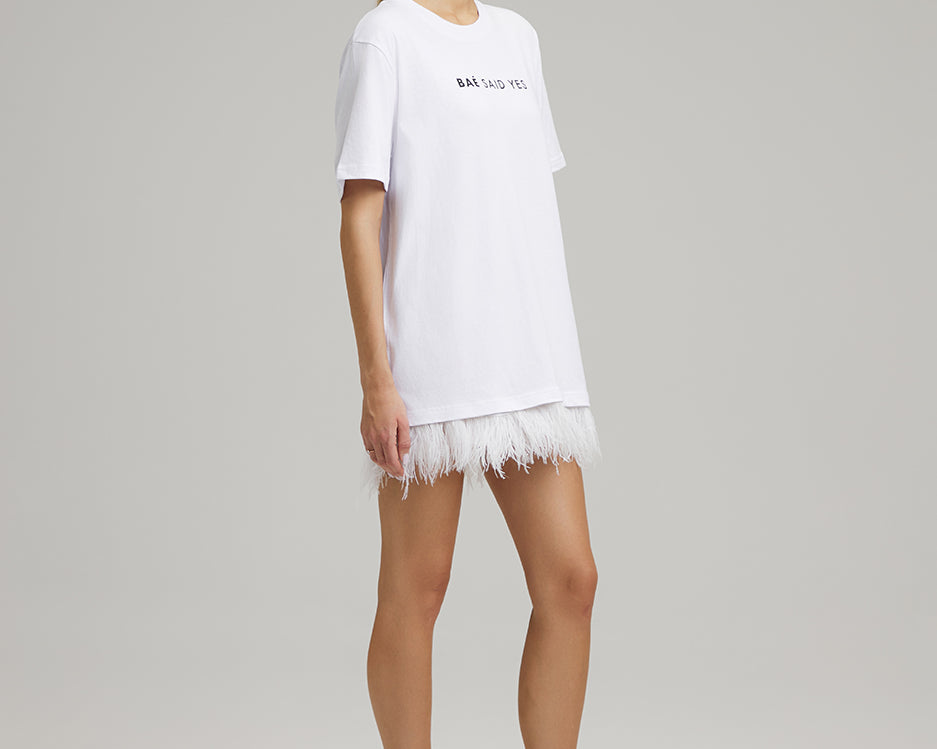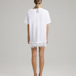 T-SHIRT DRESS WITH FEATHERS | BAÉ said yes in white