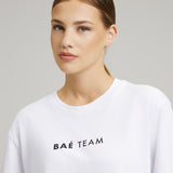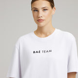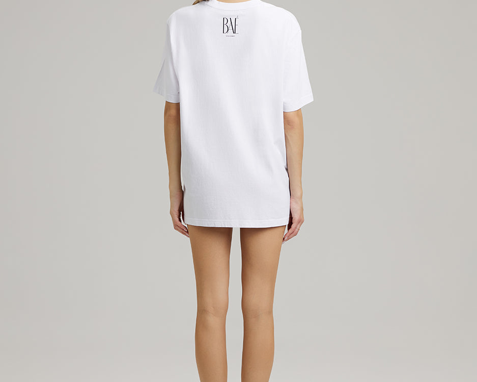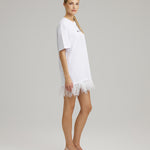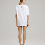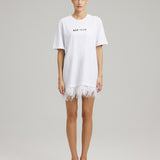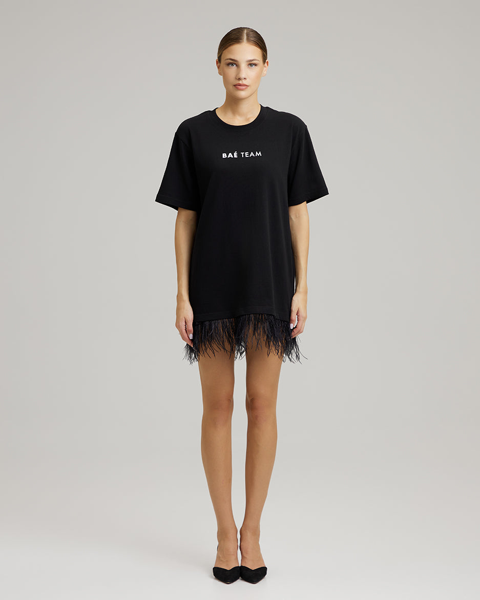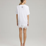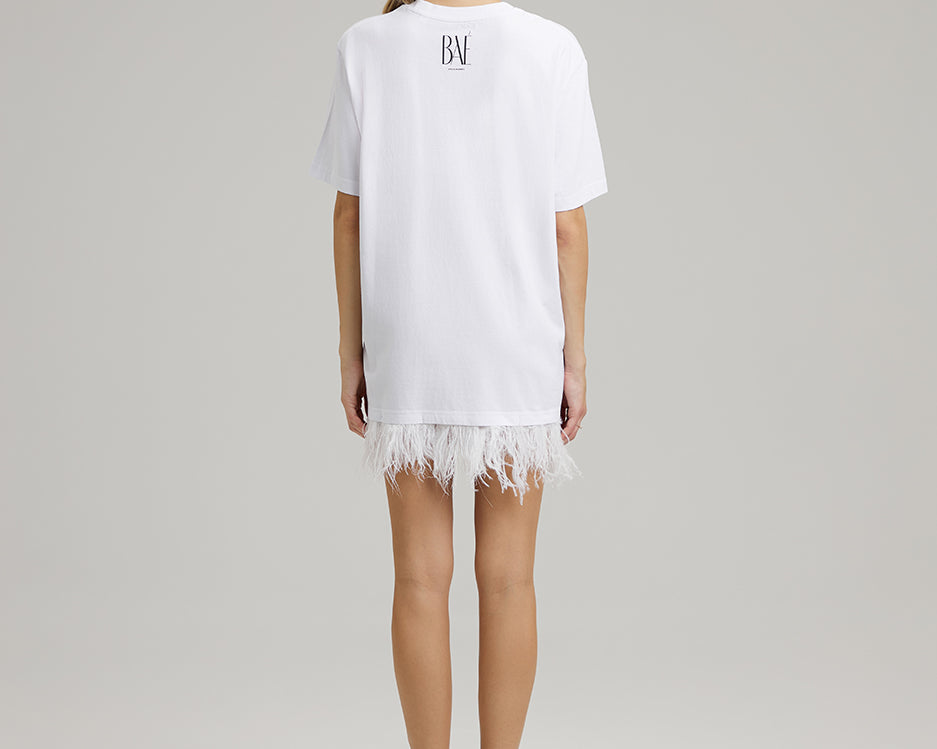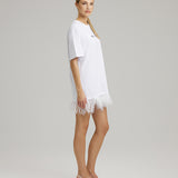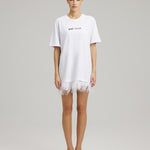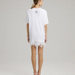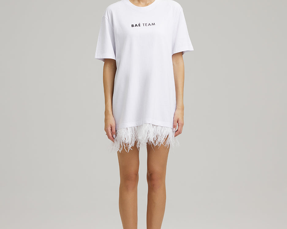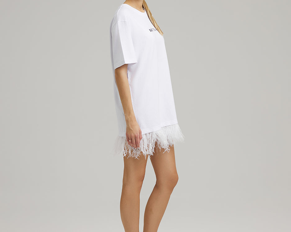 T-SHIRT DRESS WITH FEATHERS | BAÉ team in white