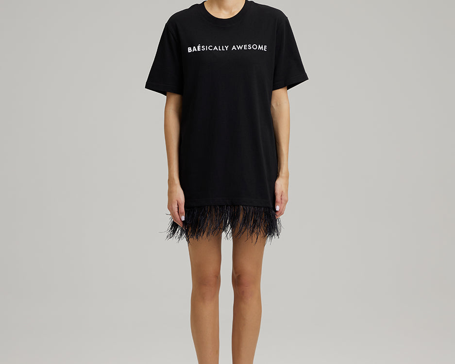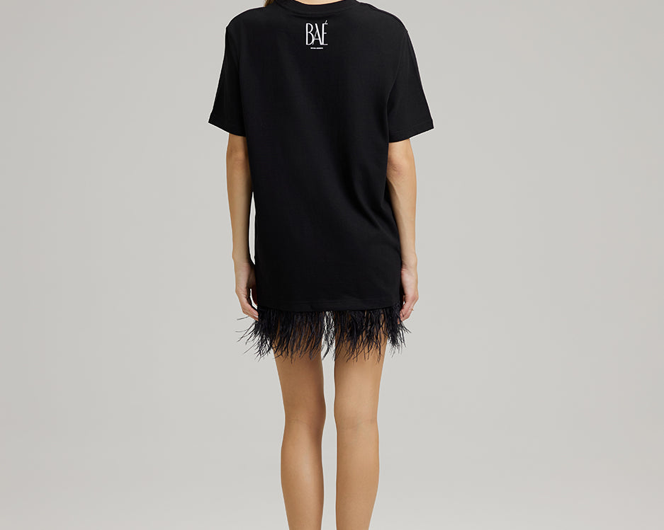T-SHIRT DRESS WITH FEATHERS | BAÉsically awesome in black