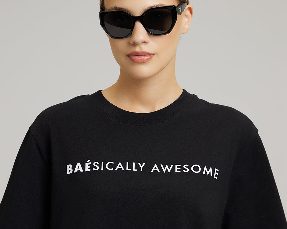 • BASIC FIT: Oversized with a round neck and drop shoulder