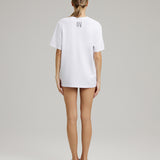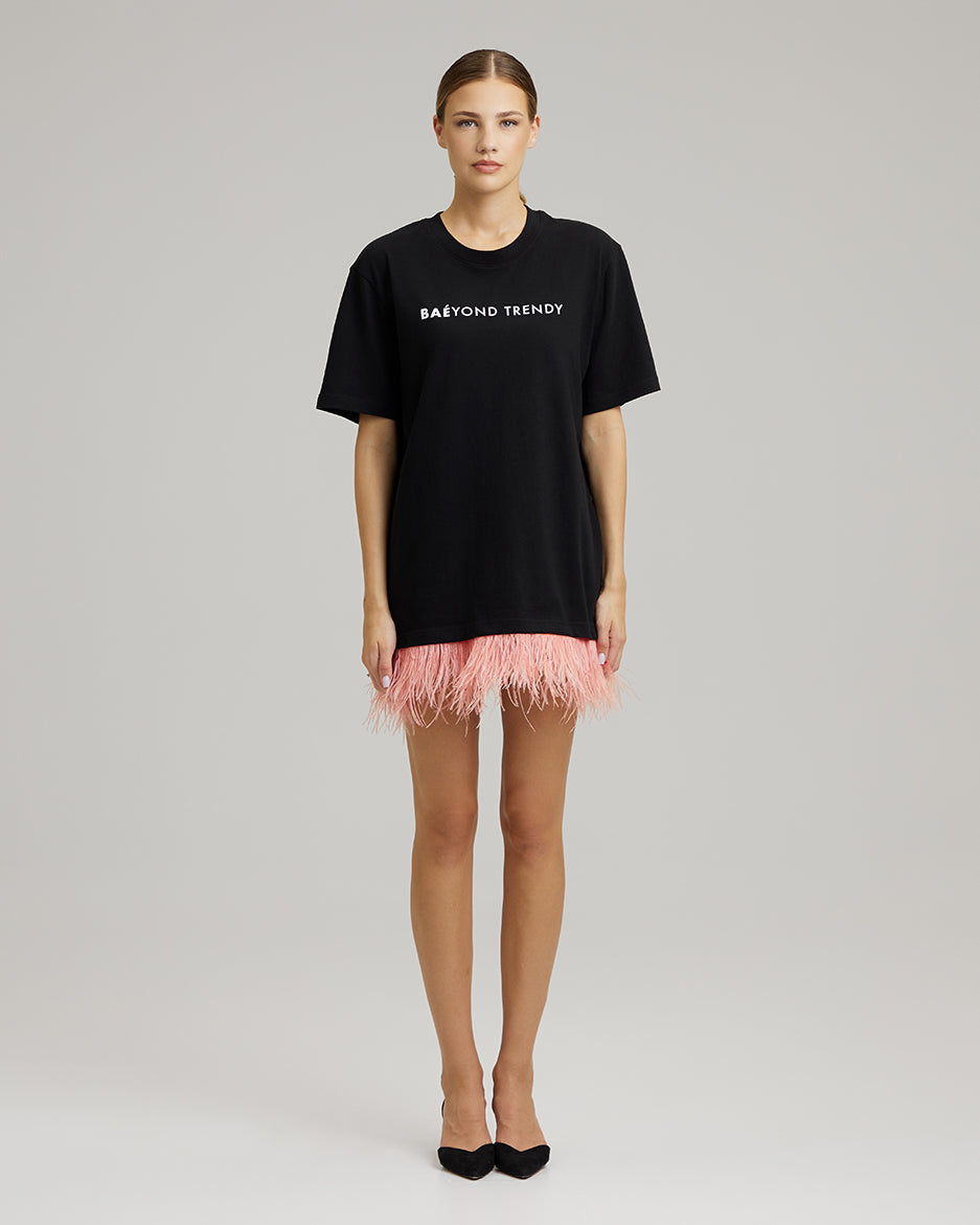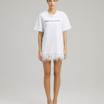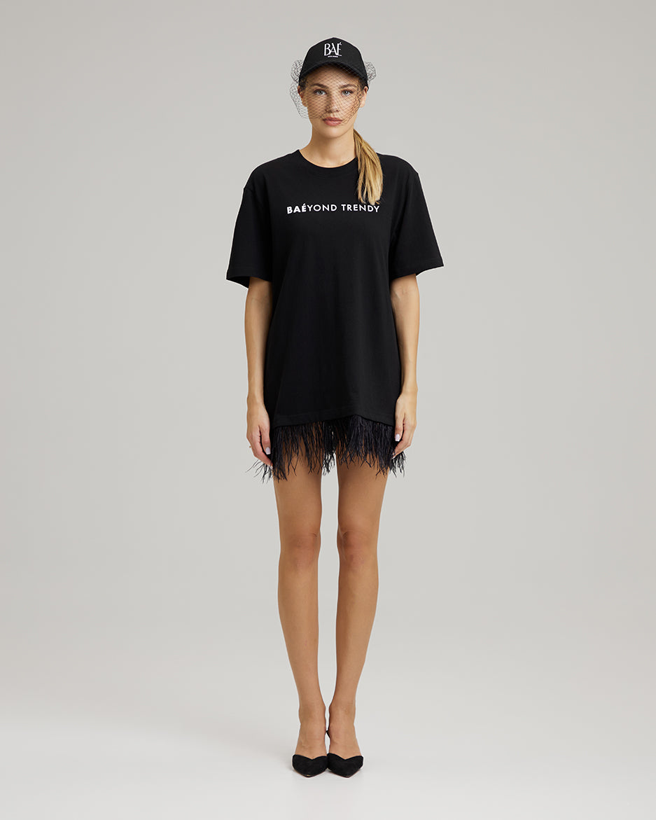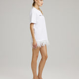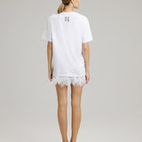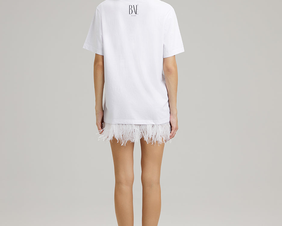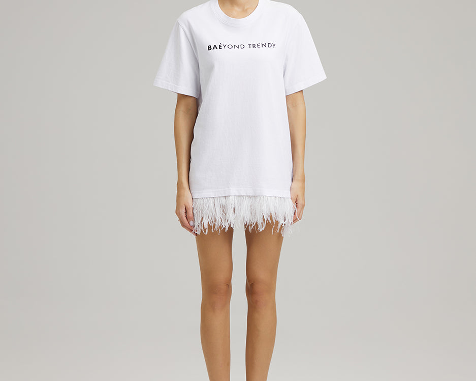 T-SHIRT DRESS WITH FEATHERS | BAÉyond trendy in white