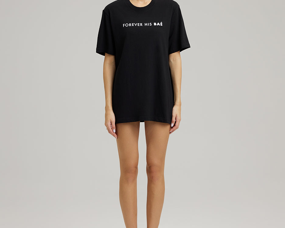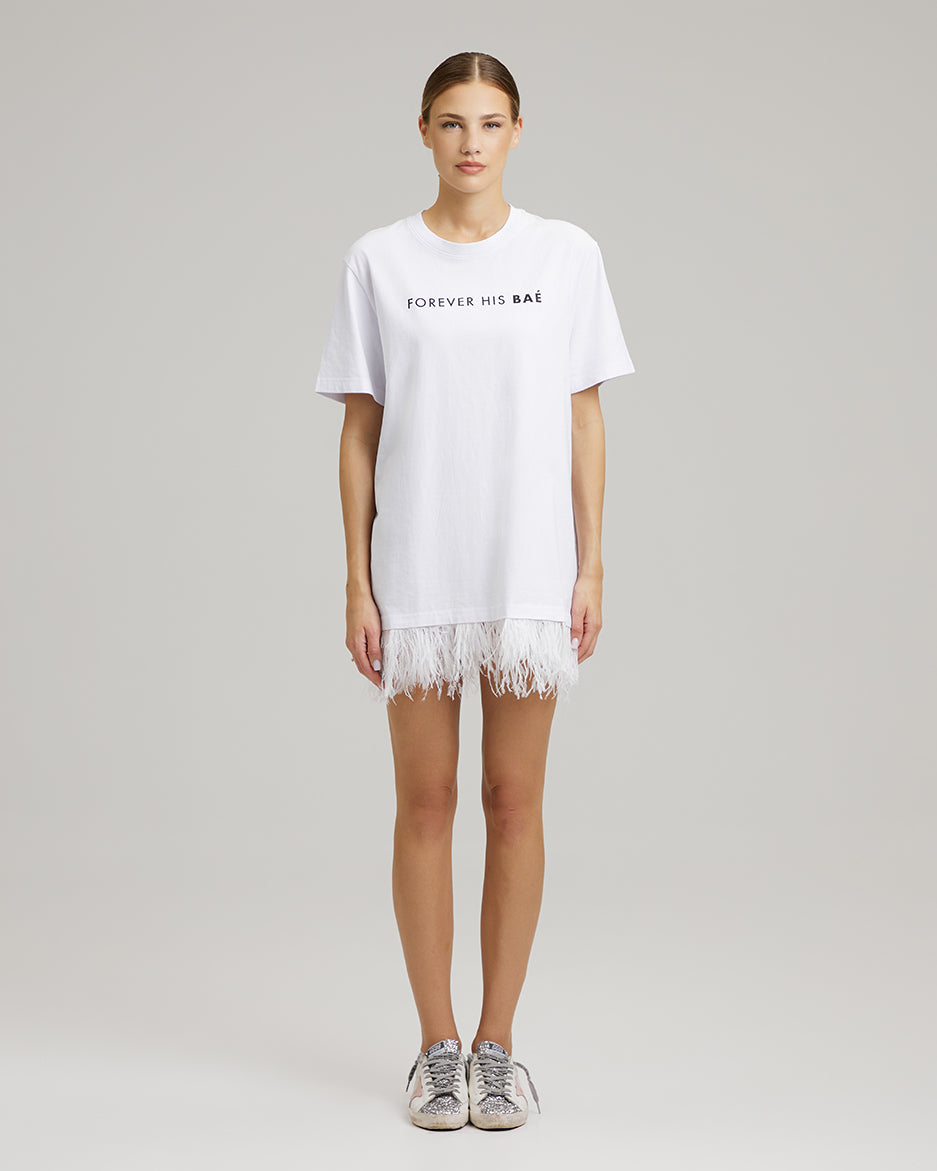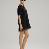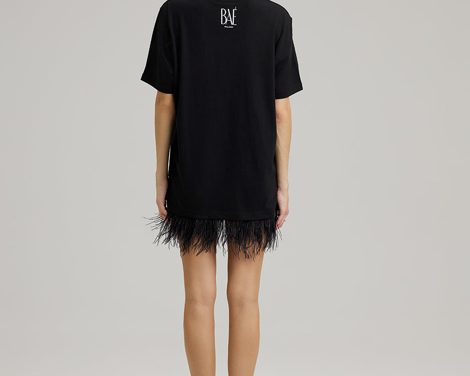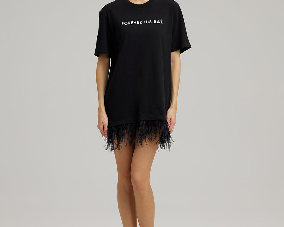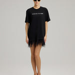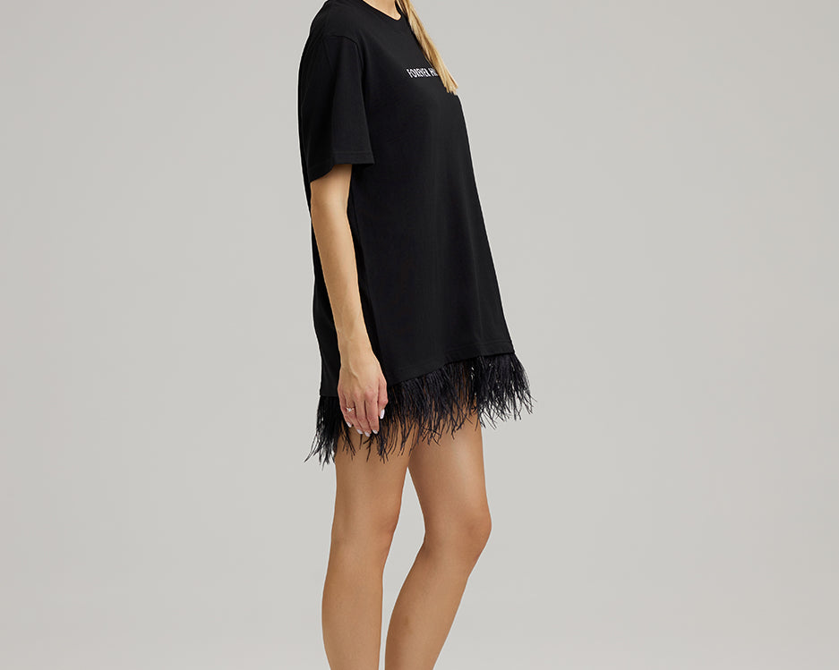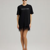 T-SHIRT DRESS WITH FEATHERS | forever his BAÉ in black