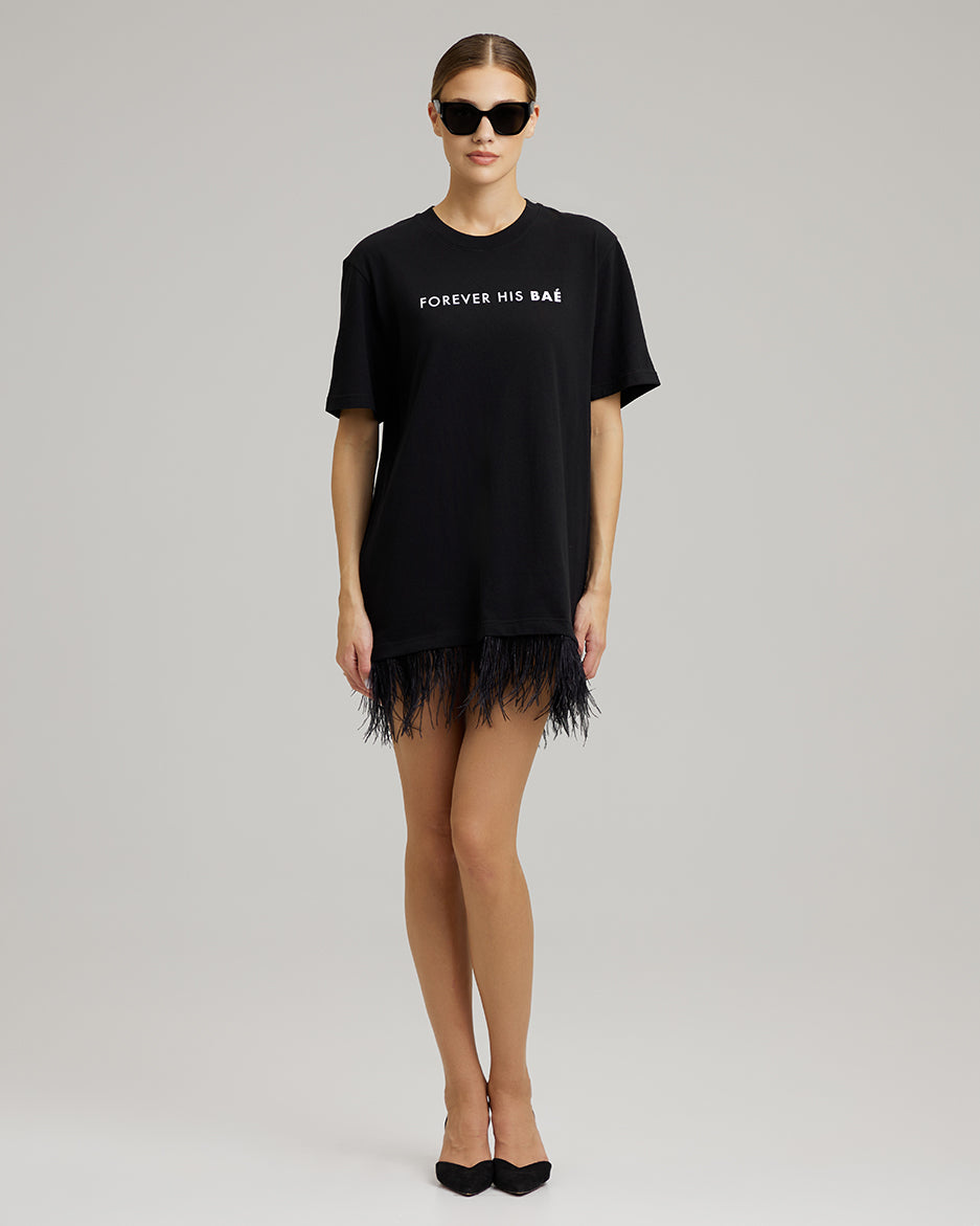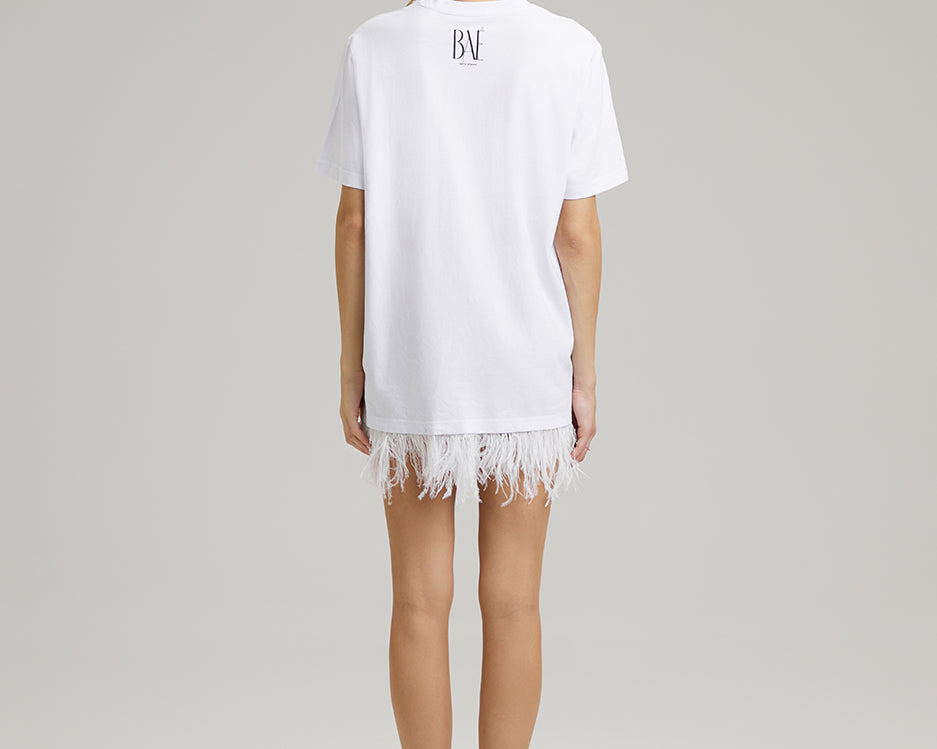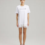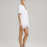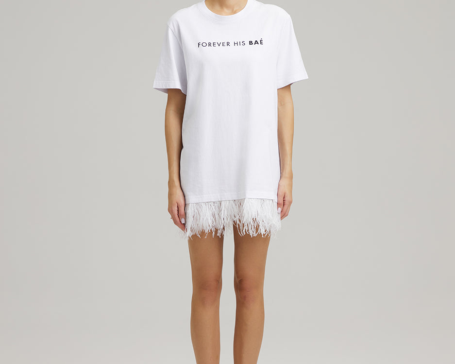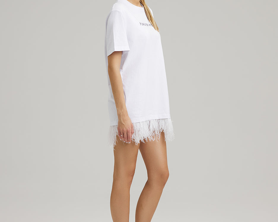 T-SHIRT DRESS WITH FEATHERS | forever his BAÉ in white