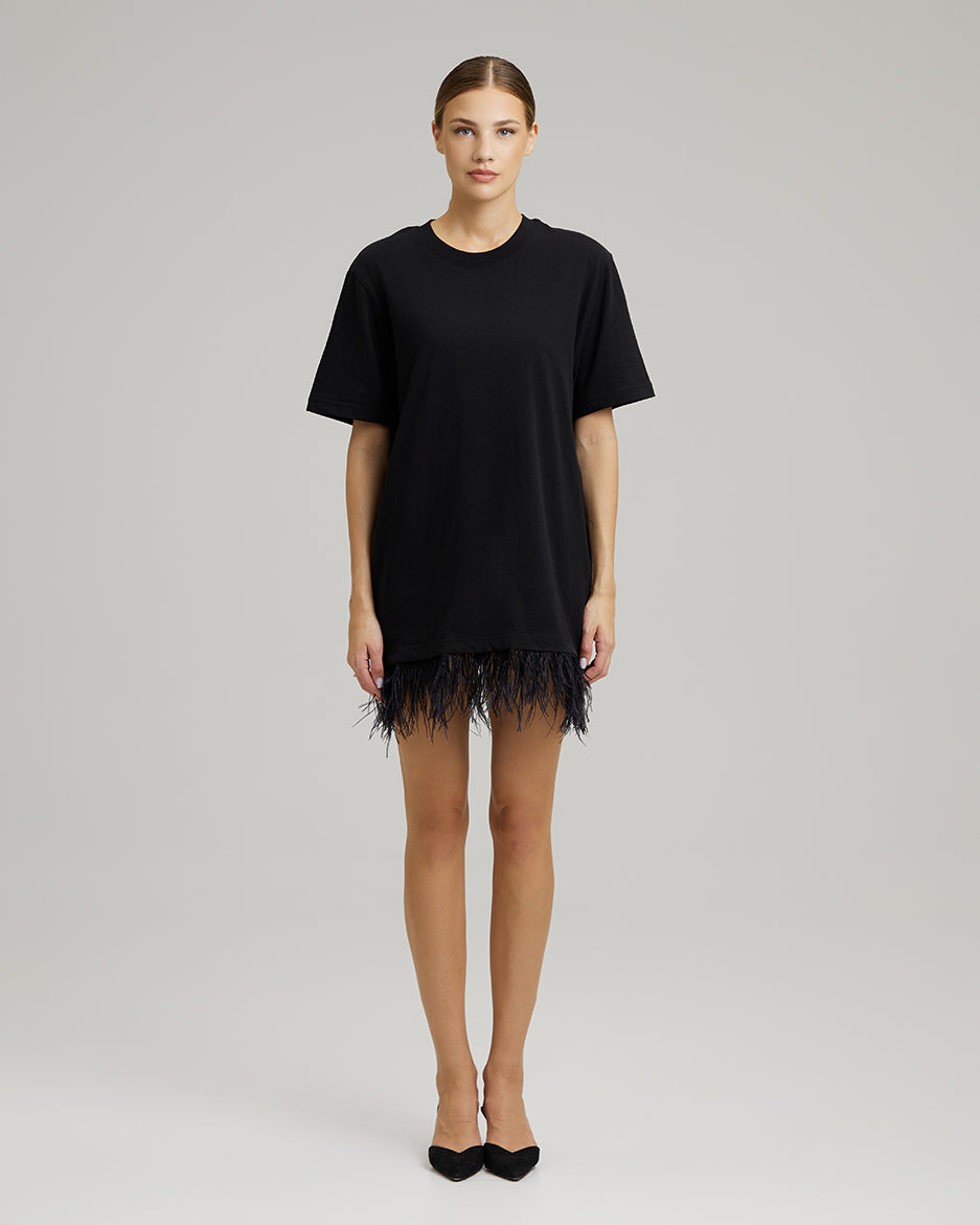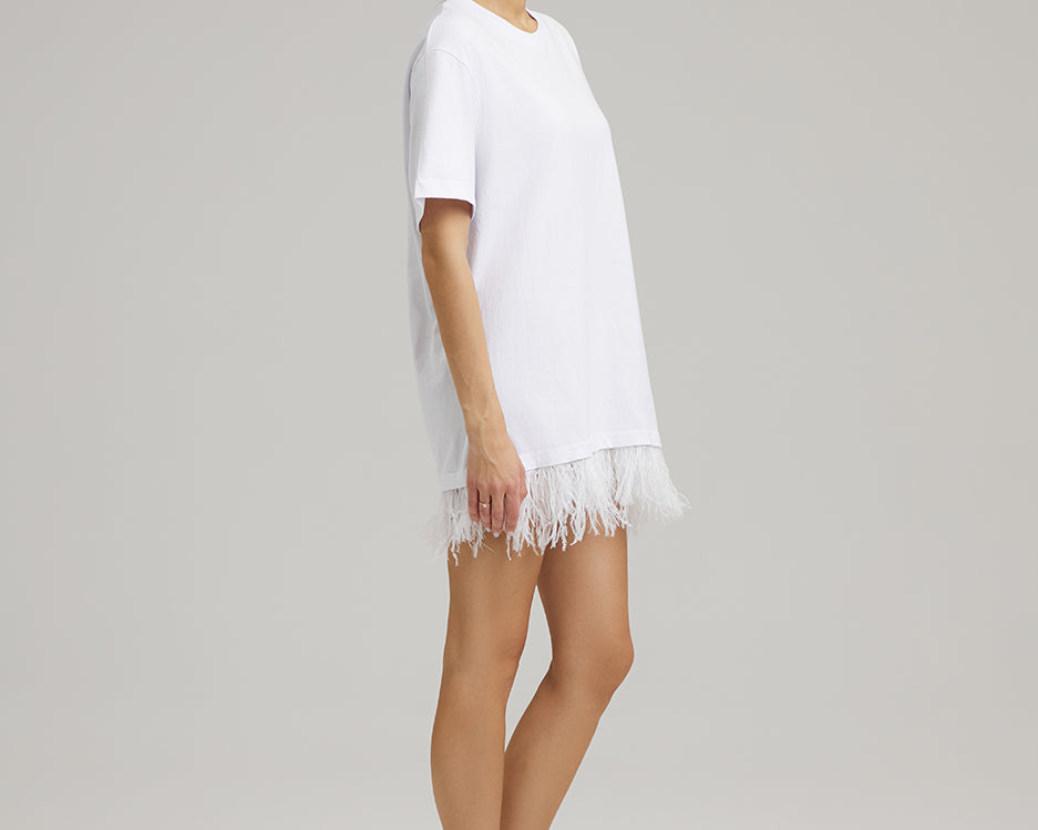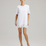 Crafted from a high-quality blend of 94% cotton and 6% elastane, this comfortable t-shirt dress ensures a perfect fit that moves with you. The breathable cotton fabric keeps you cool and relaxed, while the elastane adds a touch of stretch for an ideal silhouette.