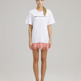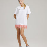Crafted from a high-quality blend of 94% cotton and 6% elastane, this comfortable t-shirt dress ensures a perfect fit that moves with you. The breathable cotton fabric keeps you cool and relaxed, while the elastane adds a touch of stretch for an ideal silhouette.